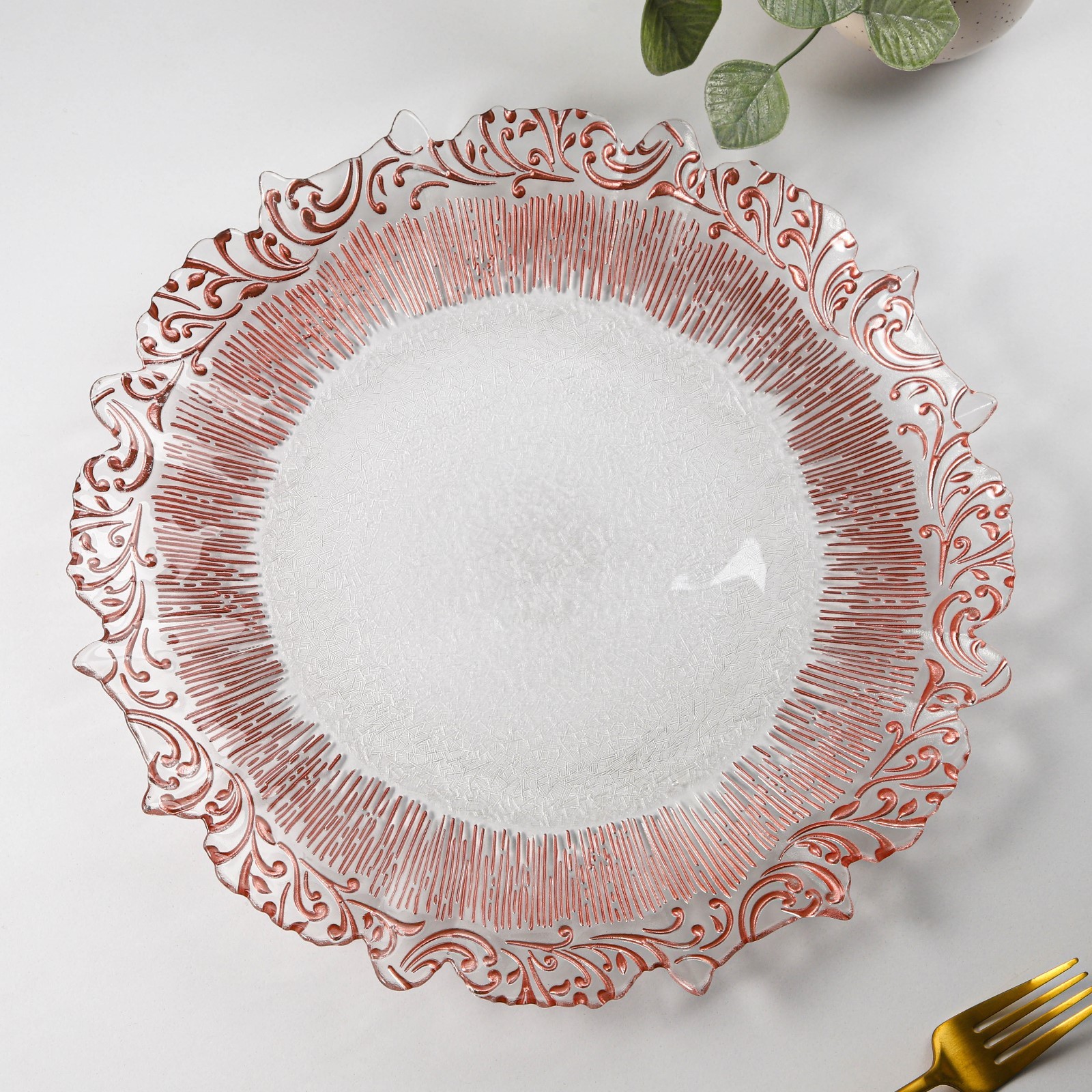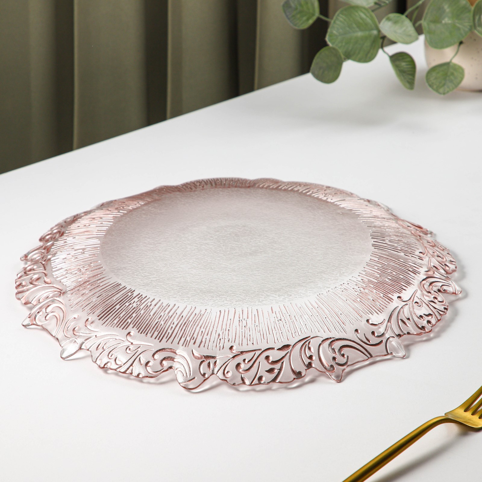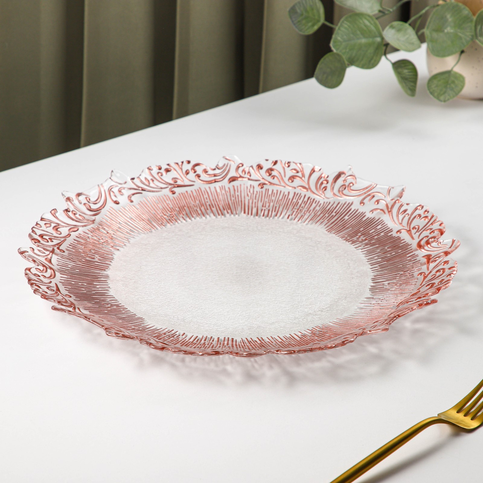 Тарелка стеклянная подстановочная «узор», D=33 см, цвет окантовки розовое золото