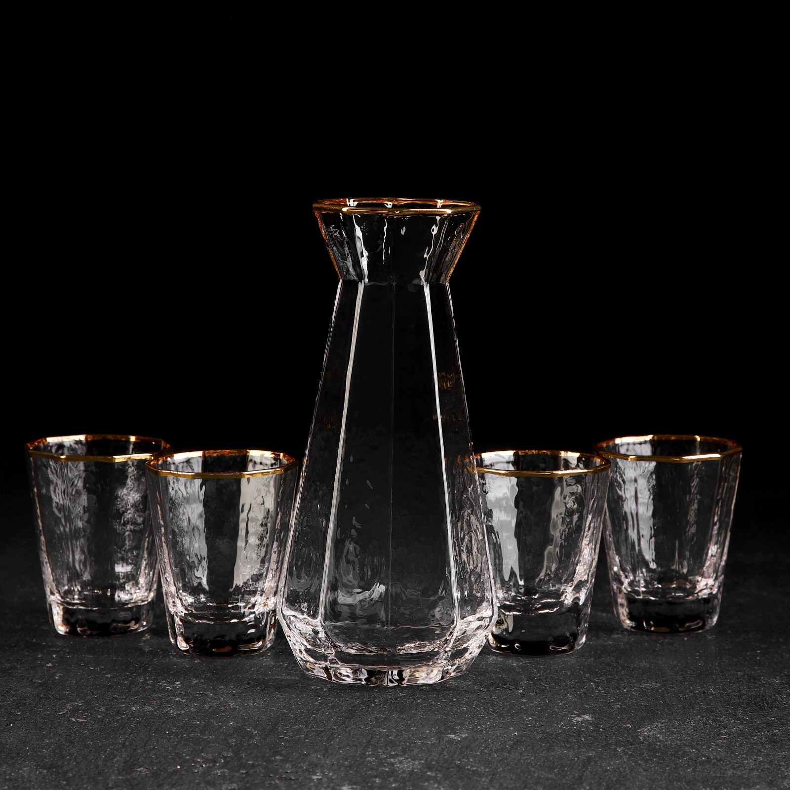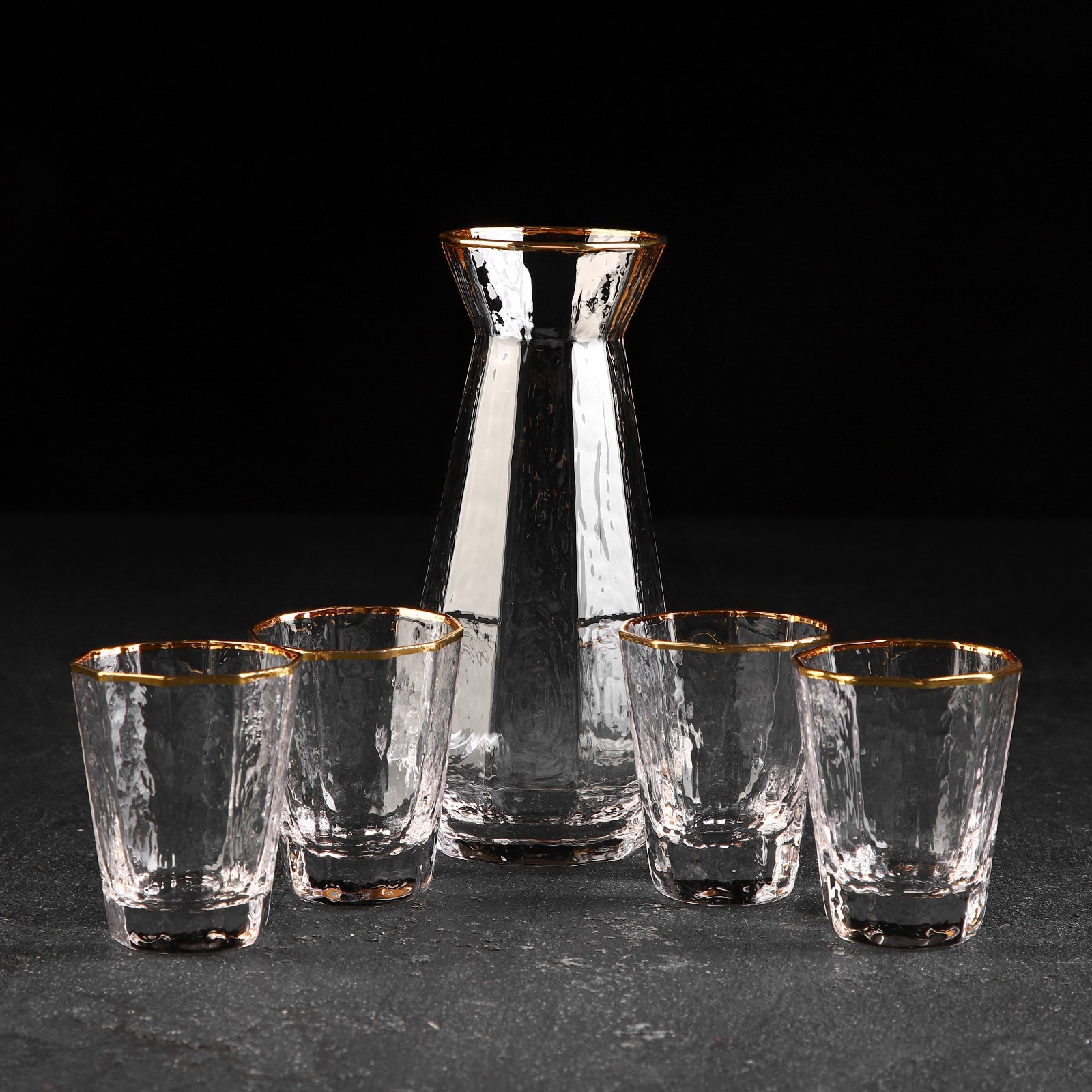 Набор для напитков из стекла «иней. золото», 5 предметов: графин 300 мл, 4 стакана 70 мл