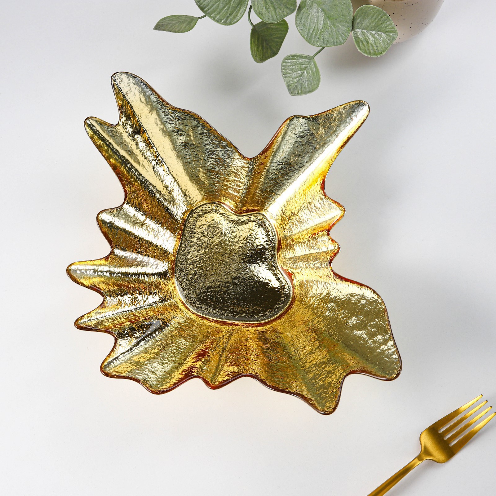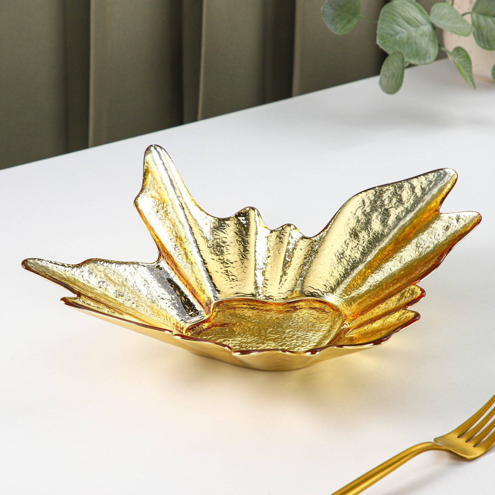 Тарелка стеклянная сервировочная «рени», 30x7,5 см, цвет золотой