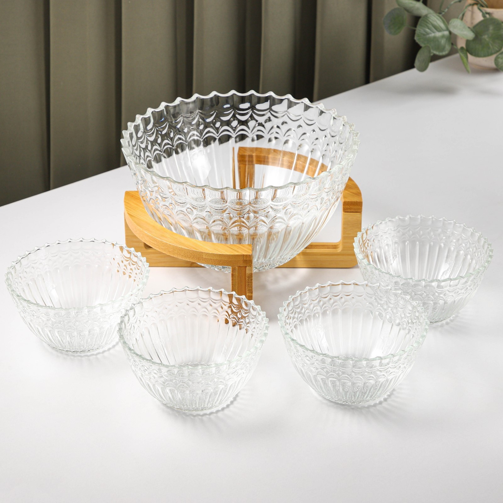 Набор стеклянных салатников на подставке «тондо», 5 предметов: большой 2,2 л, маленький 330 мл.