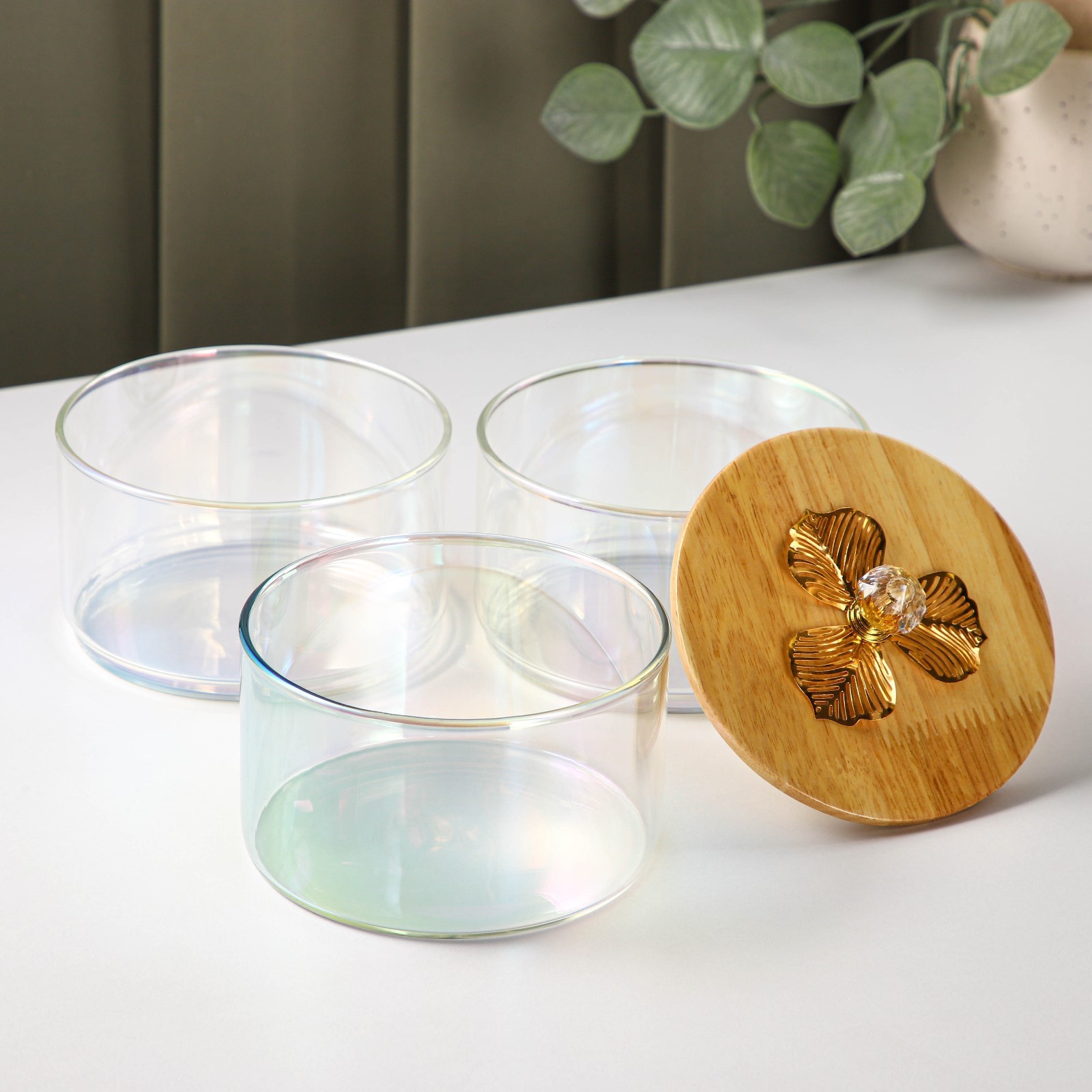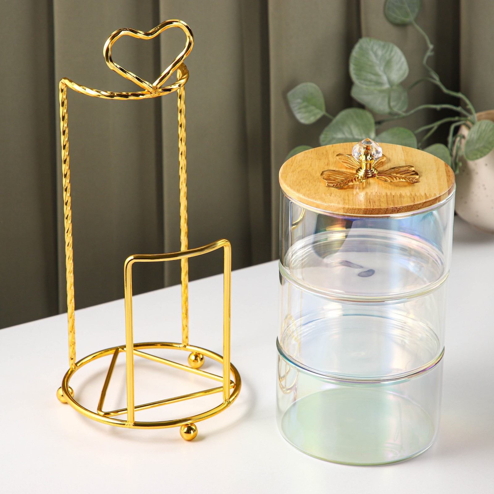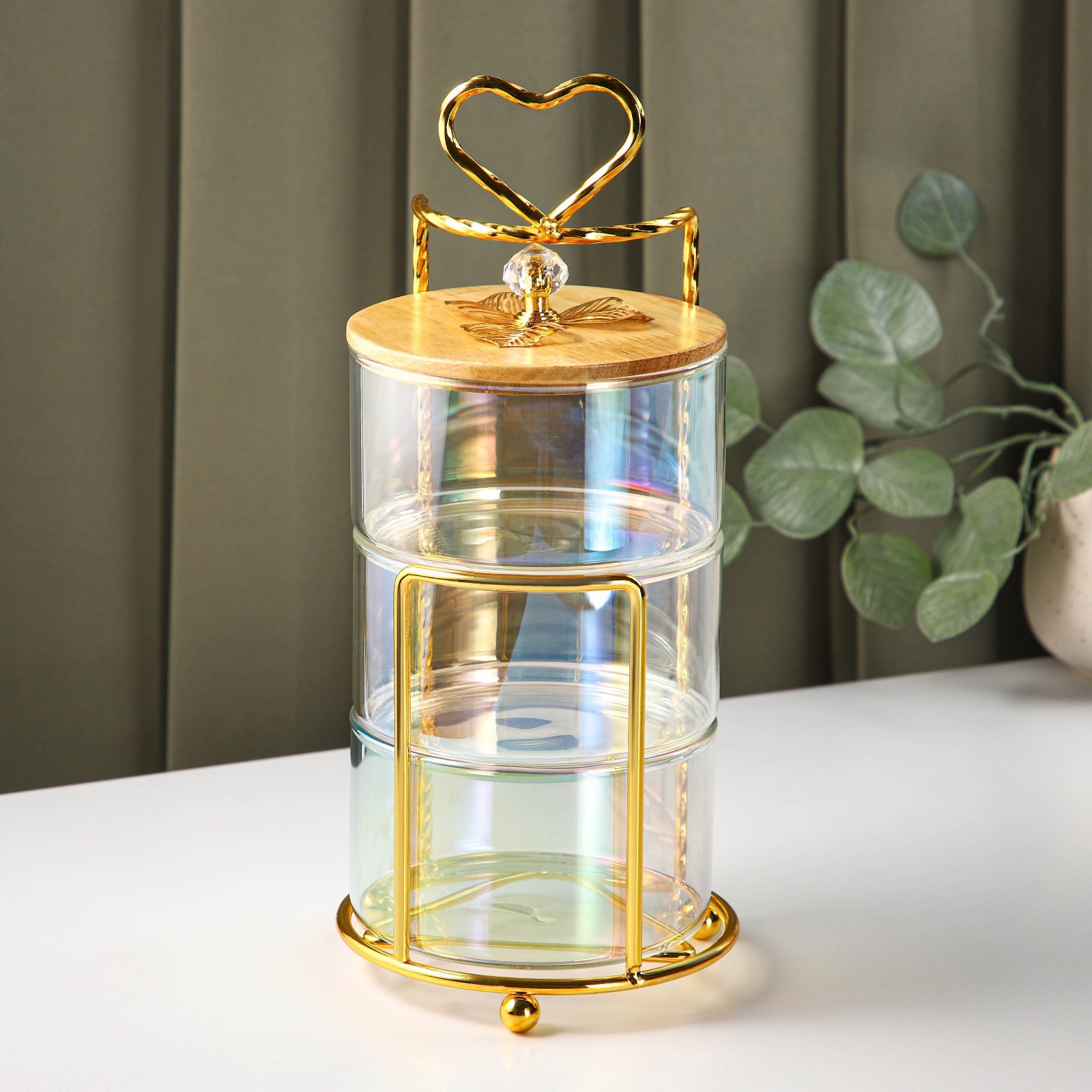 Менажница стеклянная трёхъярусная «сердце», 500 мл, 12,2x27,5 см, цвет перламутровый
