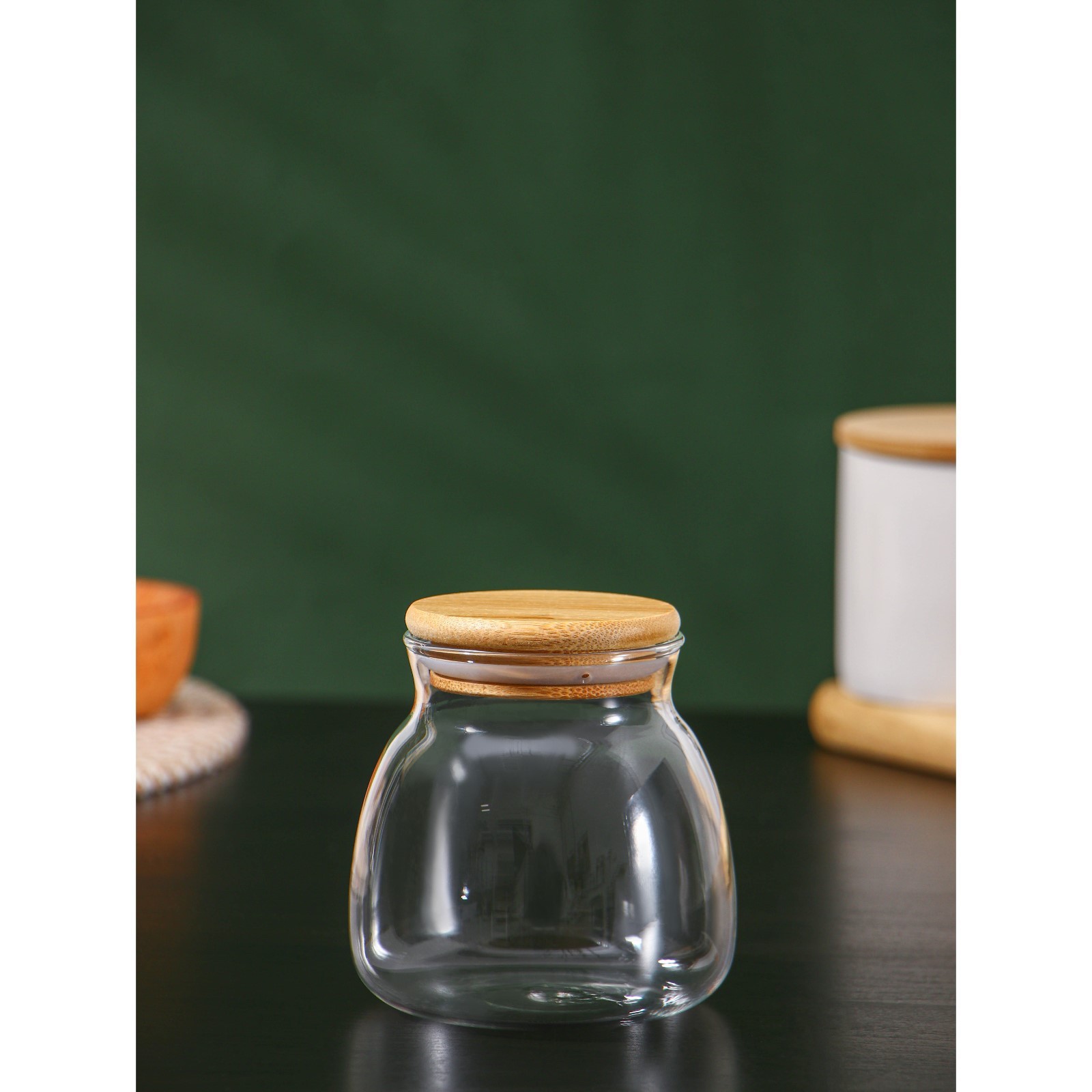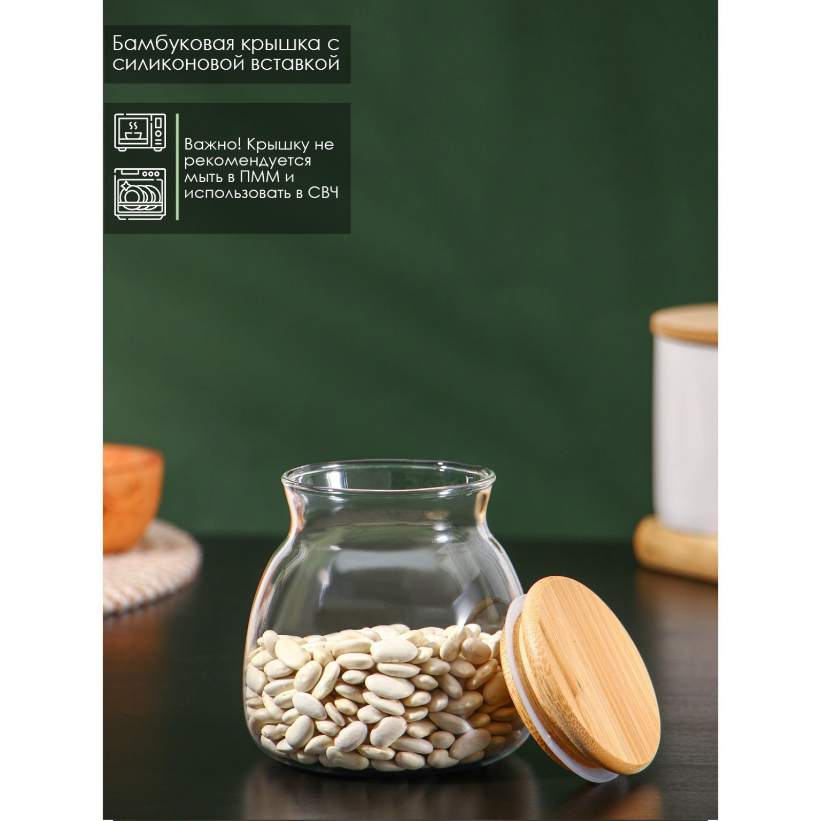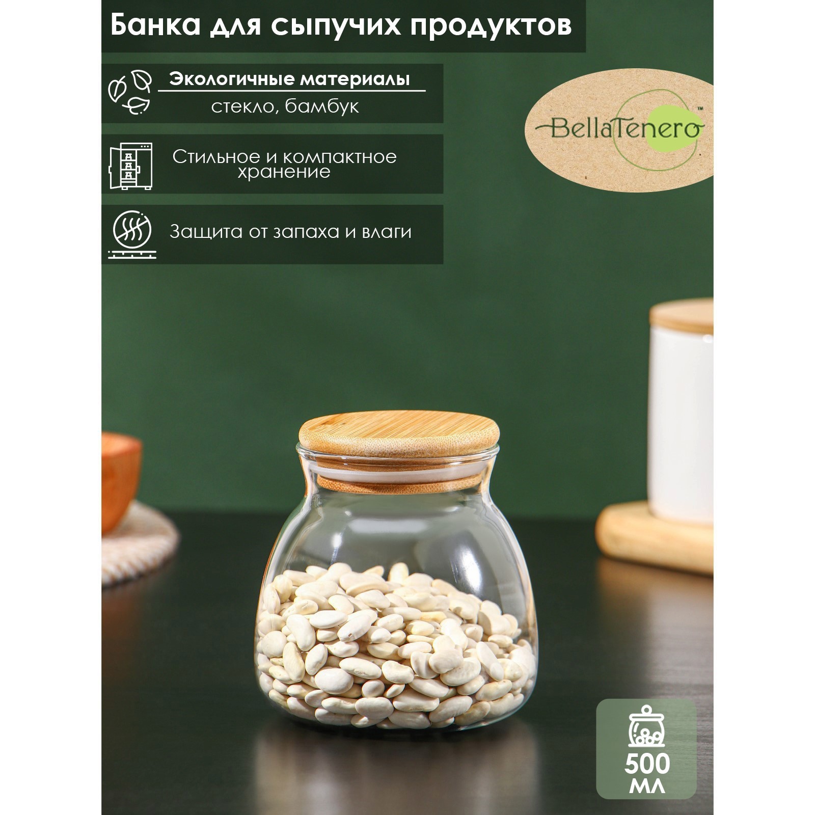 Банка стеклянная для сыпучих продуктов с бамбуковой крышкой Bellatenero «бамбук», 500 мл, 9,5x10 см