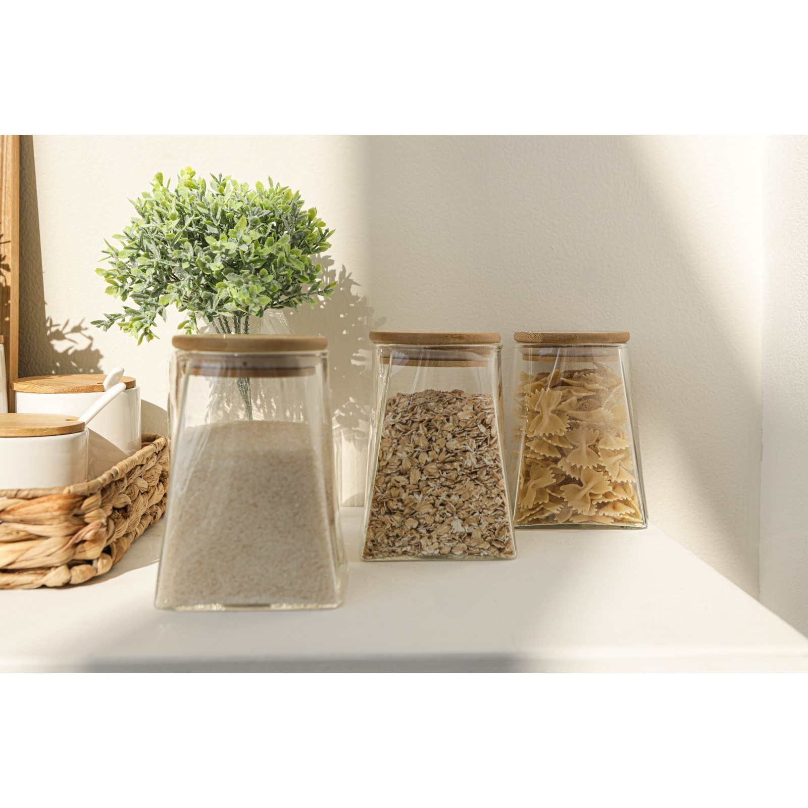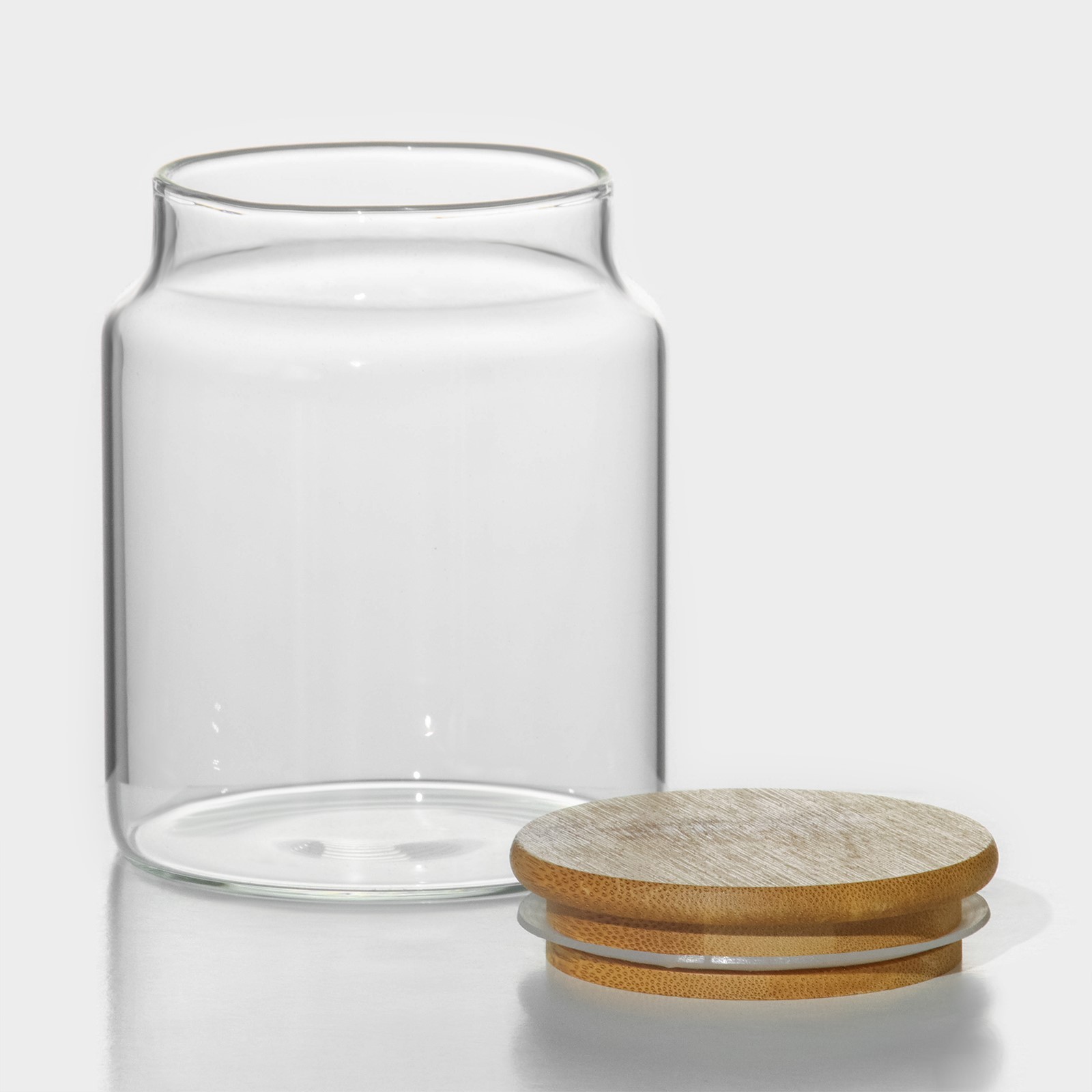Банка стеклянная для сыпучих продуктов с бамбуковой крышкой Bellatenero «эко», 650 мл, 10x12,5 см