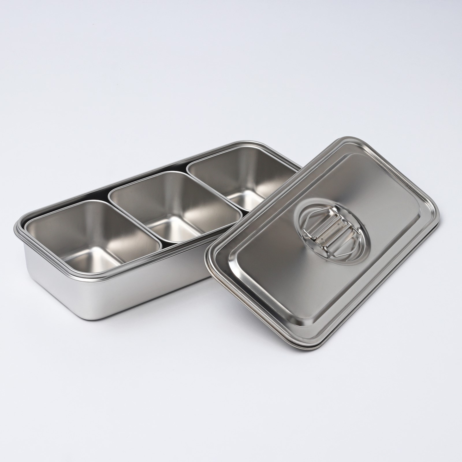 Контейнер из нержавеющей стали 3 секции, 33x15,5x7 с крышкой