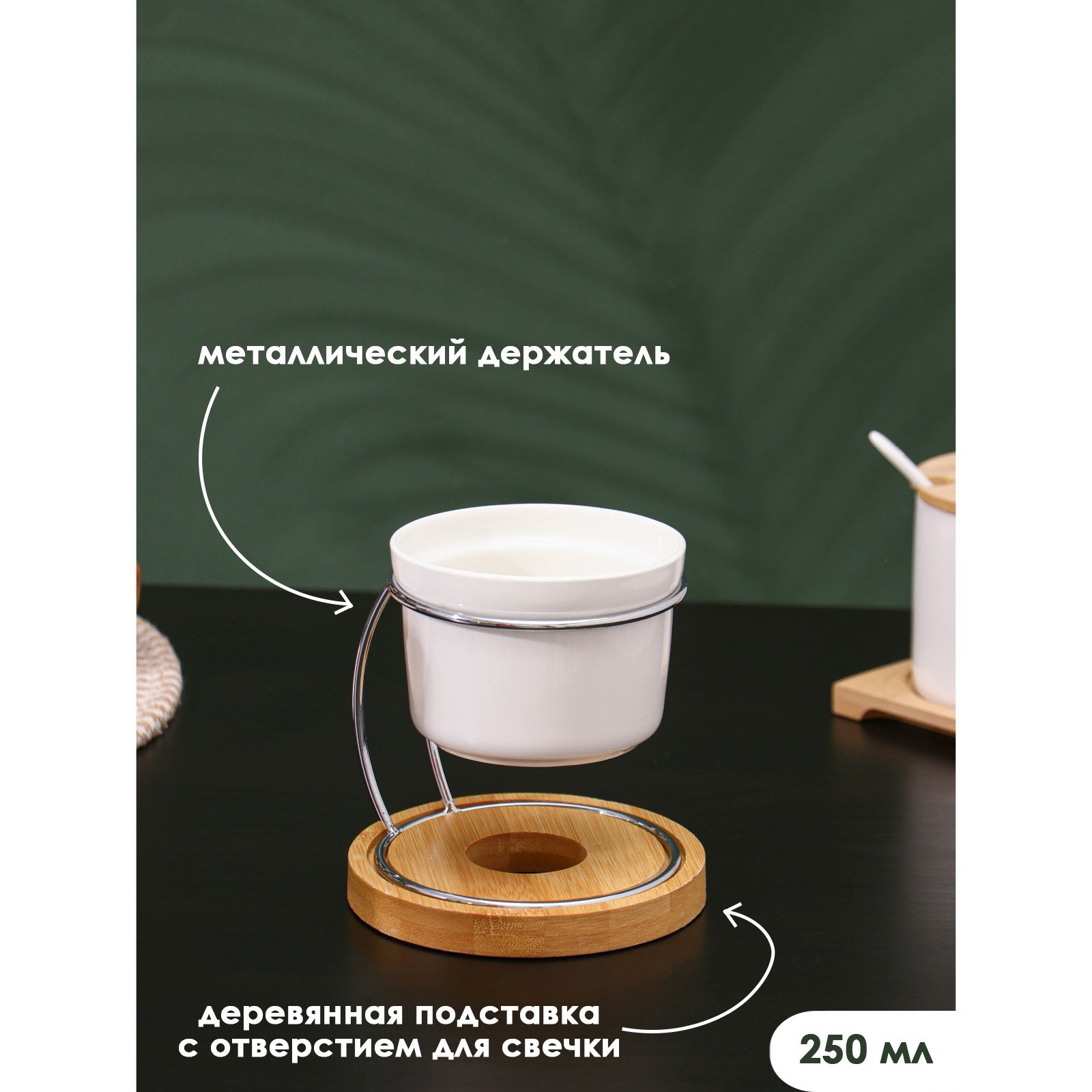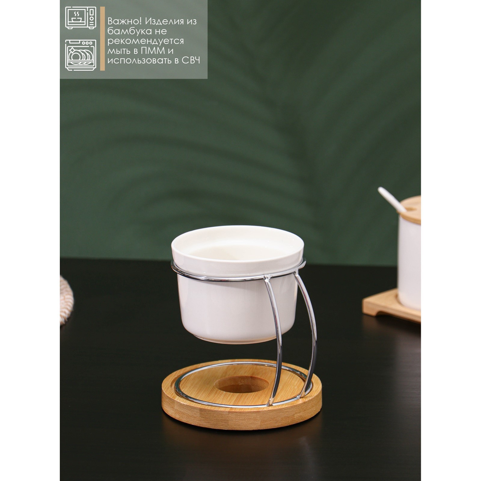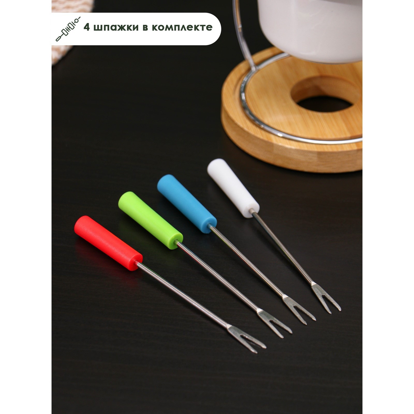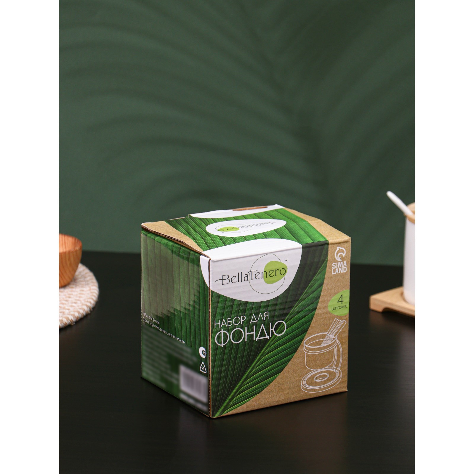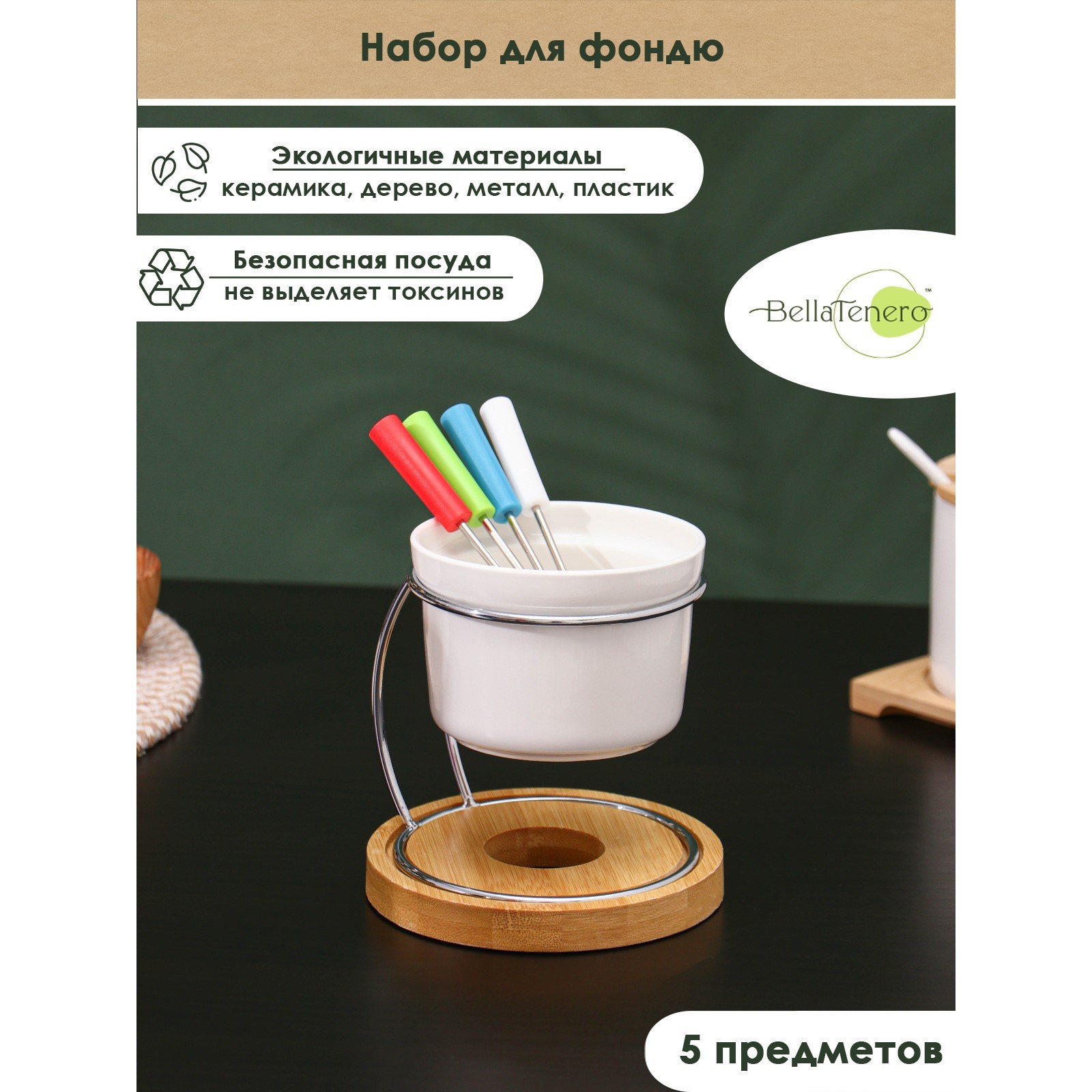 Набор для фондю керамический bellatenero, 5 предметов: чаша 250 мл, подставка, 4 шпажки, цвет белый¶. Набор для приготовления фондю BellaTenero, – это то, чем можно порадовать близких. Его главное преимущество – это простота использования. Глубокая чаша идеально подходит для шоколадного или сырного лакомства. Чаша для фондю имеет толстое дно, что позволит шоколаду или сыру внутри сохранять нужную температуру для блюда и не пригорать. Для подогрева чаши используется свеча. Шпажки предназначены для накалывания разнообразных фруктов, кусочков печенья, гренок и других продуктов. Все части набора для фондю легко отмываются. Набор для приготовления фондю со шпажками отличается универсальностью и классическим исполнением. Оригинальный и стильный керамический набор станет украшением кухни и будет радовать Вас и Ваших гостей. Можно использовать в посудомоечной машине и СВЧ. Цвет: Белый В наборе, шт.: 5 Объём, мл: 250 Объём чаши, мл: 250 tnved: 6912002500 Тематика: Однотонная Материал: Керамика Наличие подставки: Да Можно мыть в посудомоечной машине: Да Текстура: Гладкая Матовая поверхность: Нет Запрет реализации по сегментам: 00000000485  развернуть описание ▼