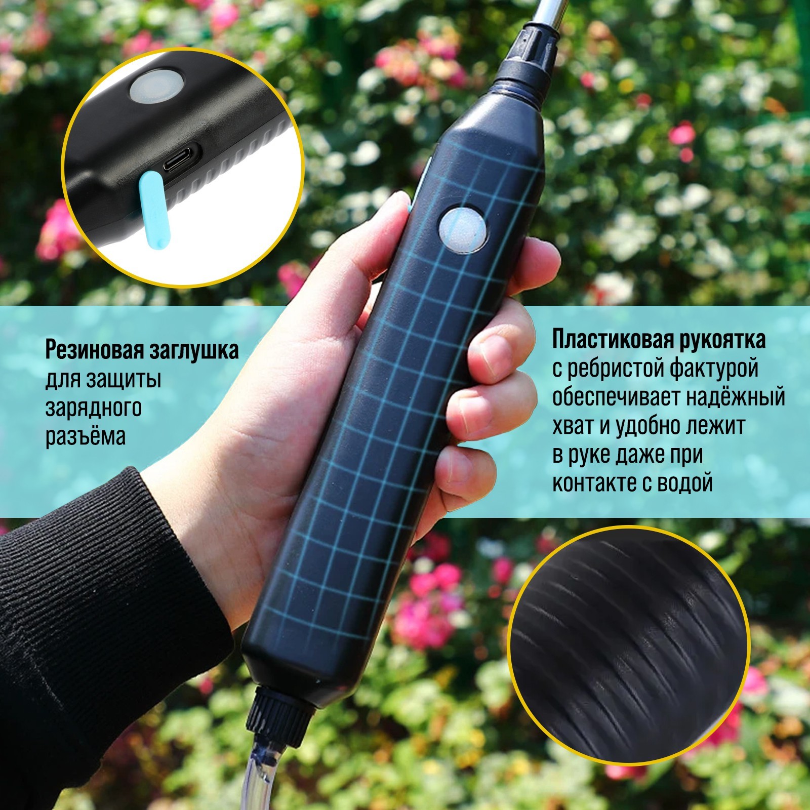 Опрыскиватель аккумуляторный тундра, 4 в, 2.4 ач, Li-on, 0.8 л/мин, 2 насадки, шланг 3 м