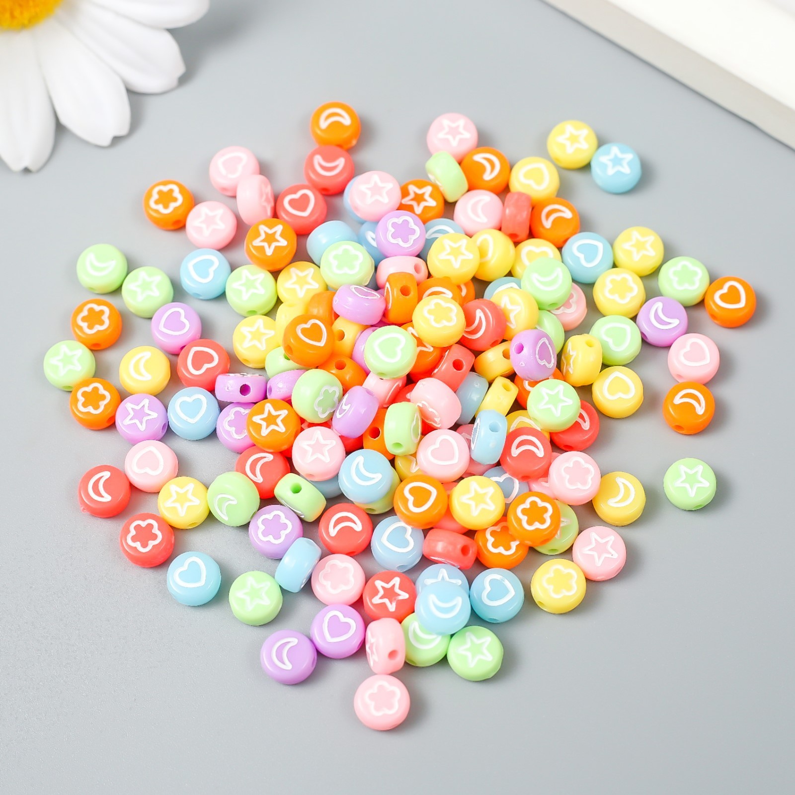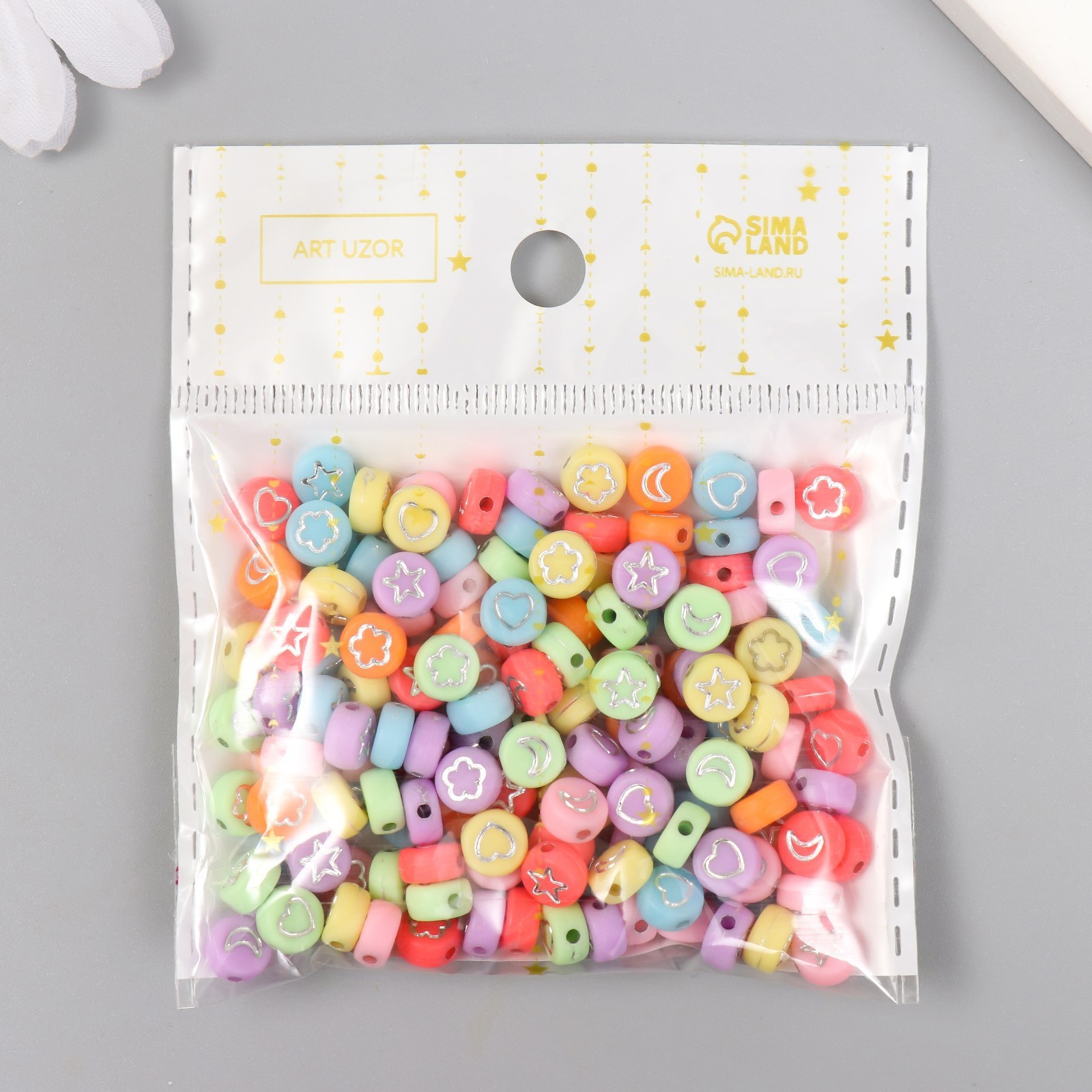 Набор бусин для рукоделия и плетения «арт узор. сердечки и звёзды», 20 г, пластик, цветные, 0.4 0.7 0.7 см