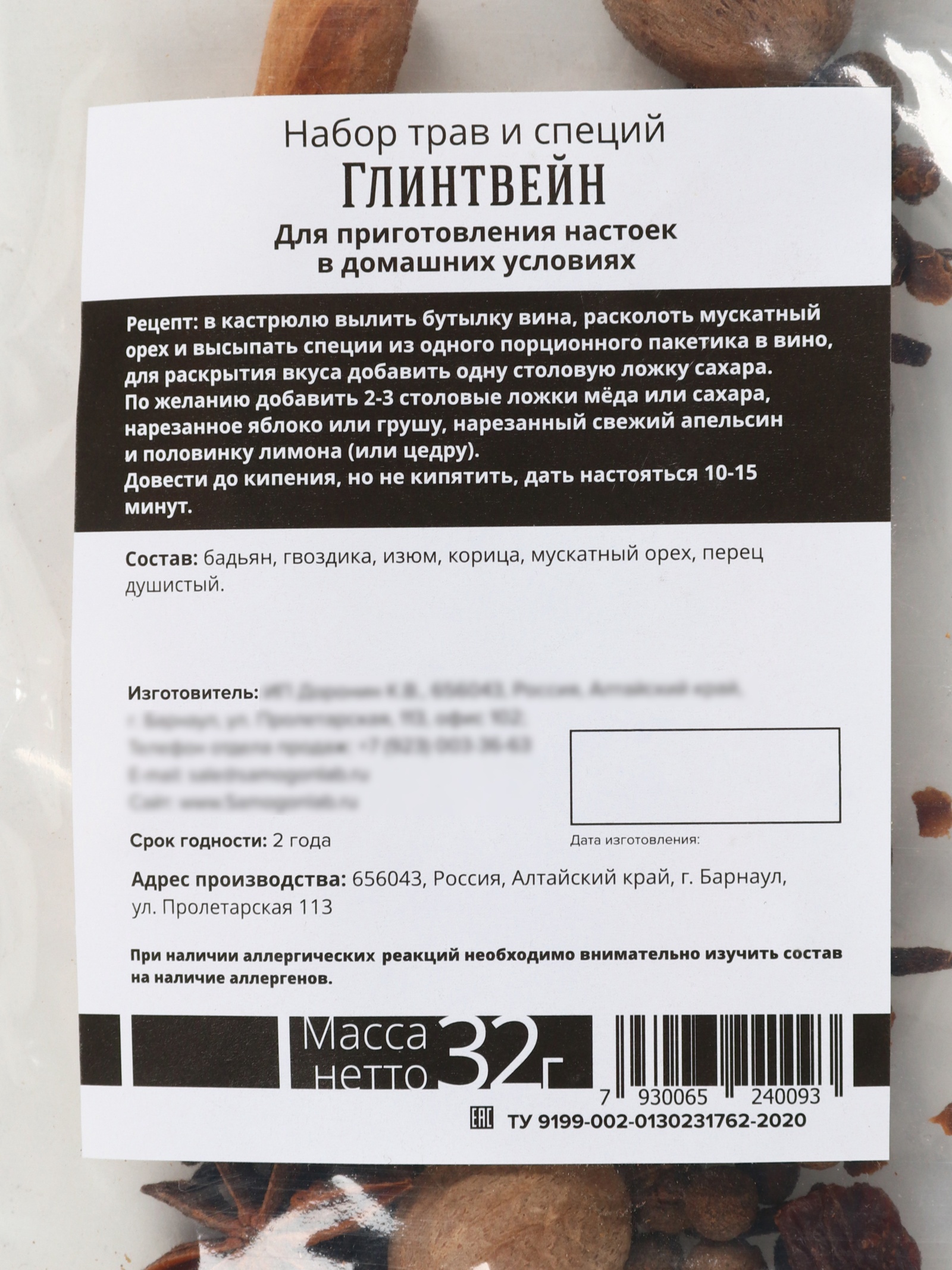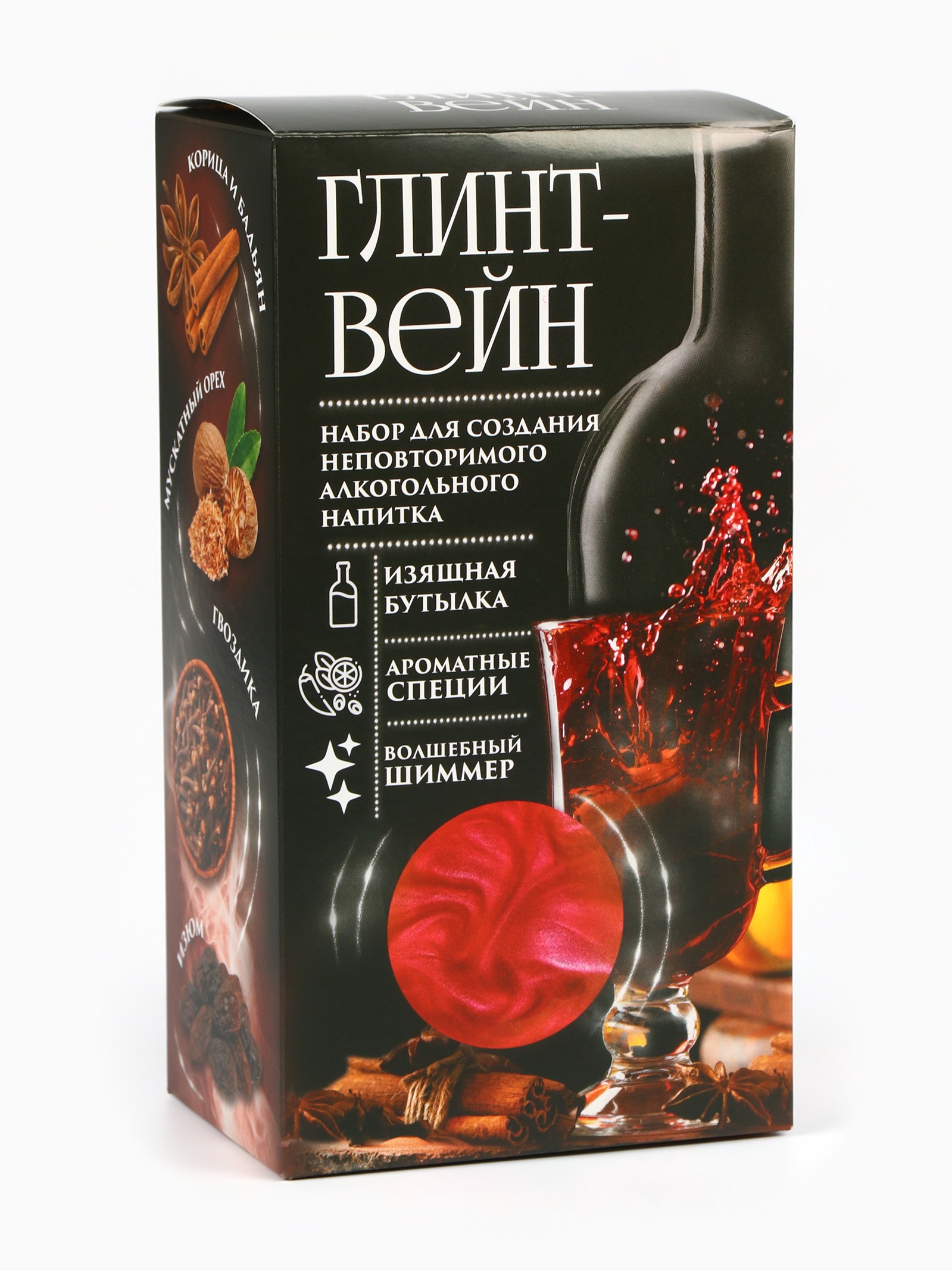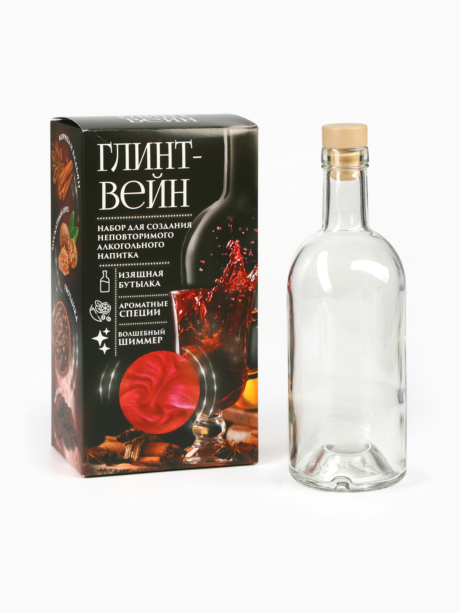 Подарочный набор для приготовления алкоголя «глинтвейн»: набор трав и специй 32 г., бутылка 500 мл., шиммер 5 г.. При оформление заказа, просим запрашивать актуальные сроки годности у менеджераНабор трав и специй. Состав: корица (кора), мускатный орех, гвоздика (бутоны), перец душистый (горошек), изюм тёмный, бадьян (плоды). Срок годности: 2 года. Масса нетто: 32 г. Кондитерское изделие сахаристое: блеск-пудра Сияющие частицы.Красная. Состав: крахмал кукурузный, краситель соответственно цвету Росдекор.Блеск-пудра. Срок годности 36 месяцев. Масса нетто 5 г. Бутылка для настоек. Срок годности: не ограничен. Объем: 500 мл. В наборе, шт.:2|Вес нетто, г:36|Вид упаковки:Коробка картонная|Составляющие набора:Специи|Составляющие набора:Травы|Возраст:Для взрослых|Страна:Россия  развернуть описание ▼