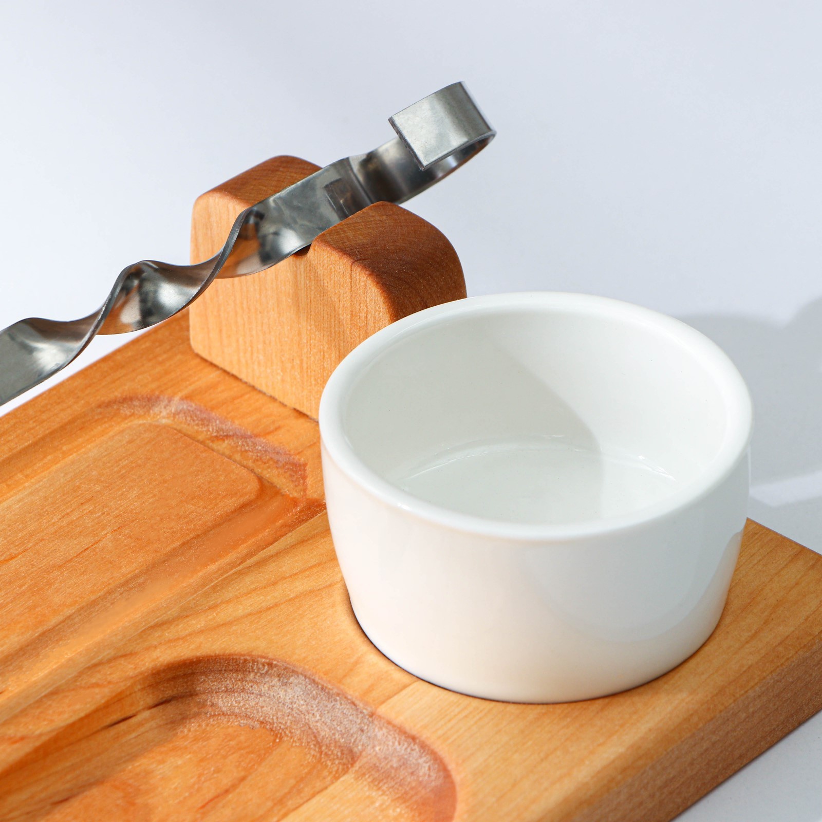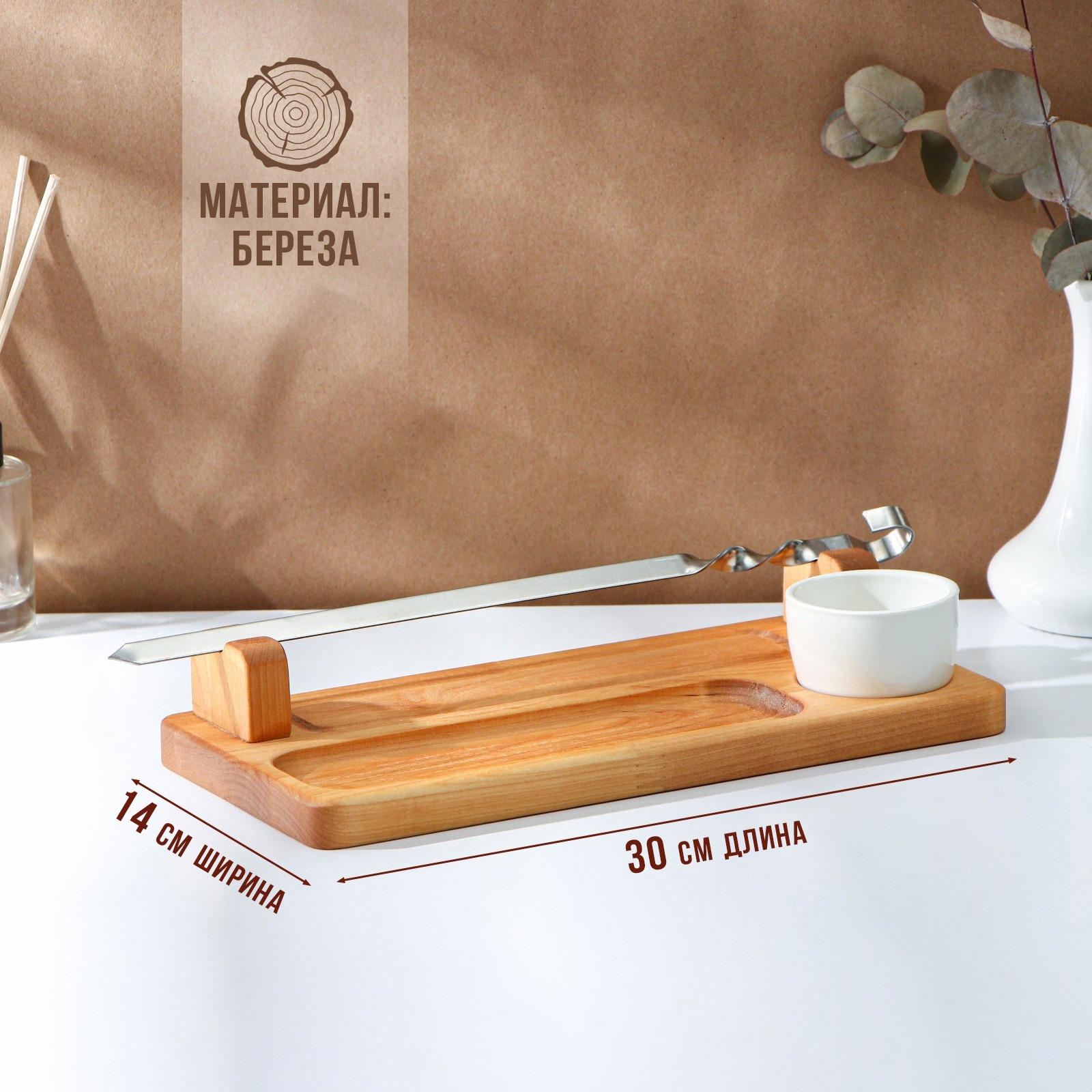Доска для подачи, шампур металлический, соусник, 30x14 см, берёза, пропитано минеральным маслом