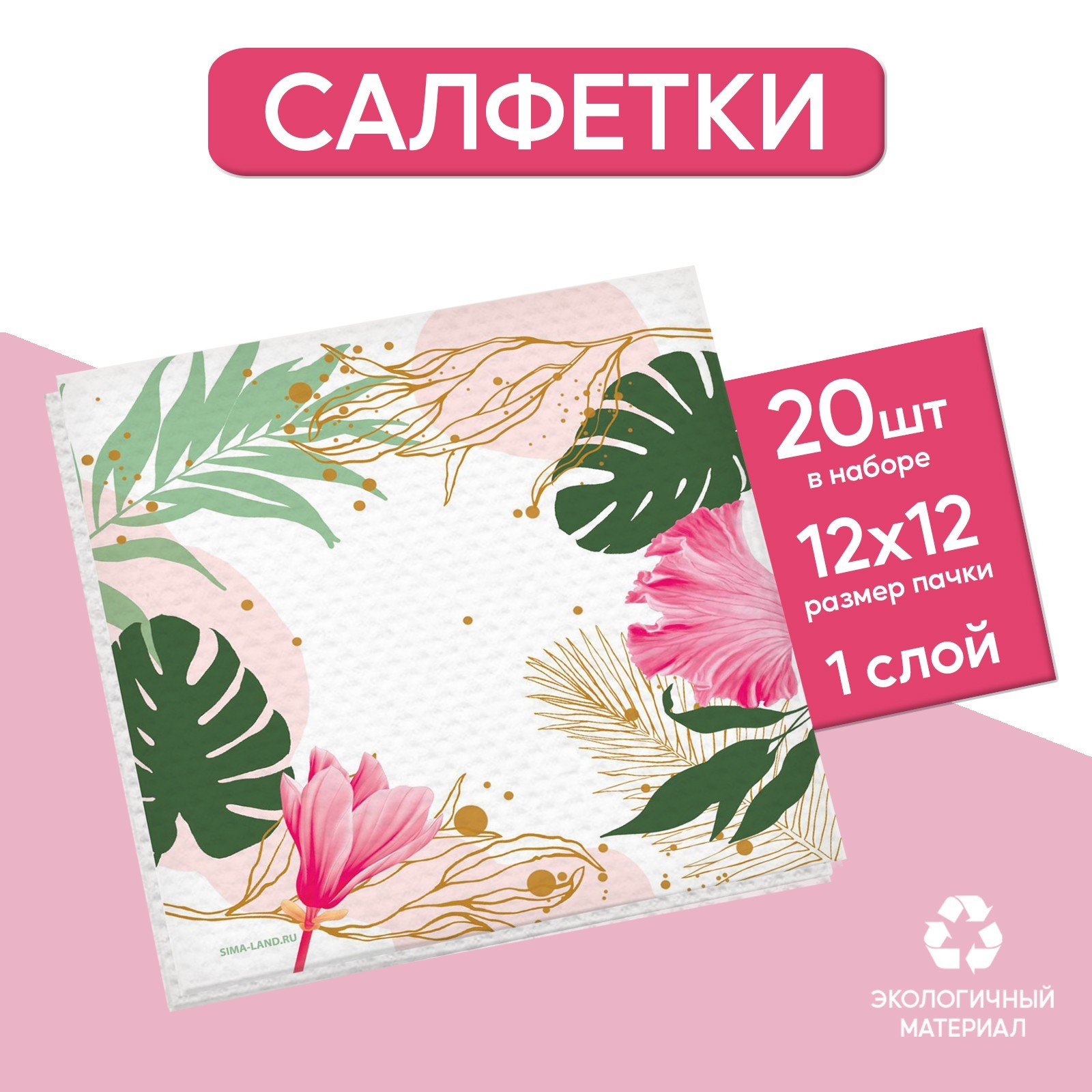 Салфетки бумажные однослойные «листья», 24 X 24 см, в наборе 20 шт.