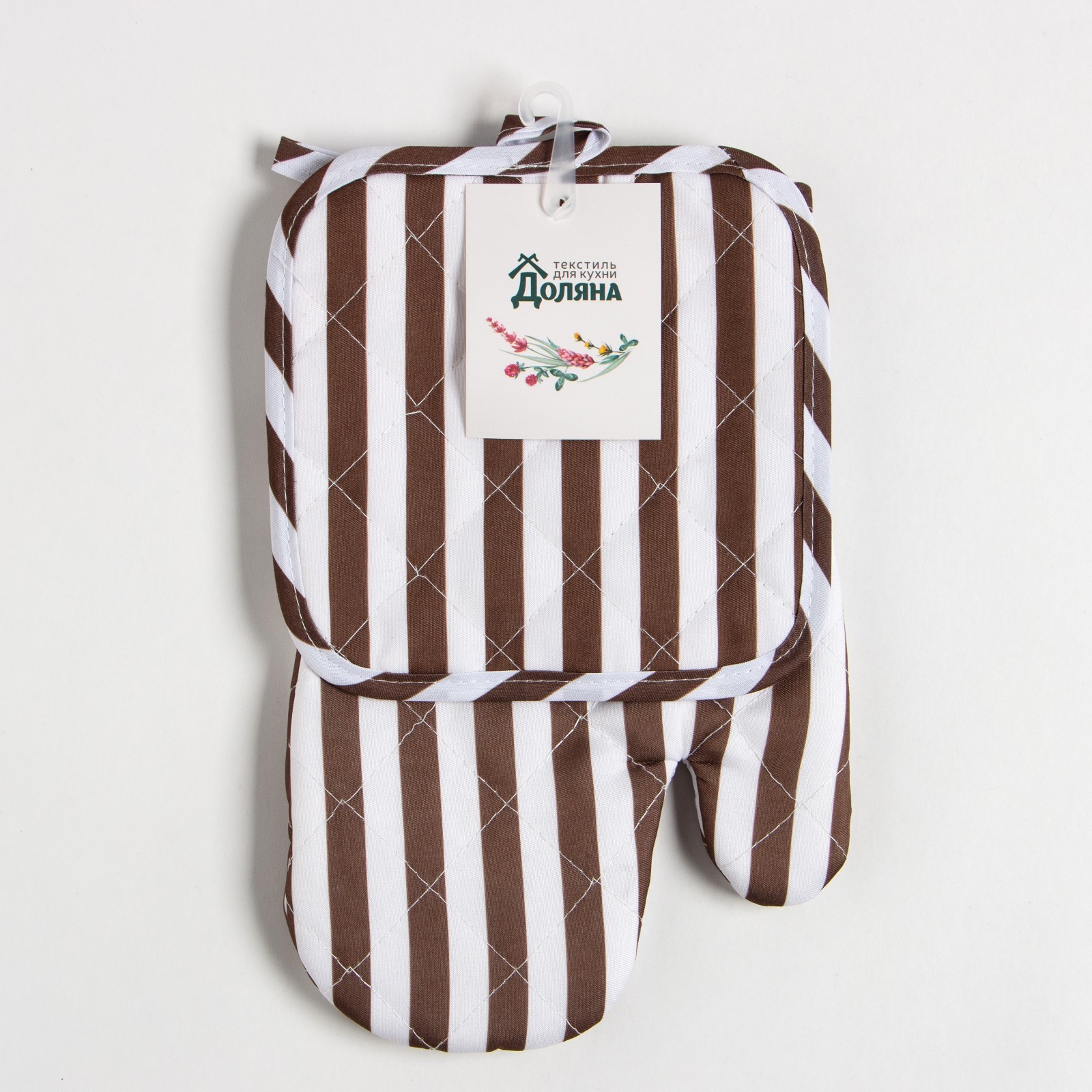 Кухонный набор доляна цвет кофе прихватка 17х17 см, варежка 26х16 см, 100% п/э