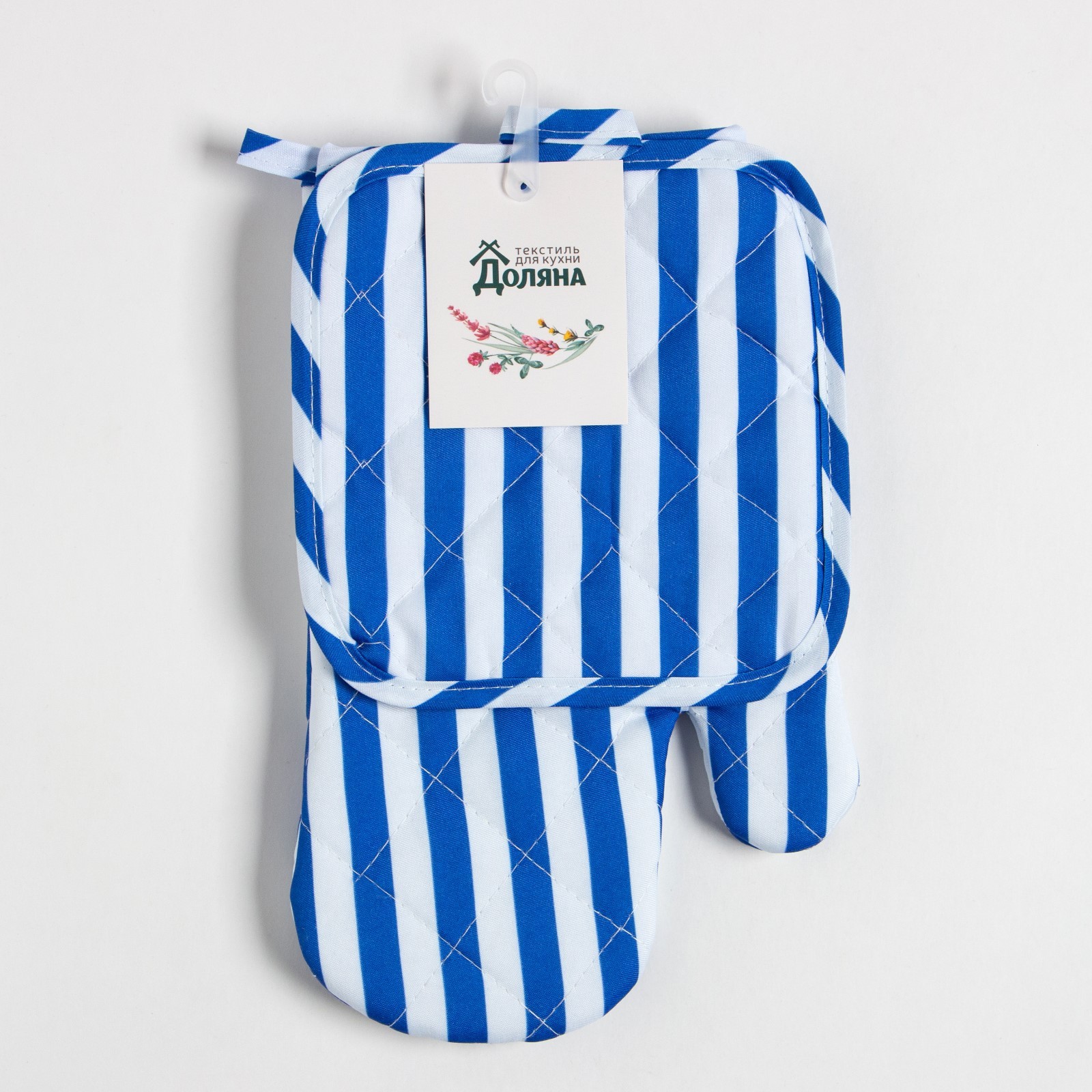 Кухонный набор доляна цвет синий прихватка 17х17 см, варежка 26х16 см, 100% п/э