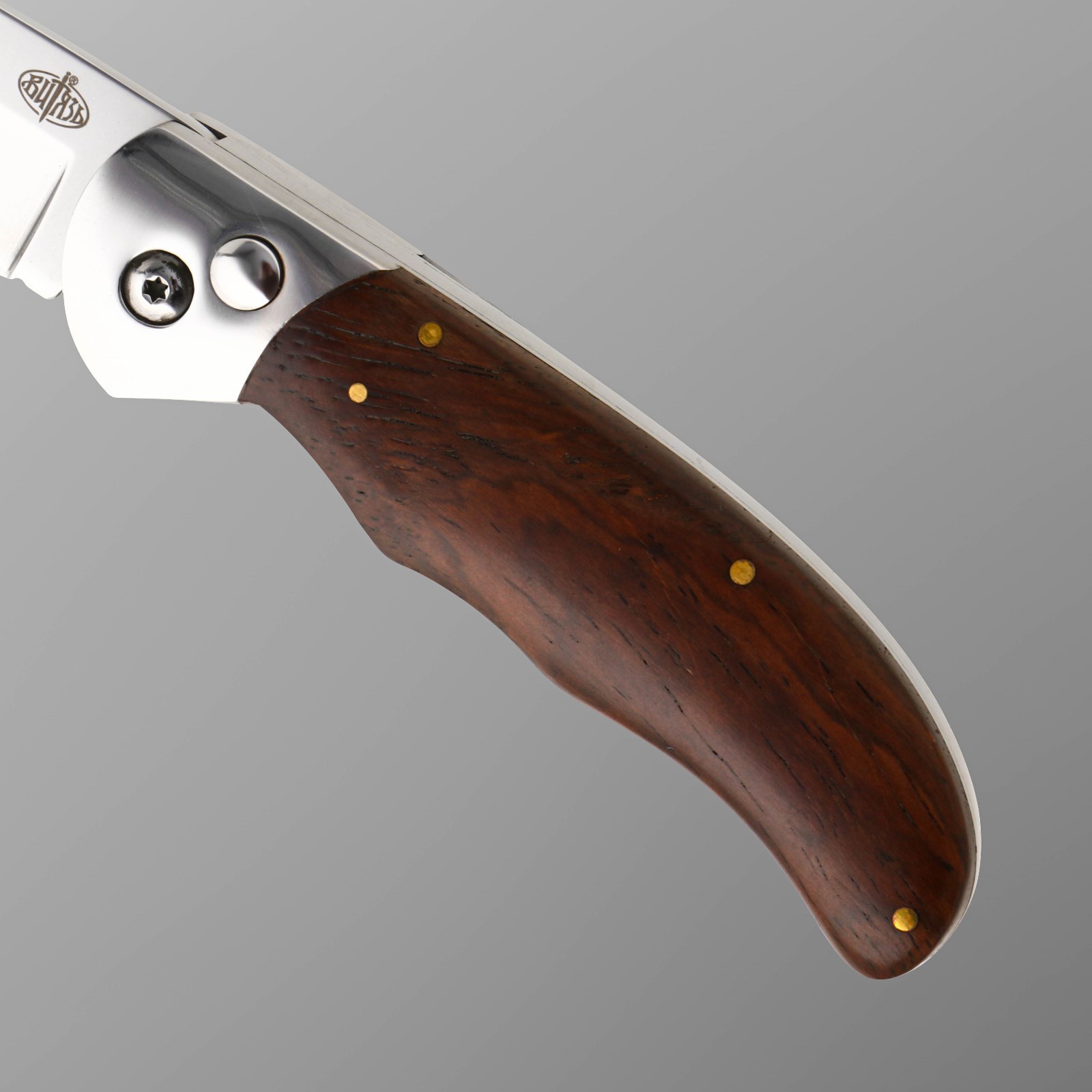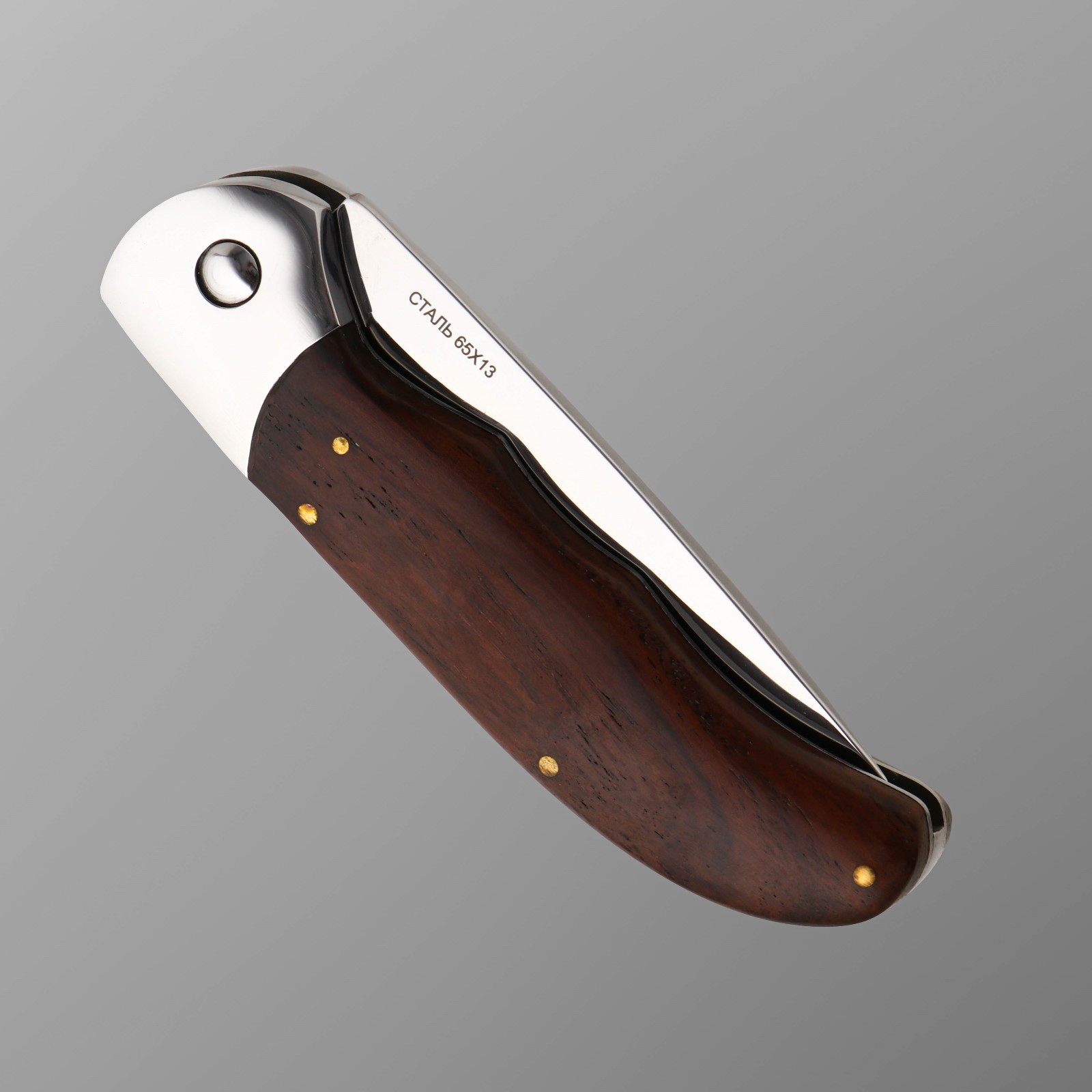 Нож складной "бирюк" сталь 65х13, рукоять - дерево, 21 см. Длина лезвия, см: 8.9 Твёрдость лезвия, HRC: 56 Материал ручки: Дерево Фиксатор: Да Сталь: 65Х13 Температурное ограничение: Нет Тип ножа: Складной неавтоматический  развернуть описание ▼