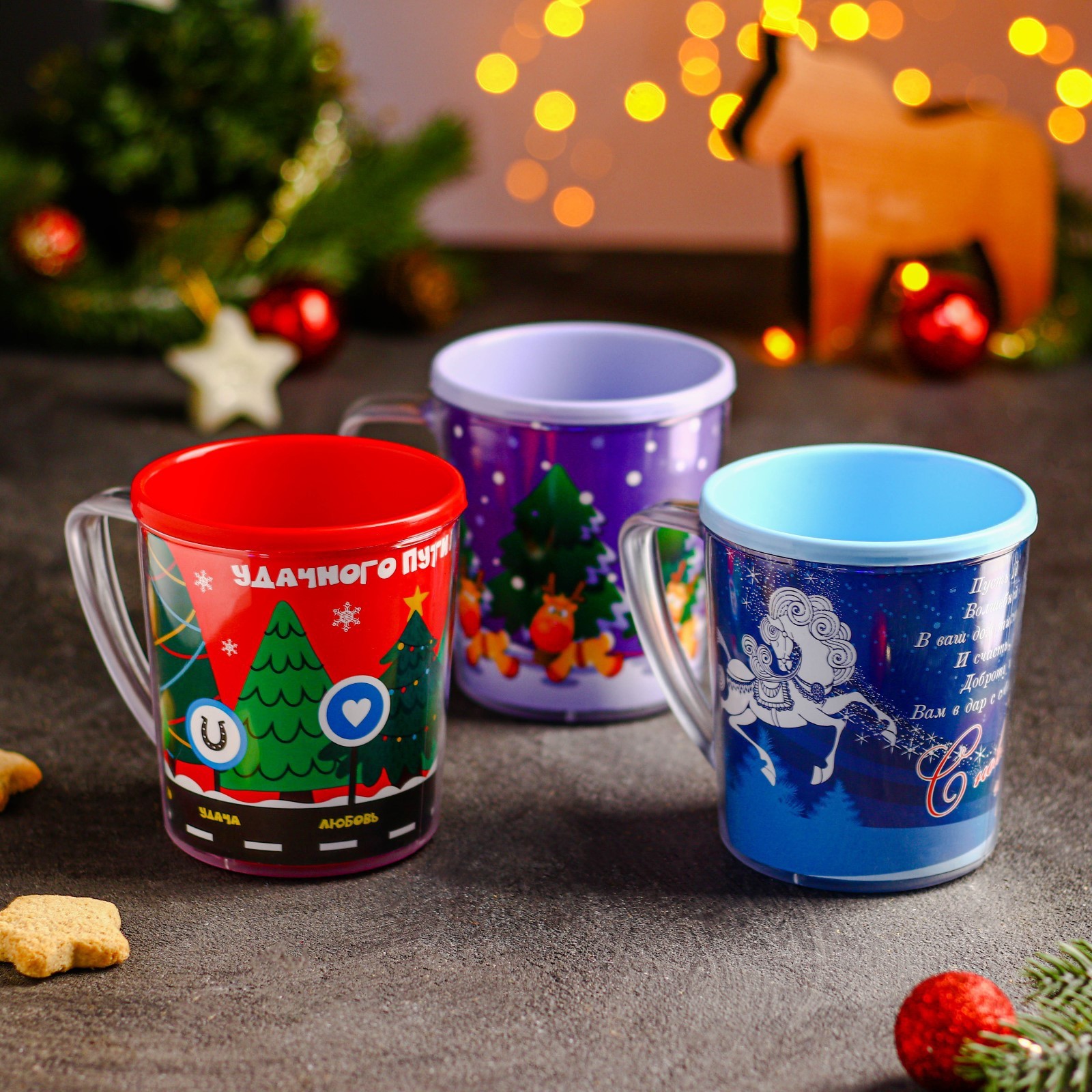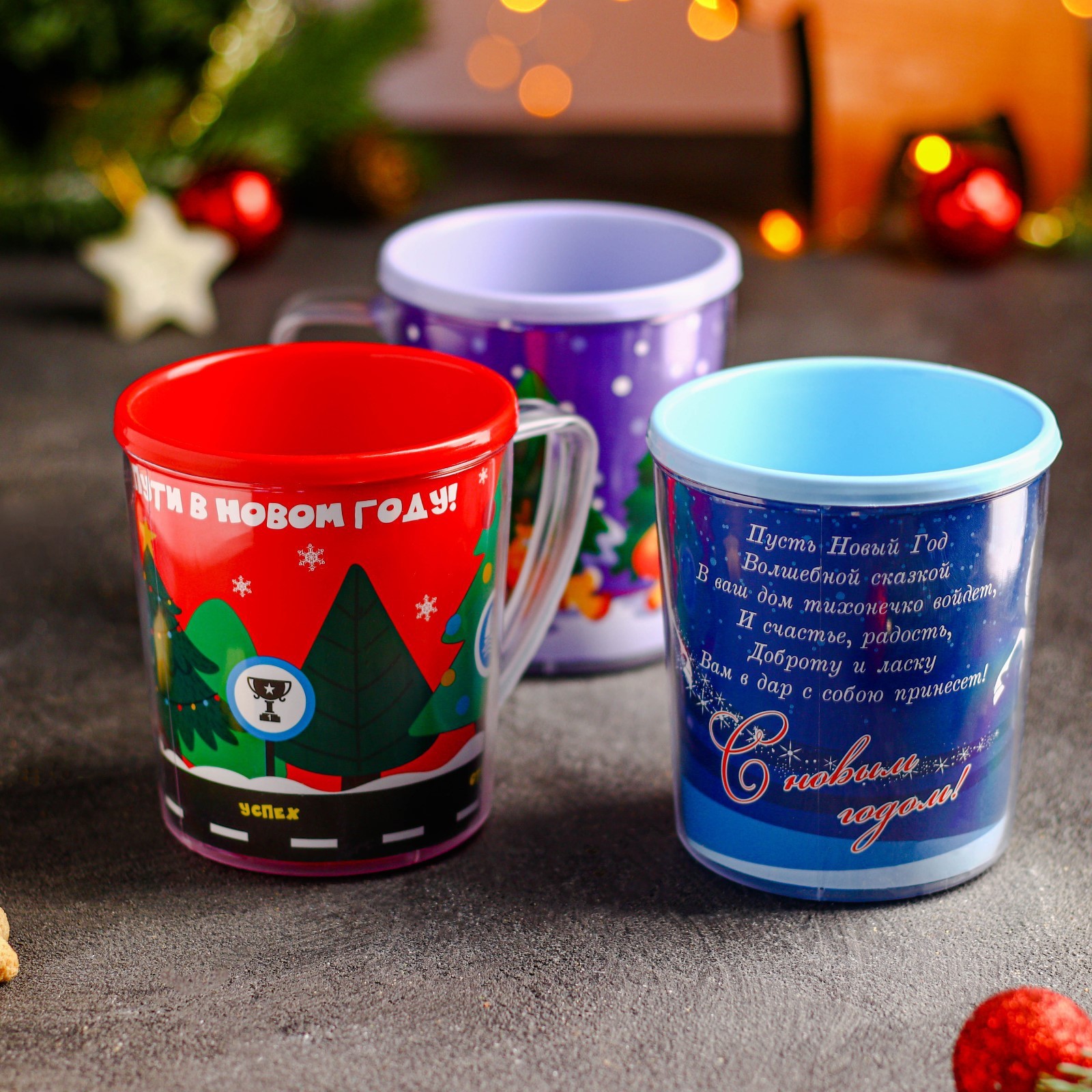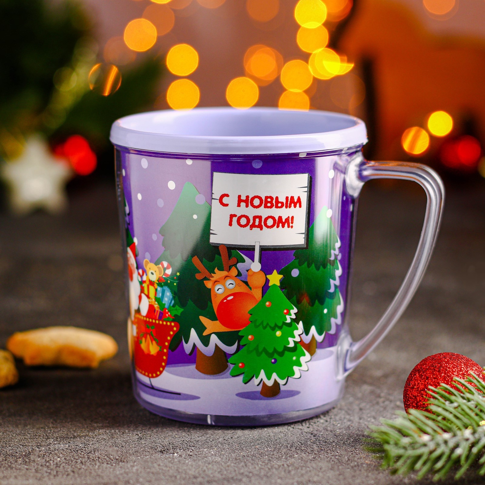 Термокружка пластиковая «с новым годом!», 400 мл, рисунок микс
