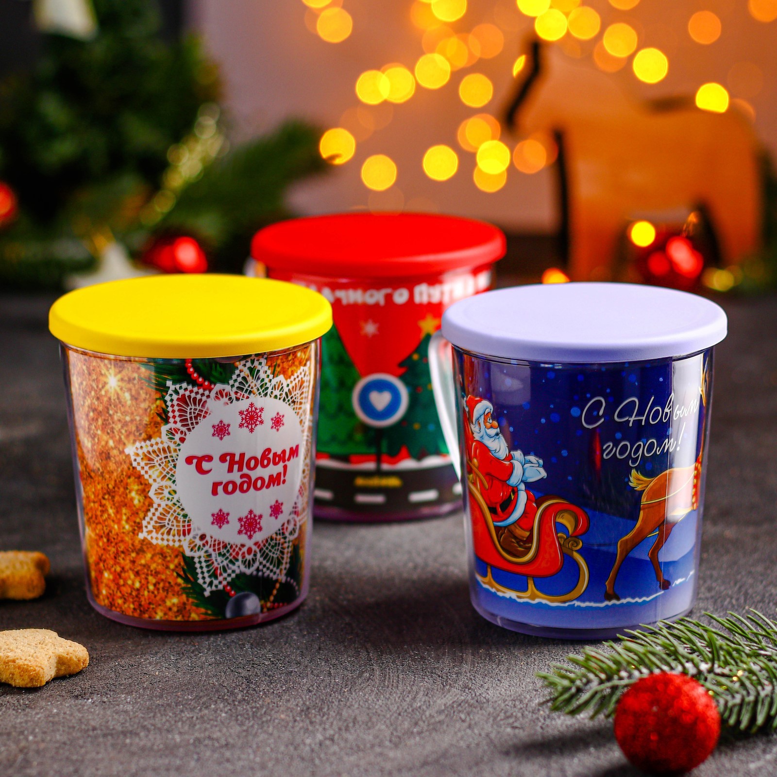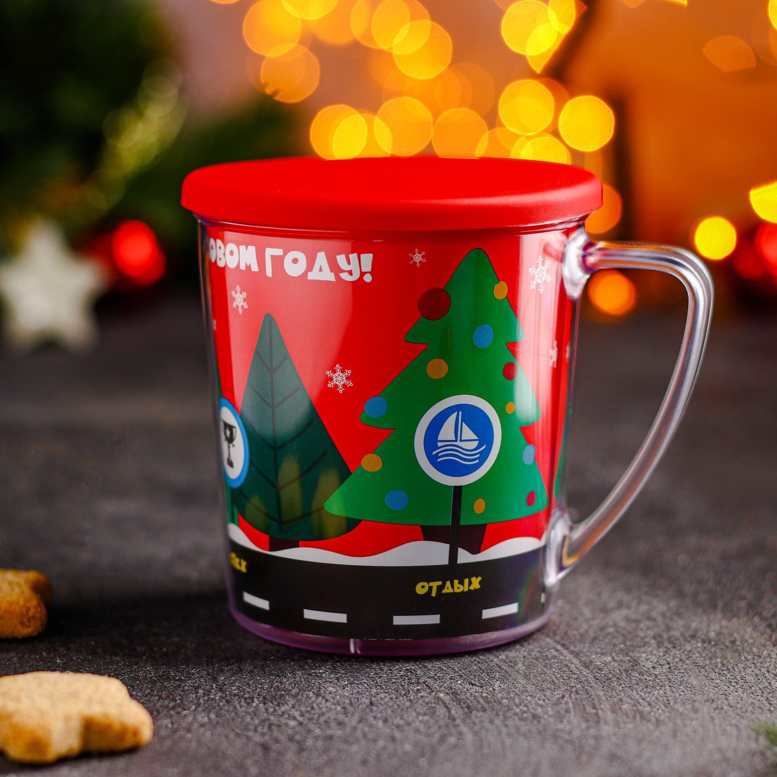 Термокружка пластиковая с крышкой «с новым годом!», 400 мл, рисунок микс
