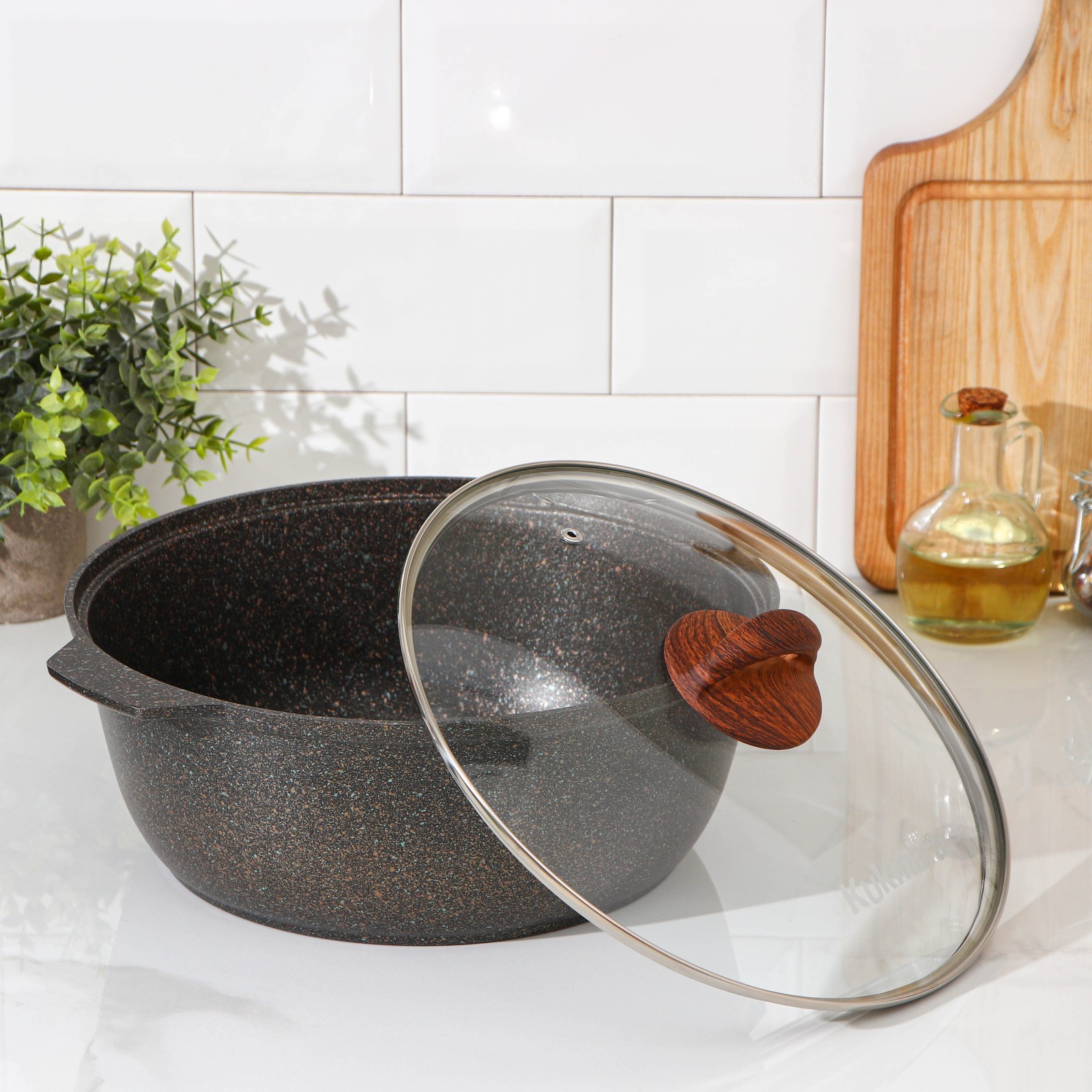 Кастрюля-жаровня Granit Ultra (original), 5 л, D=28 см, стеклянная крышка, антипригарное покрытие, цвет чёрный