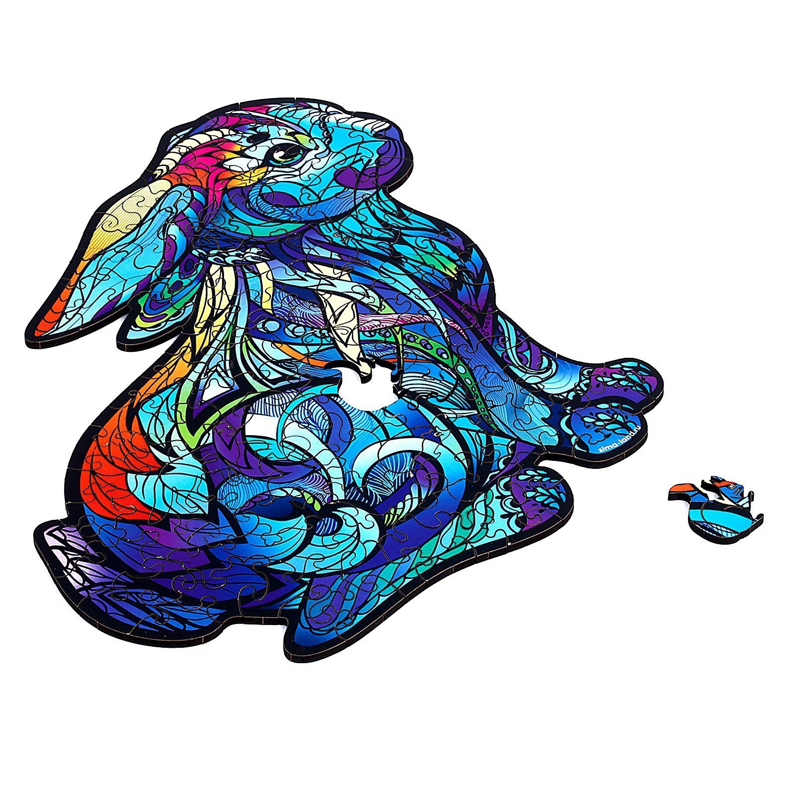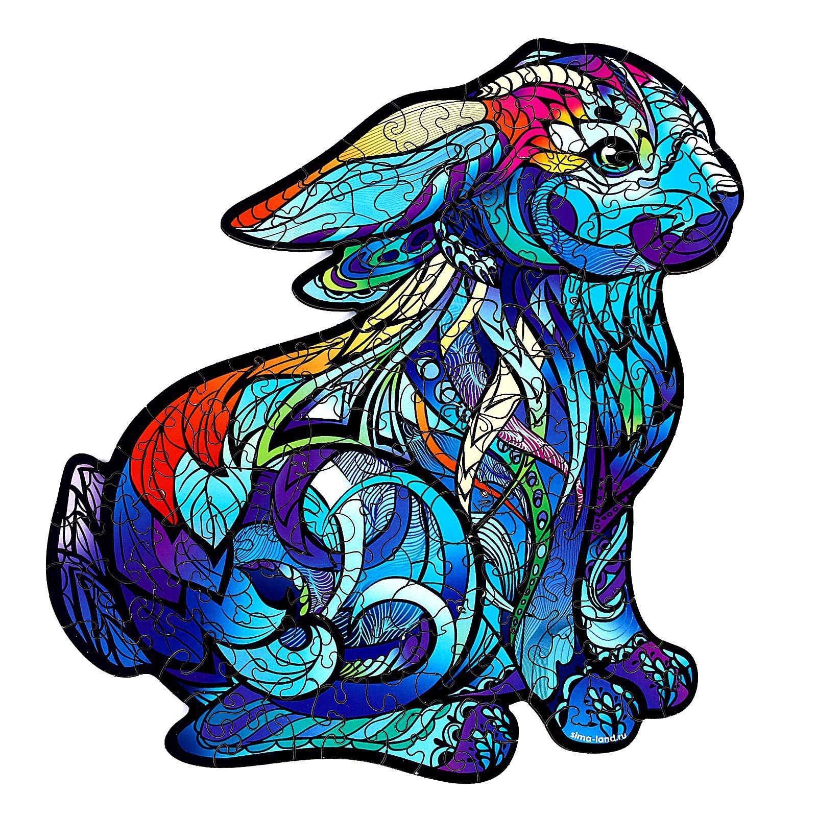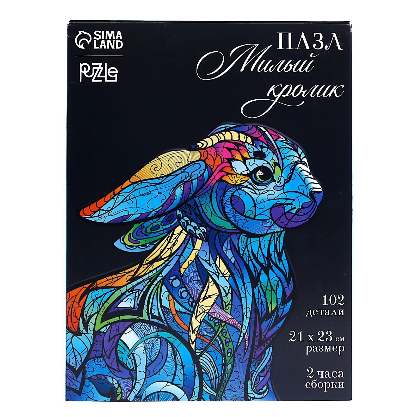 Пазл фигурный « милый кролик» , 102 детали. Фигурный пазл позволит собрать любимое животное или сказочного персонажа. Что представляет собой фигурный пазл Каждая деталь в наборе — это отдельная фигурка. Все они изготовлены из дерева, тщательно обработаны и не имеют заусенцев. Поэтому собирать такой пазл приятно и удобно.У пазла фигурный силуэт. Готовая картинка получится необычной формы, что ещё больше заинтересует детей попробовать этот вид творчества.Цвет:Синий|Цвет:Голубой|Для кого:Унисекс|Возраст:От 7 лет|Ширина собранного пазла, см:21|Длина собранного пазла, см:23|Количество элементов:102|Тематика:Животный мир|Тематика праздника:Универсальная тематика|Возраст:Любой|Материал:Дерево|Развитие навыков:Моторика|Развитие навыков:Координация|Развитие навыков:Логика|Тип пазлов:С фигурными элементами|Форма:Фигурный|Особенности:Без особенностей|Страна:Россия  развернуть описание ▼