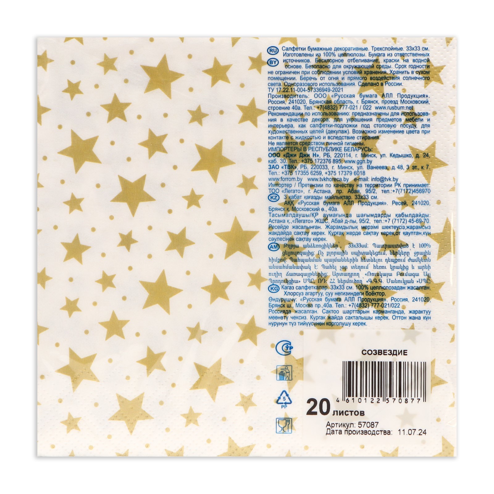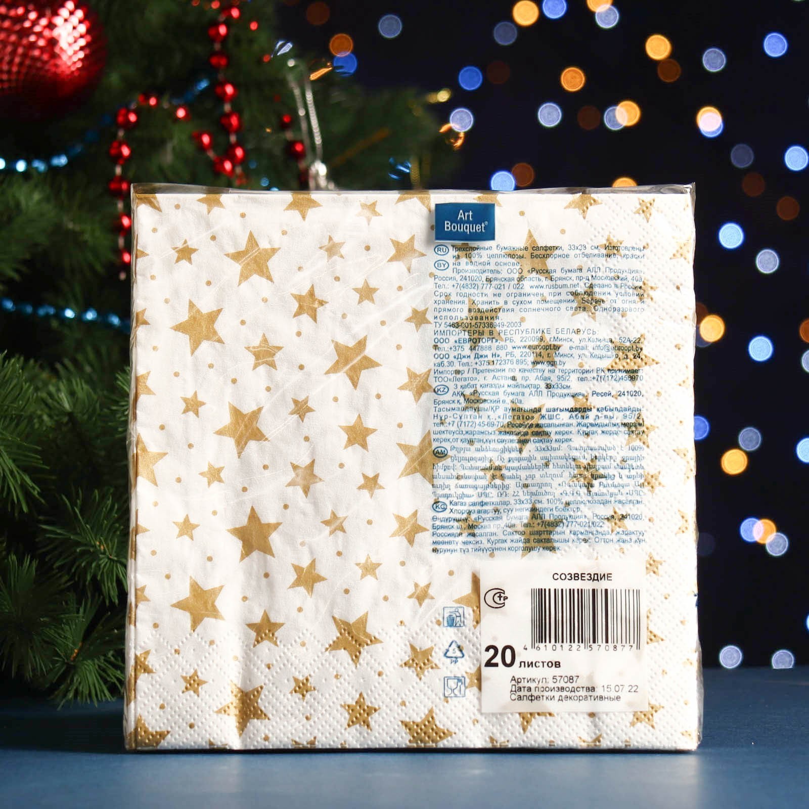 Новогодние салфетки бумажные Art Bouquet «созвездие», 3 слоя, 33x33 см, 20 шт