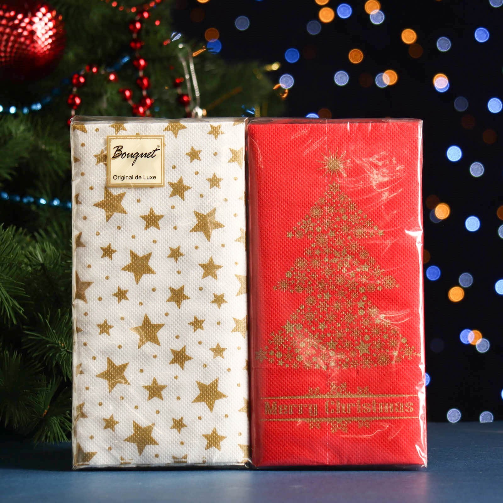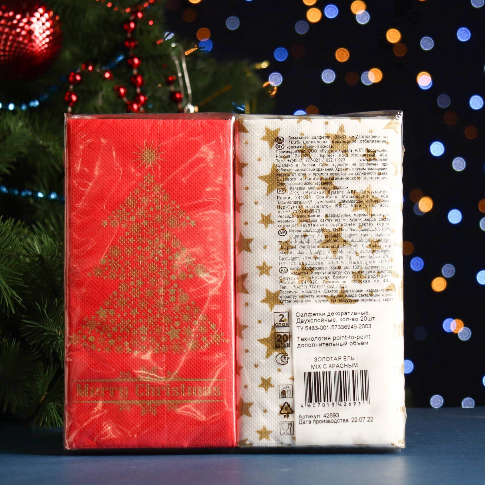 Салфетки бумажные "Bouquet" золотая ель Mix C красным, 2 слоя, 20 листов