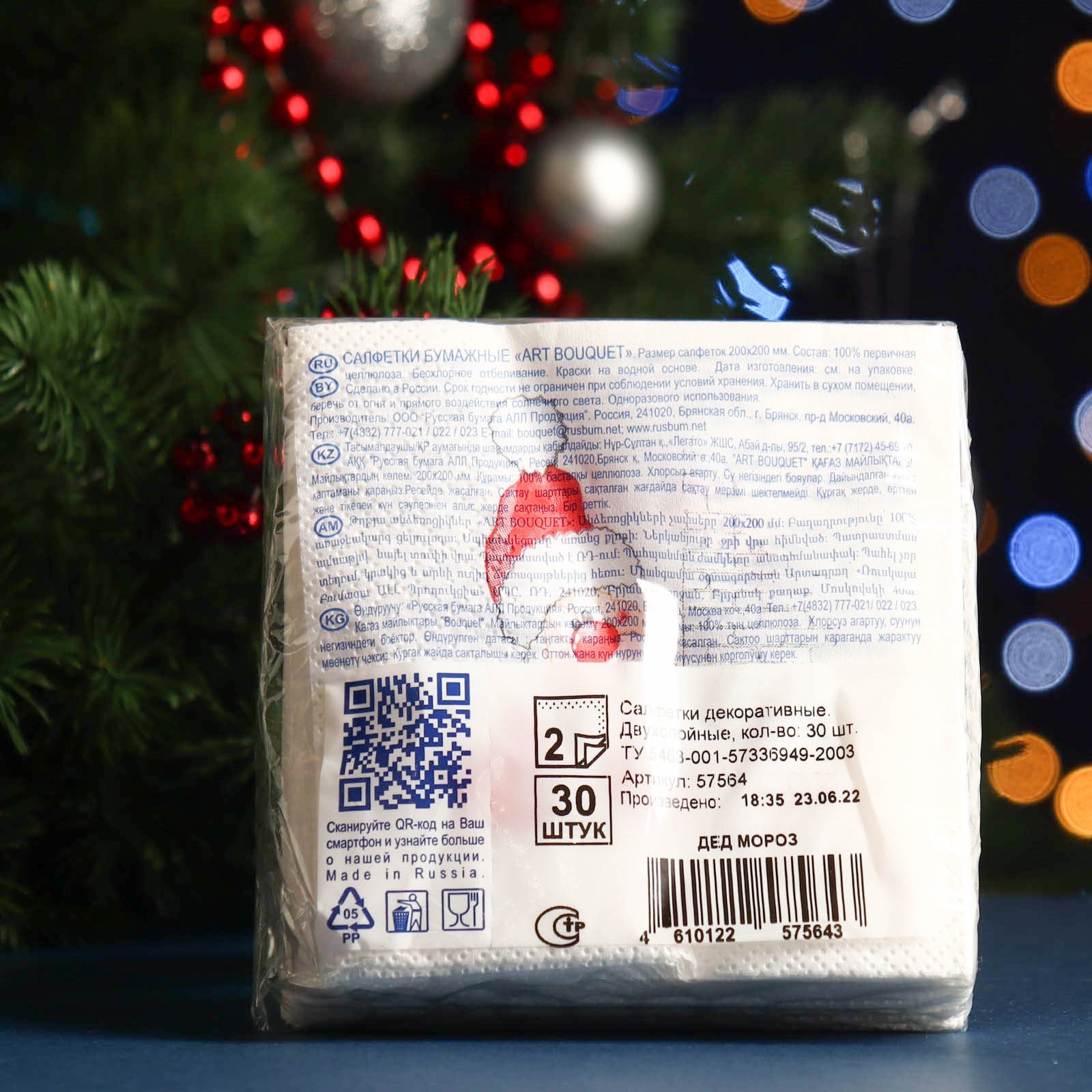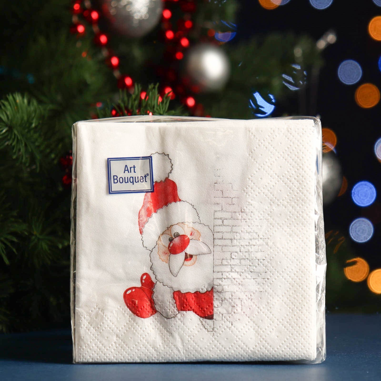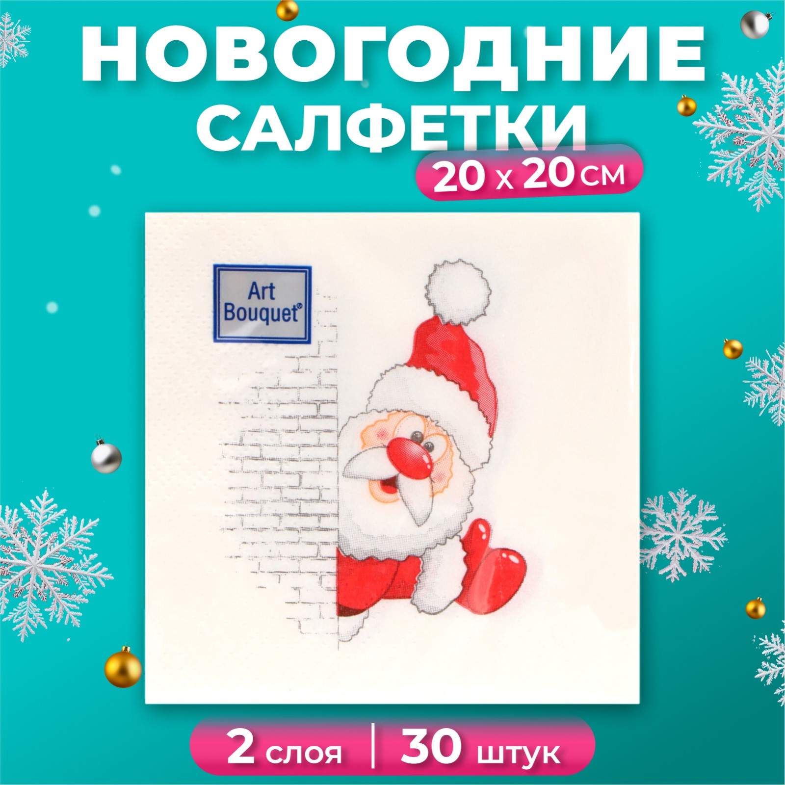Новогодние салфетки бумажные Art Bouquet «дед мороз», 2 слоя, 20x20 см, 30 шт
