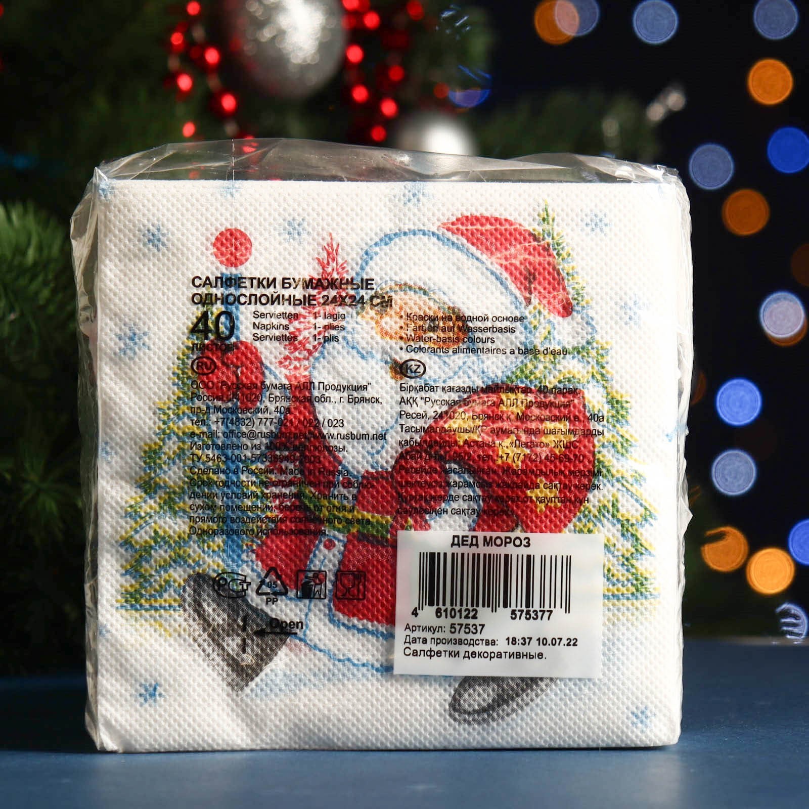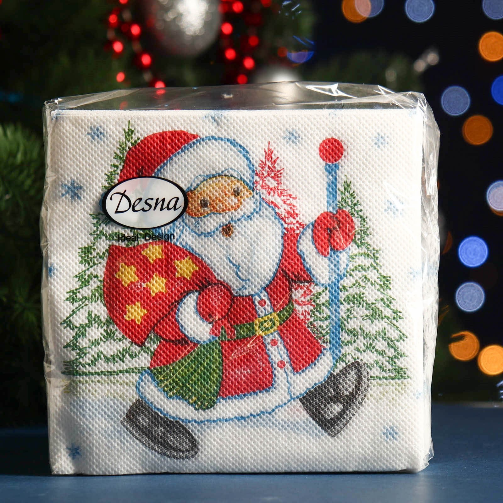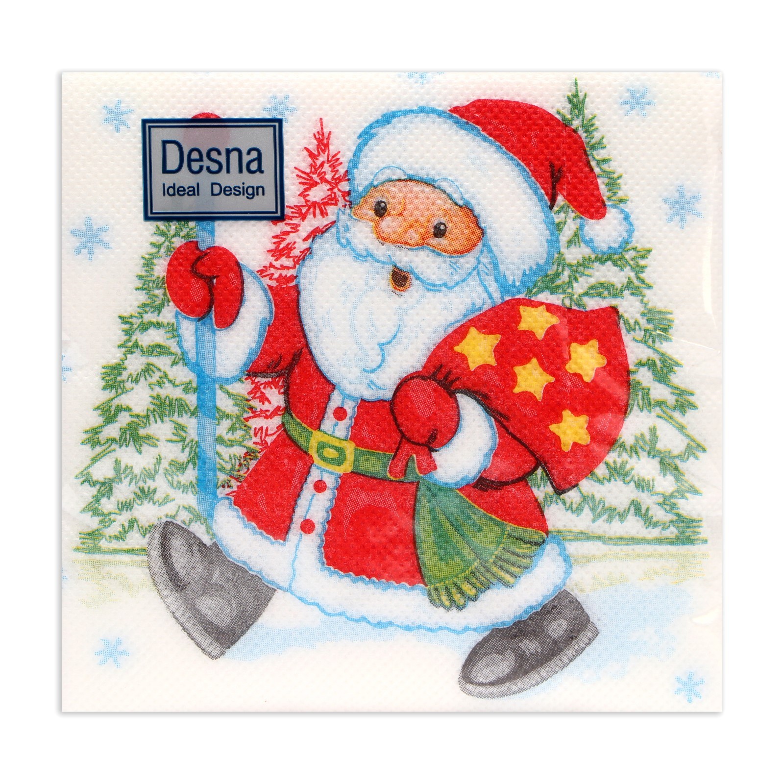 Новогодние салфетки бумажные Desna Design «дед мороз» , 1 слой, 24x24 см, 40 шт