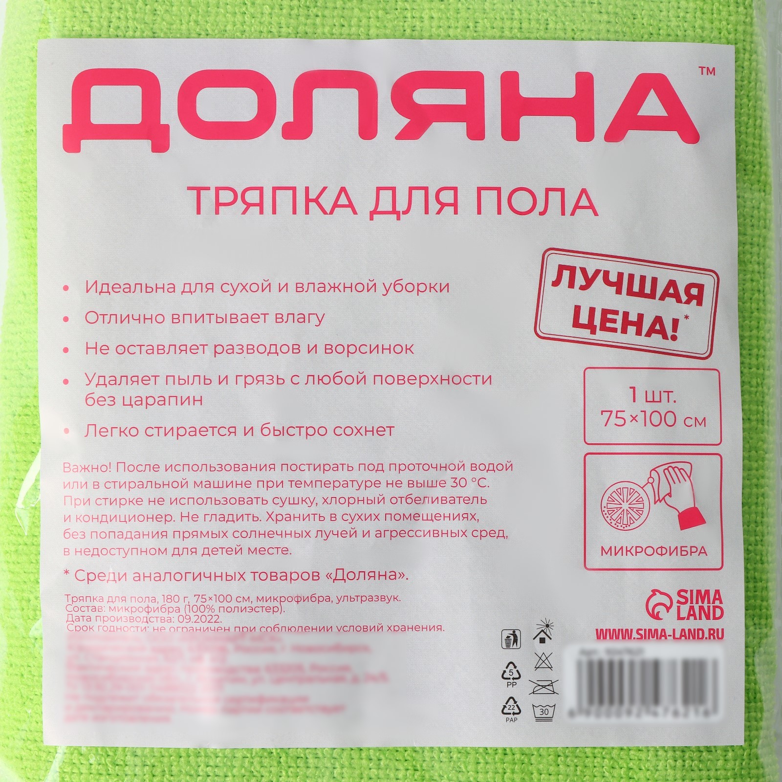 Тряпка для пола доляна «промо», 180 гр, 75x100 см, микрофибра, ультразвуковая обработка края