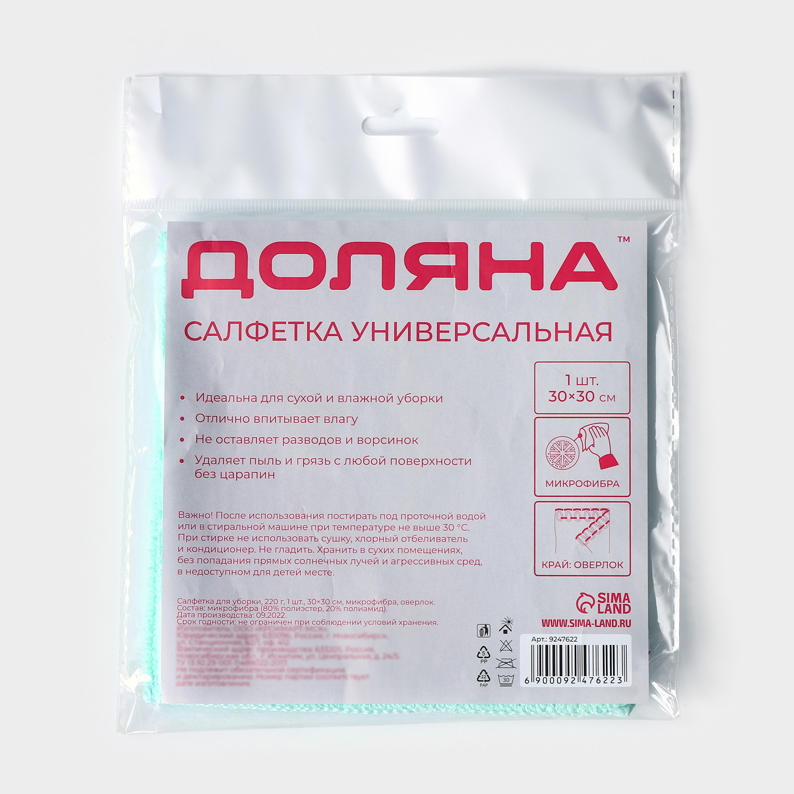 Салфетка универсальная доляна, тряпка для уборки, 220 гр, 30x30 см, микрофибра, C оверлоком, микс
