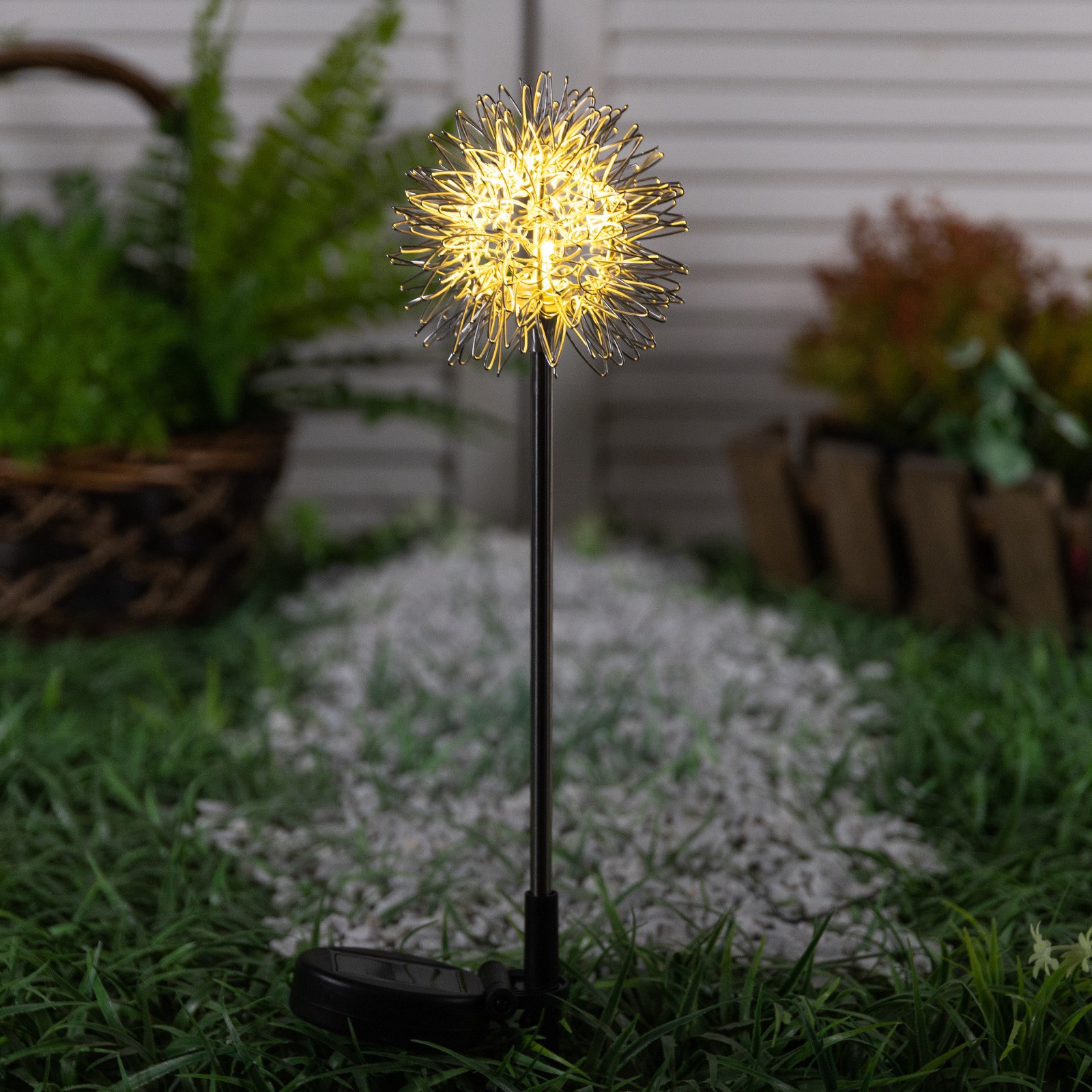 Садовый светильник «морской ёж», уличный, на солнечной батарее, 70 см, 1 Led, свечение тёплое белое