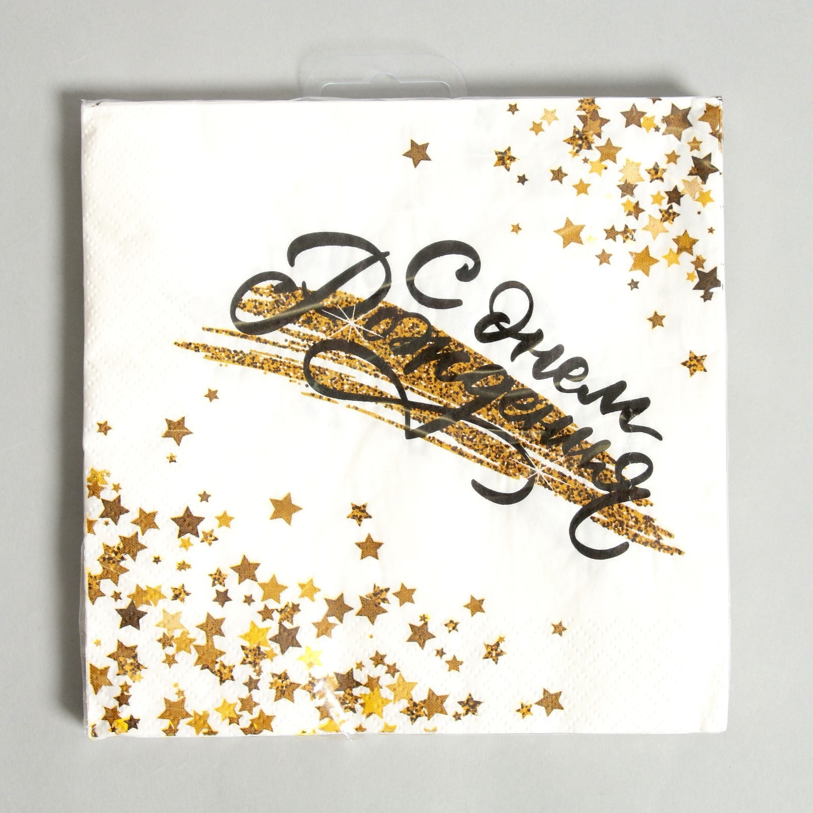 Салфетки бумажные «с днём рождения», (золотой звёздопад), 33 X 33 см, в наборе 12 штук