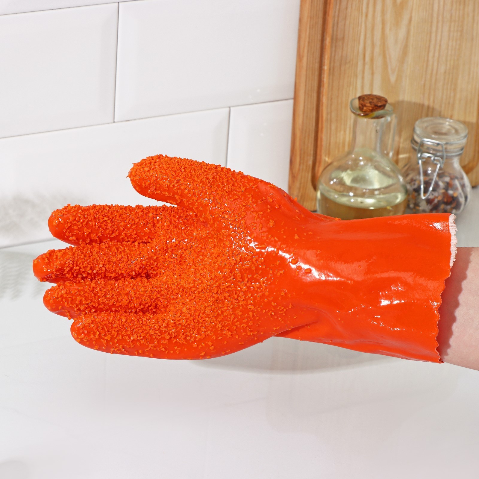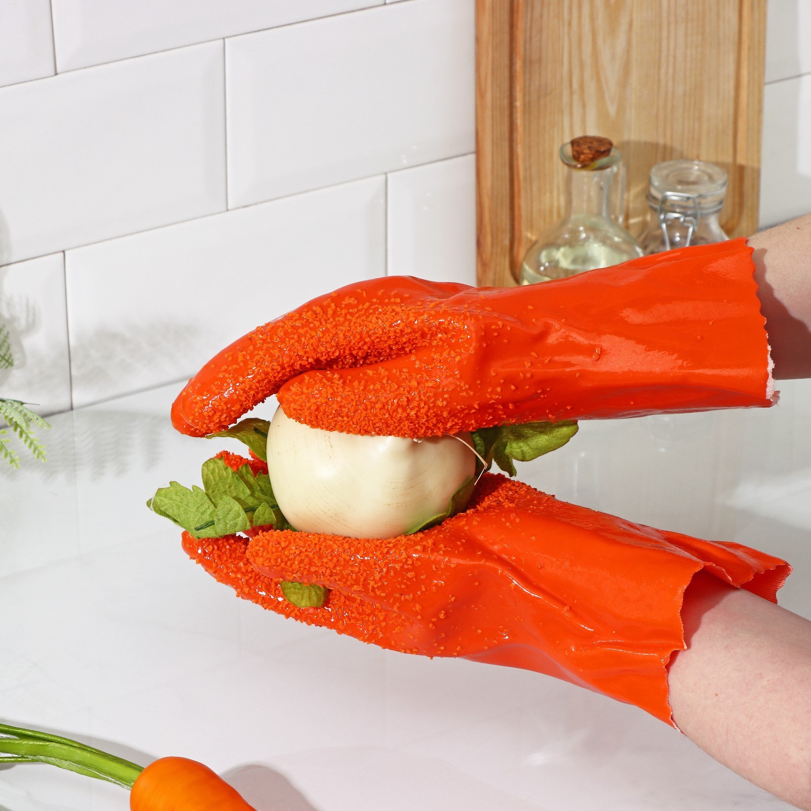Перчатки резиновые для чистки овощей, рыбы, размер One Size