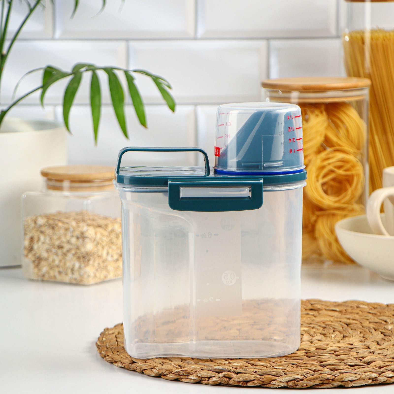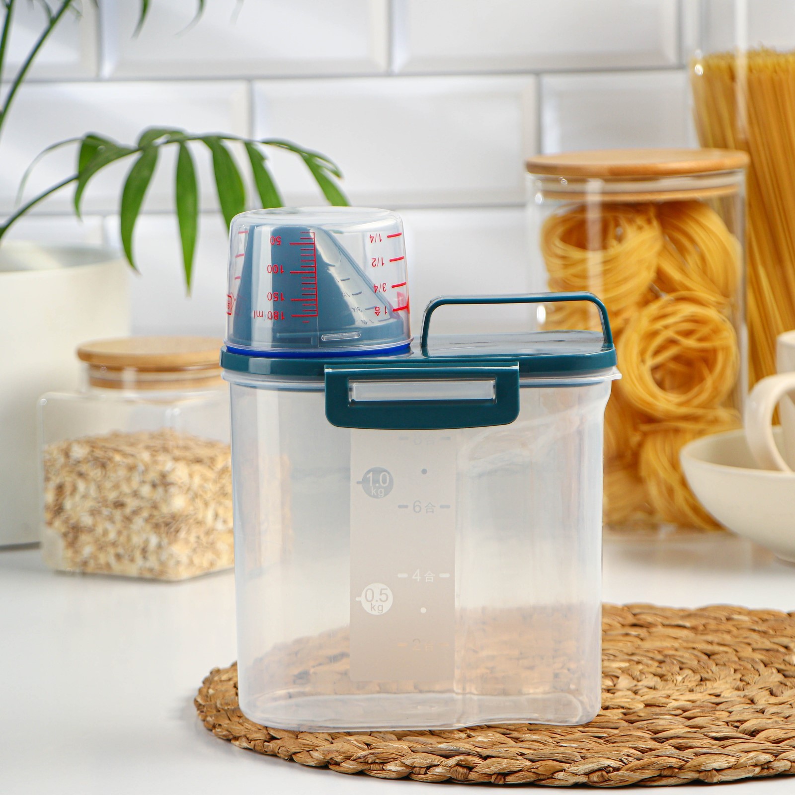 Контейнер пластиковый для хранения сыпучих продуктов с дозатором, 1 кг, 17x10,5x22 см, цвет прозрачный