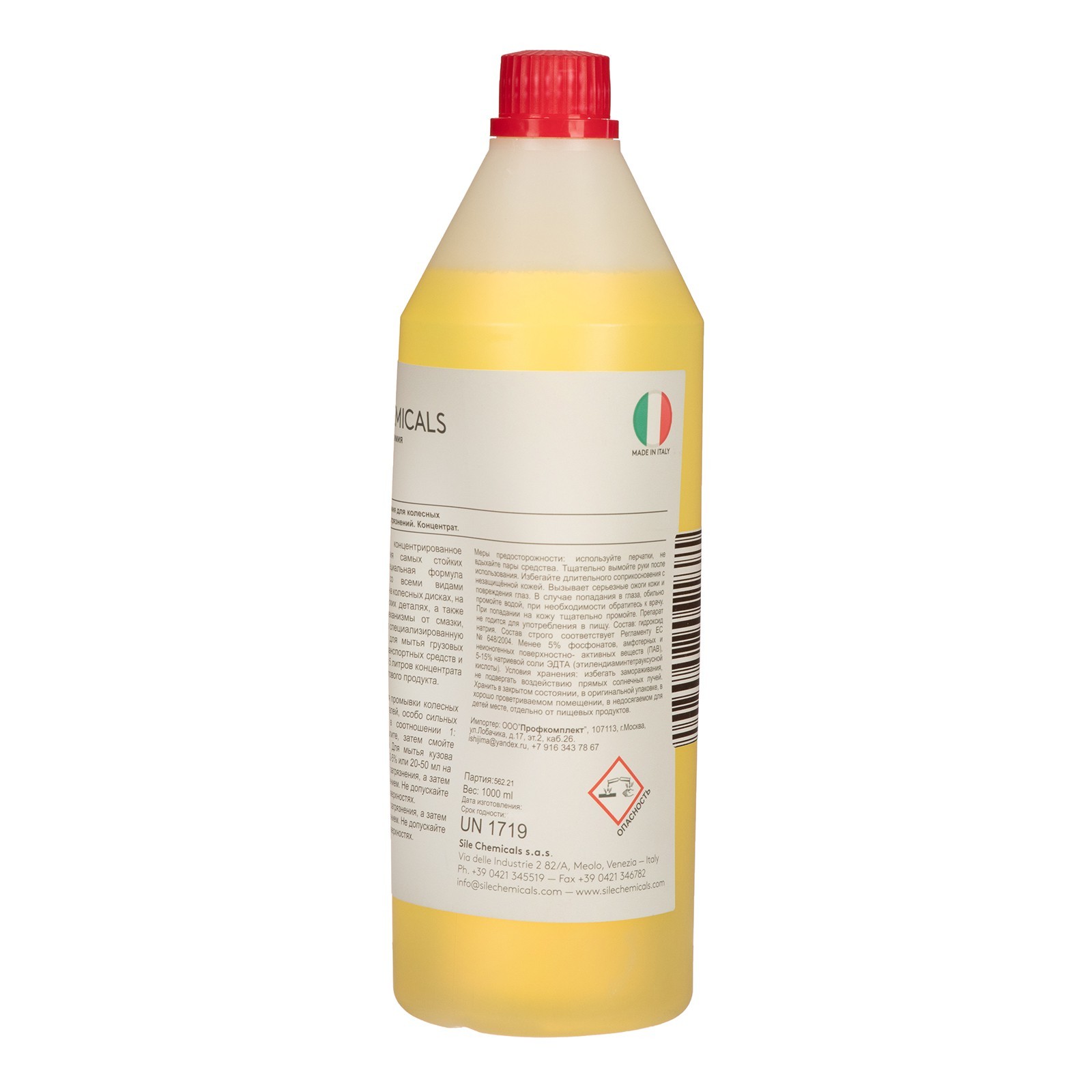 Моющее средство rim для колесных дисков и особо сильных загрязнений, концентрат, 1л. Профессиональное концентрированное средство для удаления самых стойких загрязнений. Его специальная формула позволяет бороться со всеми видами загрязнений, в том числе на колесных дисках, на особо грязных механических деталях, а также промывать детали и механизмы от смазки, промывать баки и другую специализированную тару. Отлично подходит для мытья грузовых автомобилей, тяжелых транспортных средств и строительной техники. Состав строго соответствует регламенту ЕС № 648/2004. Менее 5% фосфонатов, амфотерных и неионогенных поверхностно-активных веществ (ПАВ), 5-15% натриевой соли ЭДТА (этилендиаминтетрауксусной кислоты). Способ применения: для промывки колесных дисков, механических деталей, особо сильных загрязнений, разбавьте в соотношении 1: 3-8 частей воды, распылите, затем смойте под высоким давлением. Для мытья кузова разбавьте в соотношении 2-5% или 20-50 мл на 1л воды в зависимости от загрязнения, а затем смойте под высоким давлением. Не допускайте высыхания средства на поверхностях. parts count: 0 Температурное ограничение: Нет  развернуть описание ▼