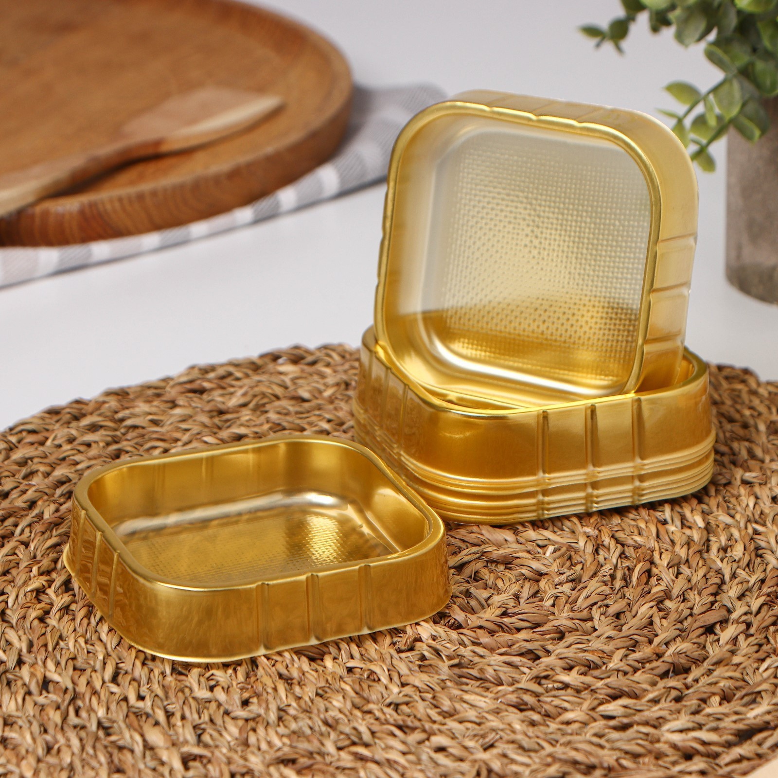 Набор пластиковых одноразовых контейнеров не забыли! основание, 10 шт. Цвет: Золотистый Форма: Квадратная Длина, см: 9.7 Ширина, см: 9.7 Высота, см: 4.5 parts count: 0 В наборе, шт.: 10 tnved: 3924100000 Материал: ПВХ Вид еды: Для десертов Вид еды: Для шоколада Вид еды: Универсальный Вид: Крышка для контейнера Форма: Квадрат, куб  развернуть описание ▼