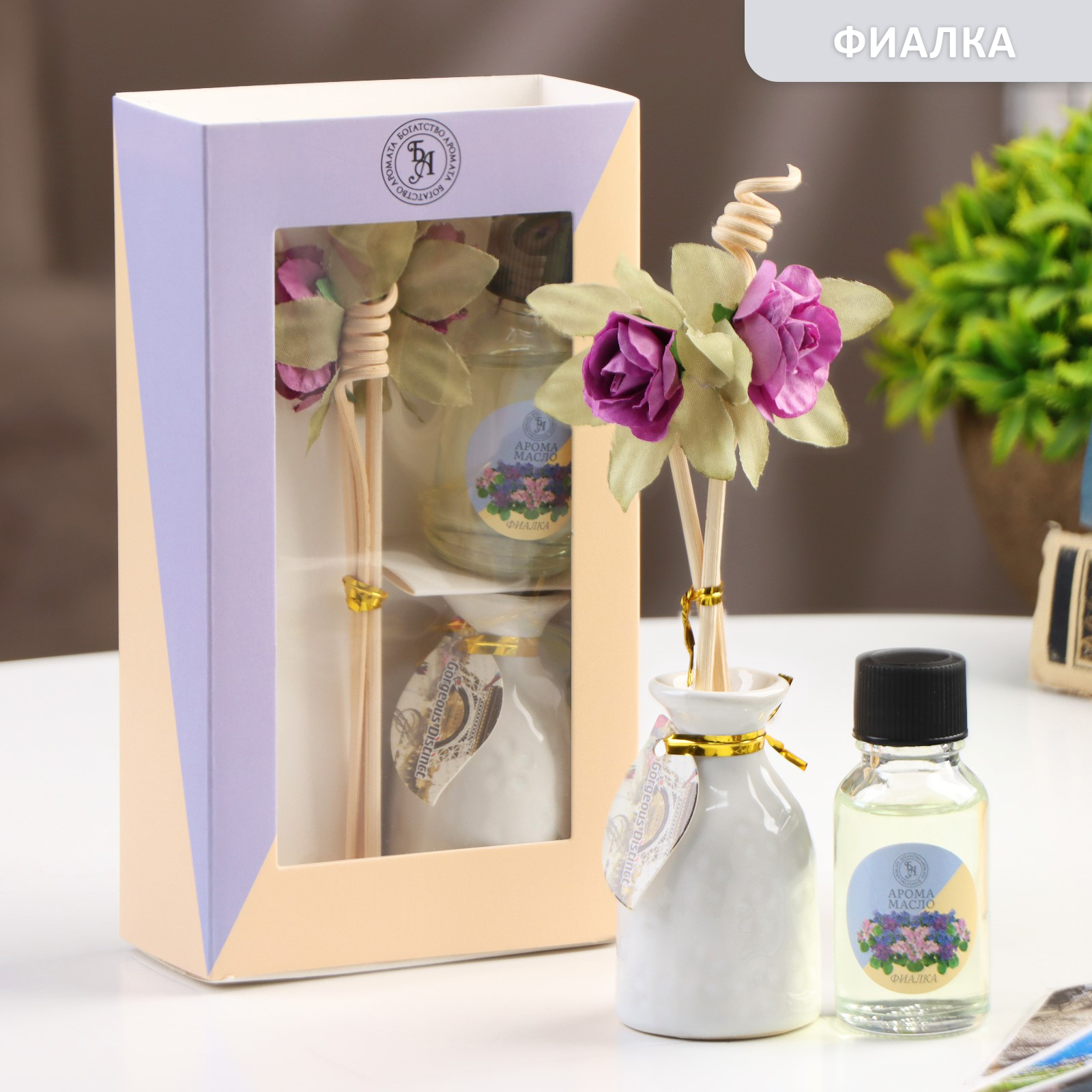 Набор подарочный с диффузором «ваза с цветком», аромат фиалка, «богатство аромата». Погрузитесь в атмосферу уюта и роскоши с нашим набором подарочным Ваза с Цветком. Этот изысканный набор сочетает в себе элегантный диффузор, стилизованный под вазу с прекрасным цветком, и ароматическое масло, чтобы ваш дом всегда наполнялся нежным ароматом. Просто добавьте несколько капель масла в диффузор, и он будет распространять приятный аромат, создавая атмосферу спокойствия и комфорта. Этот набор идеально подходит для подарка вашим близким и друзьям, делая их дни еще более особенными и приятными. Для кого:Унисекс|Для кого:Для женщины|В наборе, шт.:3|Объём, мл:15|Вид упаковки:Коробка|Тематика праздника:Универсальная тематика|Адресат:Без адресата|Вид ароматизатора:Диффузор|Вид ароматизатора:Аромамасло|Аромат:Фиалка|Составляющие набора:Декор|Составляющие набора:Аромамасло|Составляющие набора:Ваза|Возраст:Для взрослых|Страна:Китай  развернуть описание ▼
