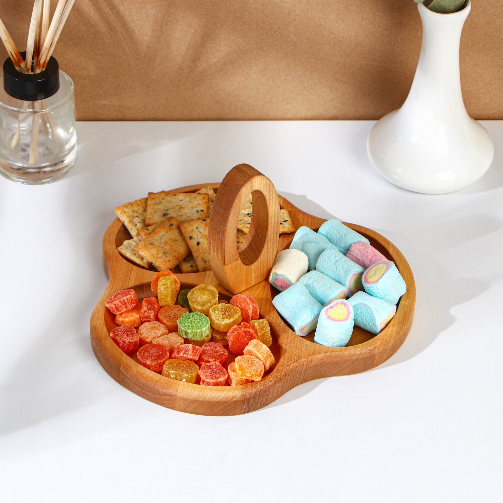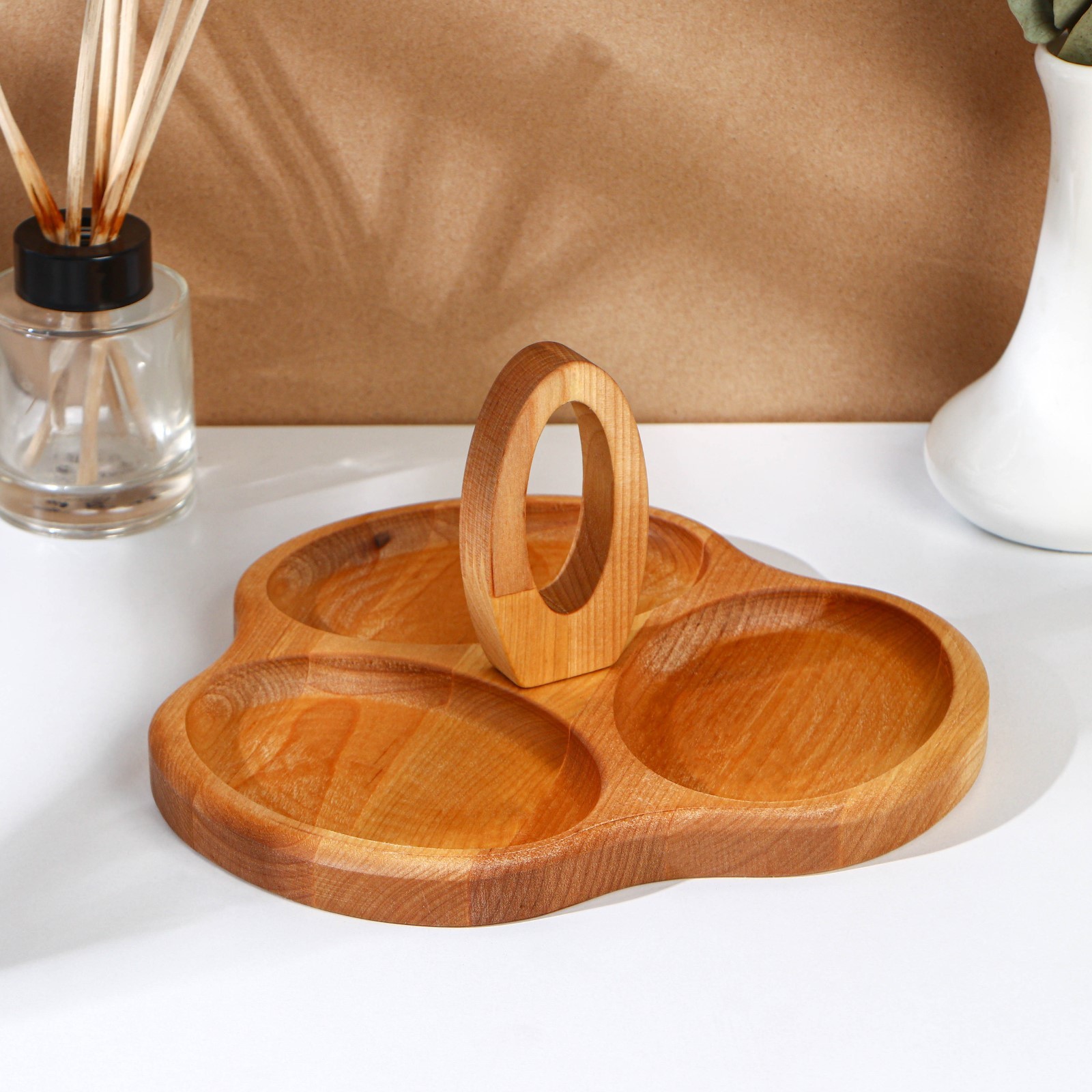 Менажница Adelica, 3 секции, с ручкой, 22x1,8 см, массив берёзы
