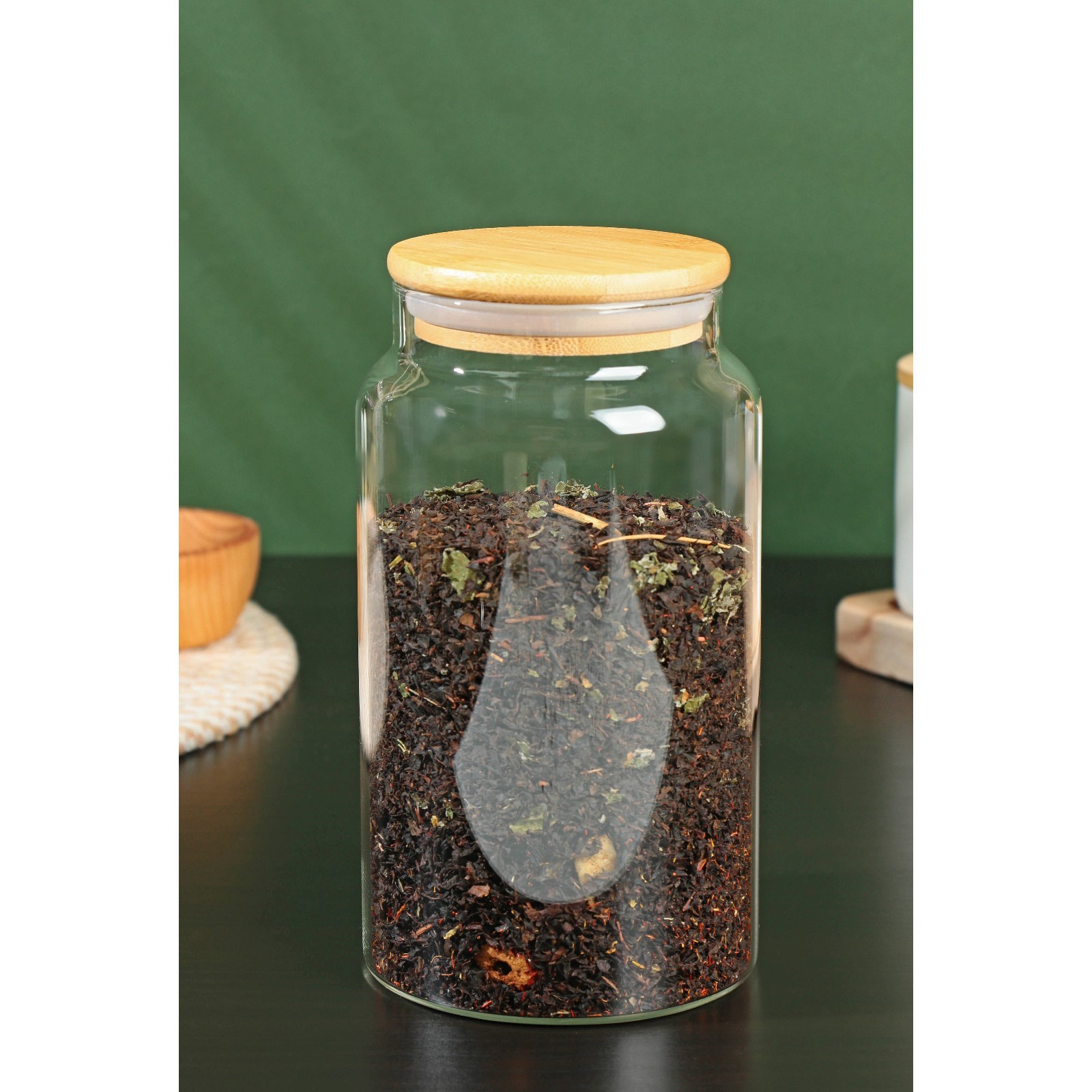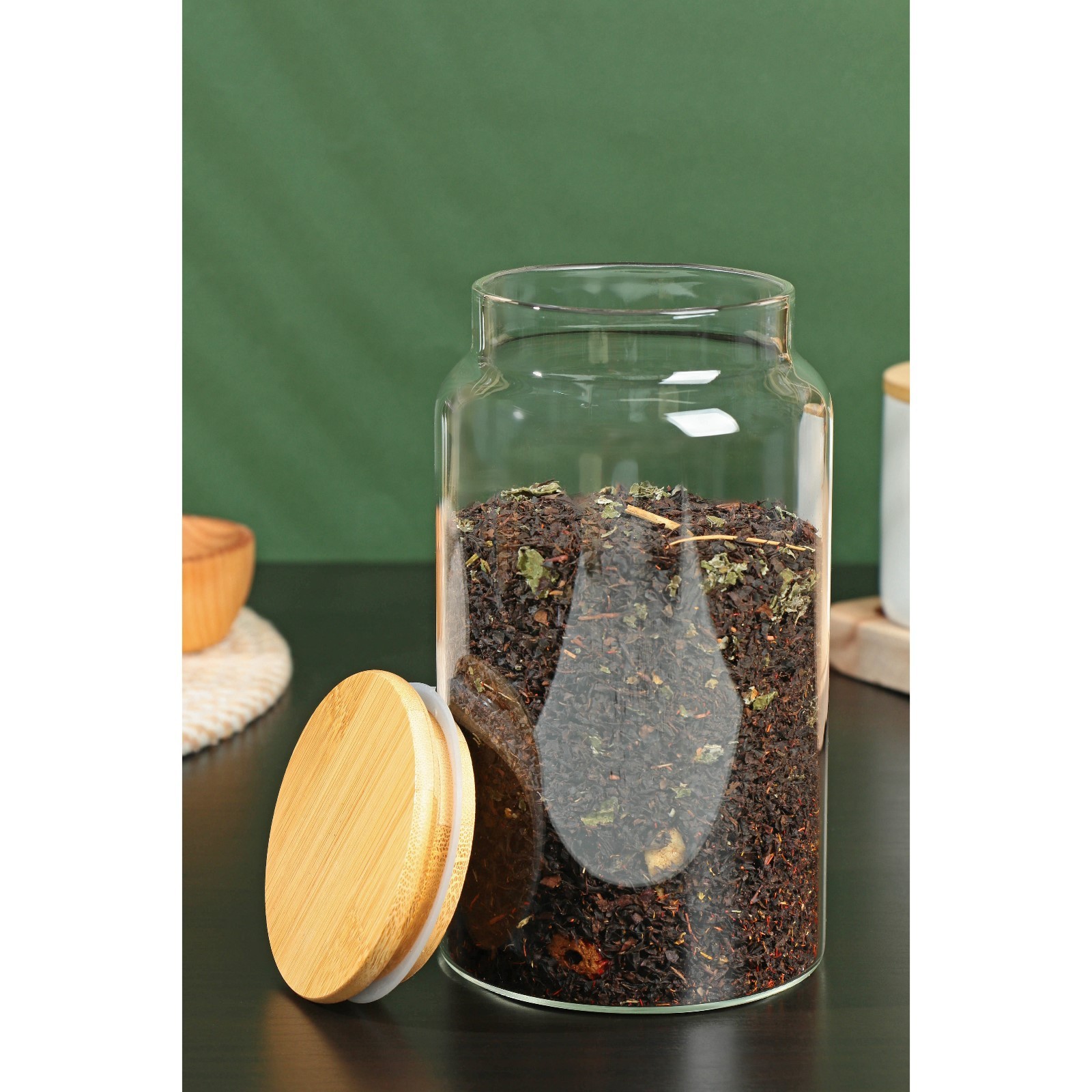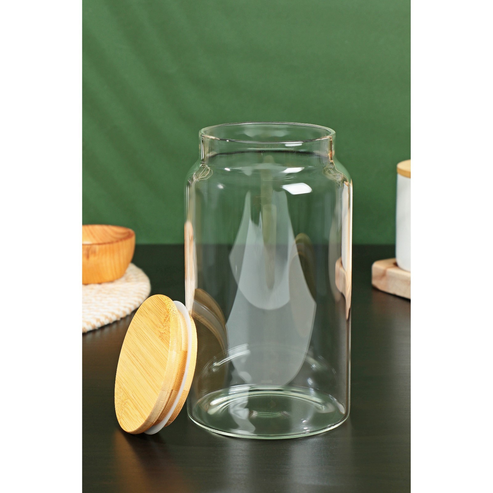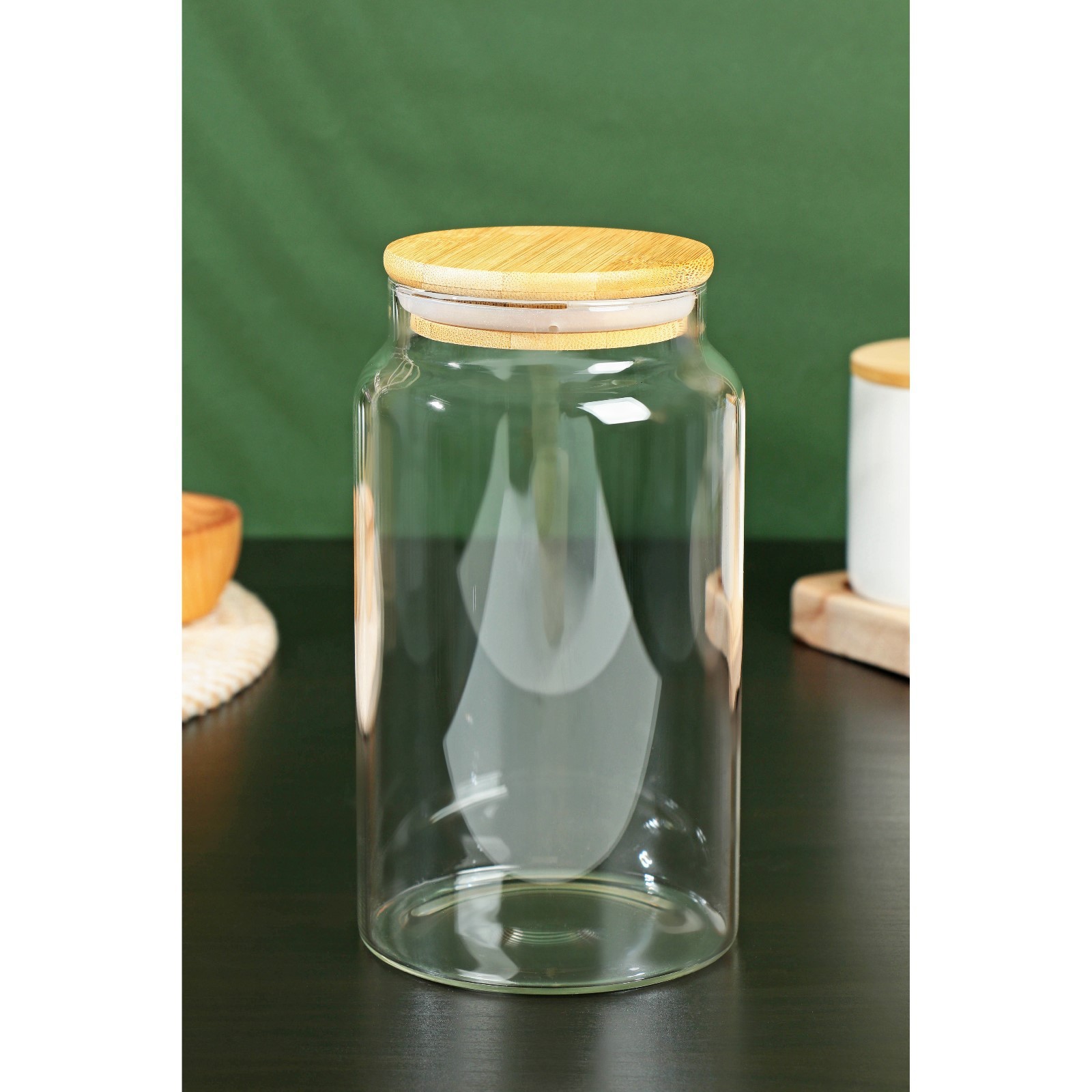 Банка из стекла для сыпучих продуктов с бамбуковой крышкой «эко», 1 л, 10x18 см