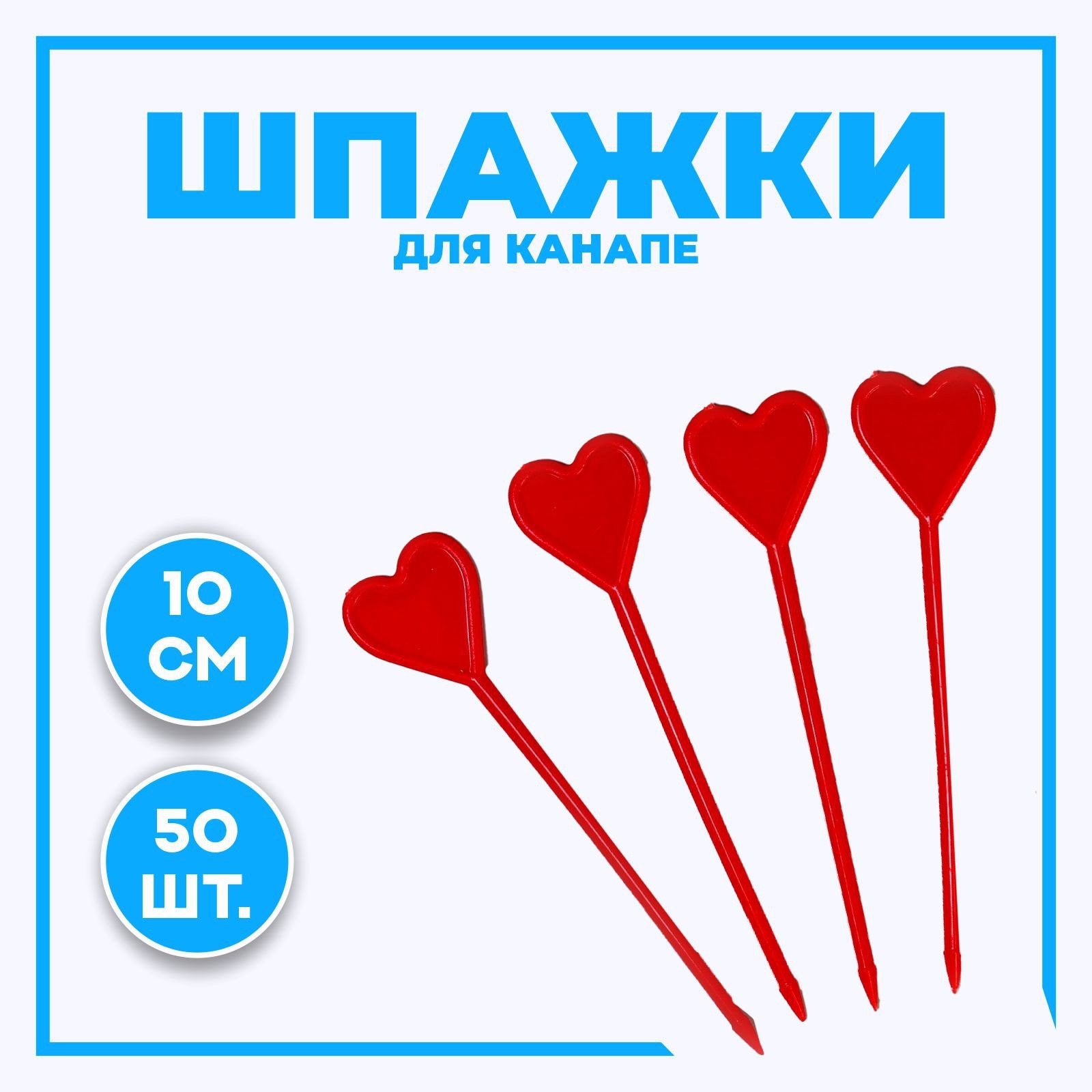 Шпажки «сердце», в наборе 50 штук, цвет красный