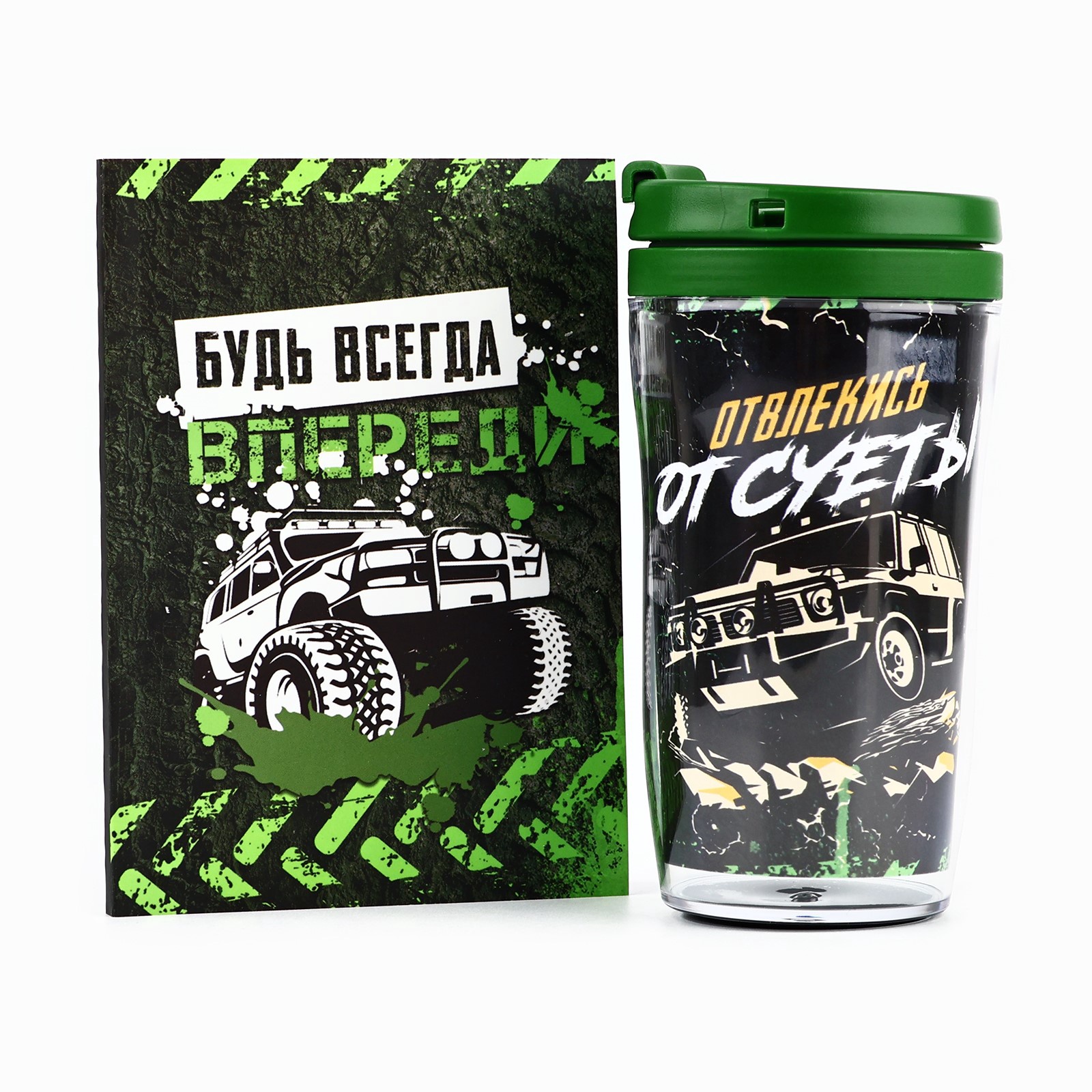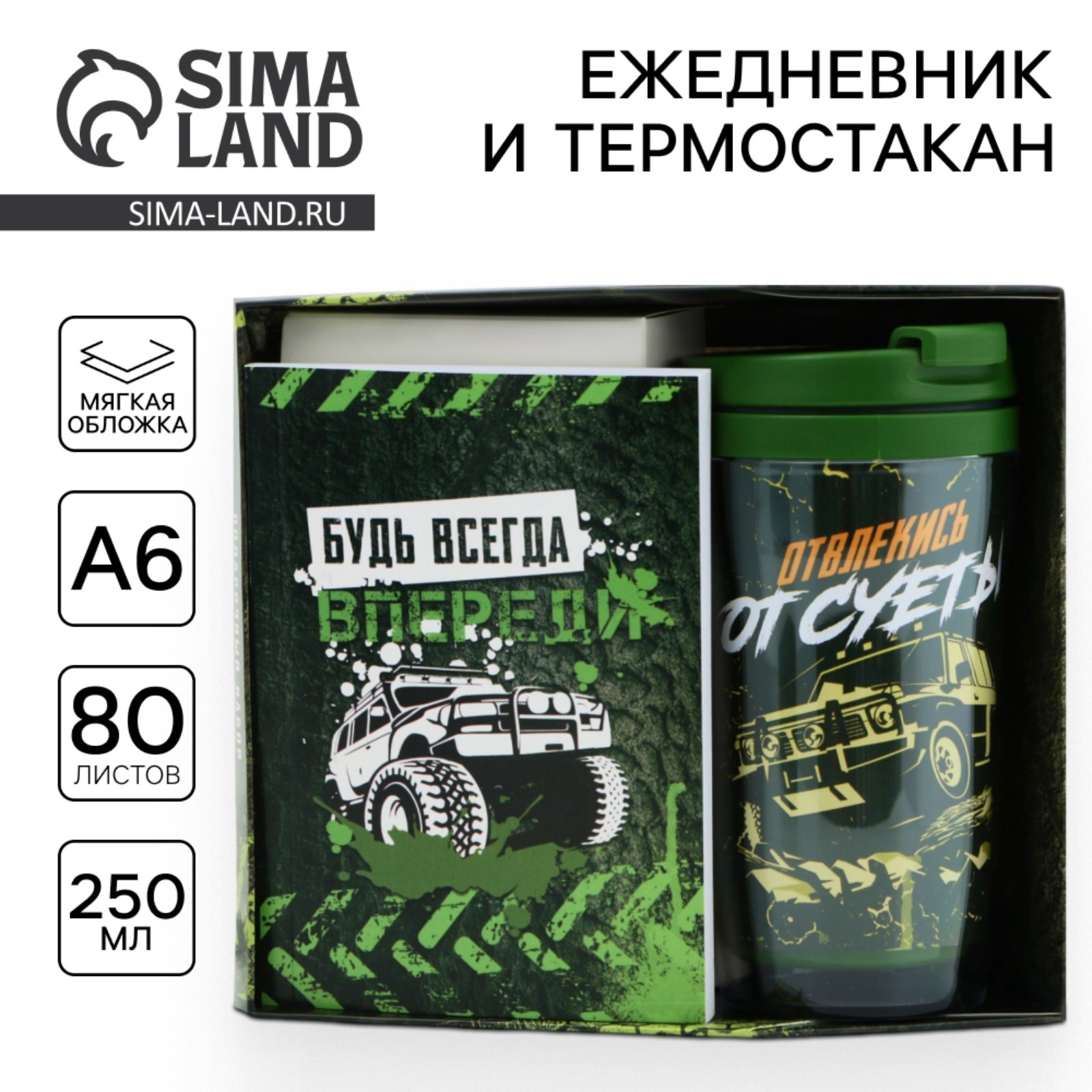 Подарочный набор: ежедневник а6, 80 л. и термостакан 250 мл «будь всегда впереди»