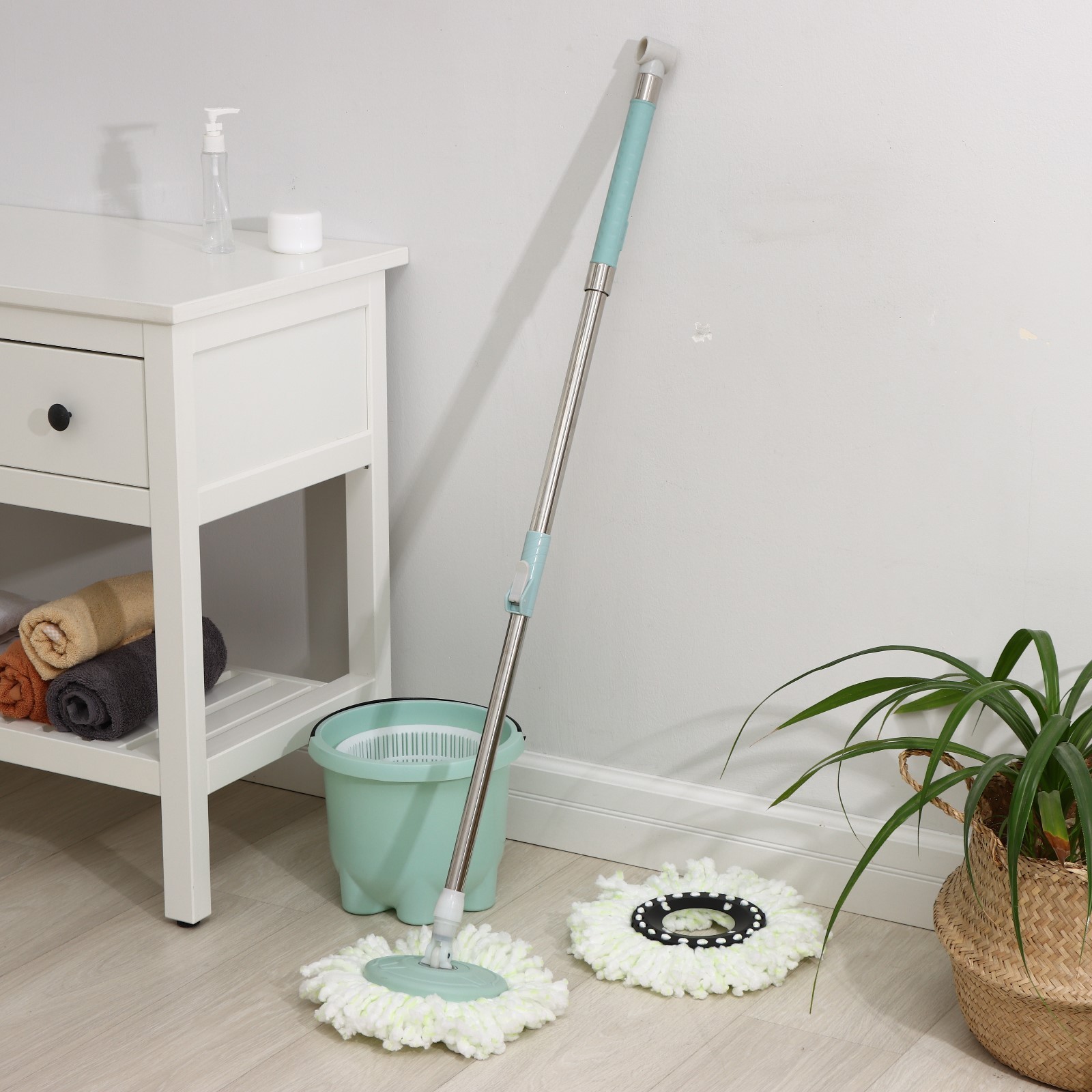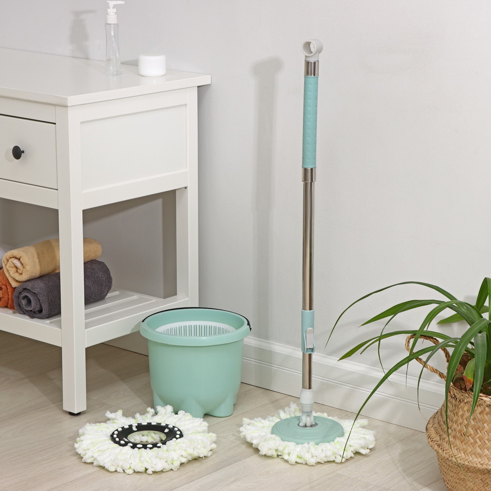 Швабра с отжимом и ведро с пластиковой центрифугой «мини», 26x22 см, 7 л, телескопическая ручка 84-112 см, дополнительная насадк