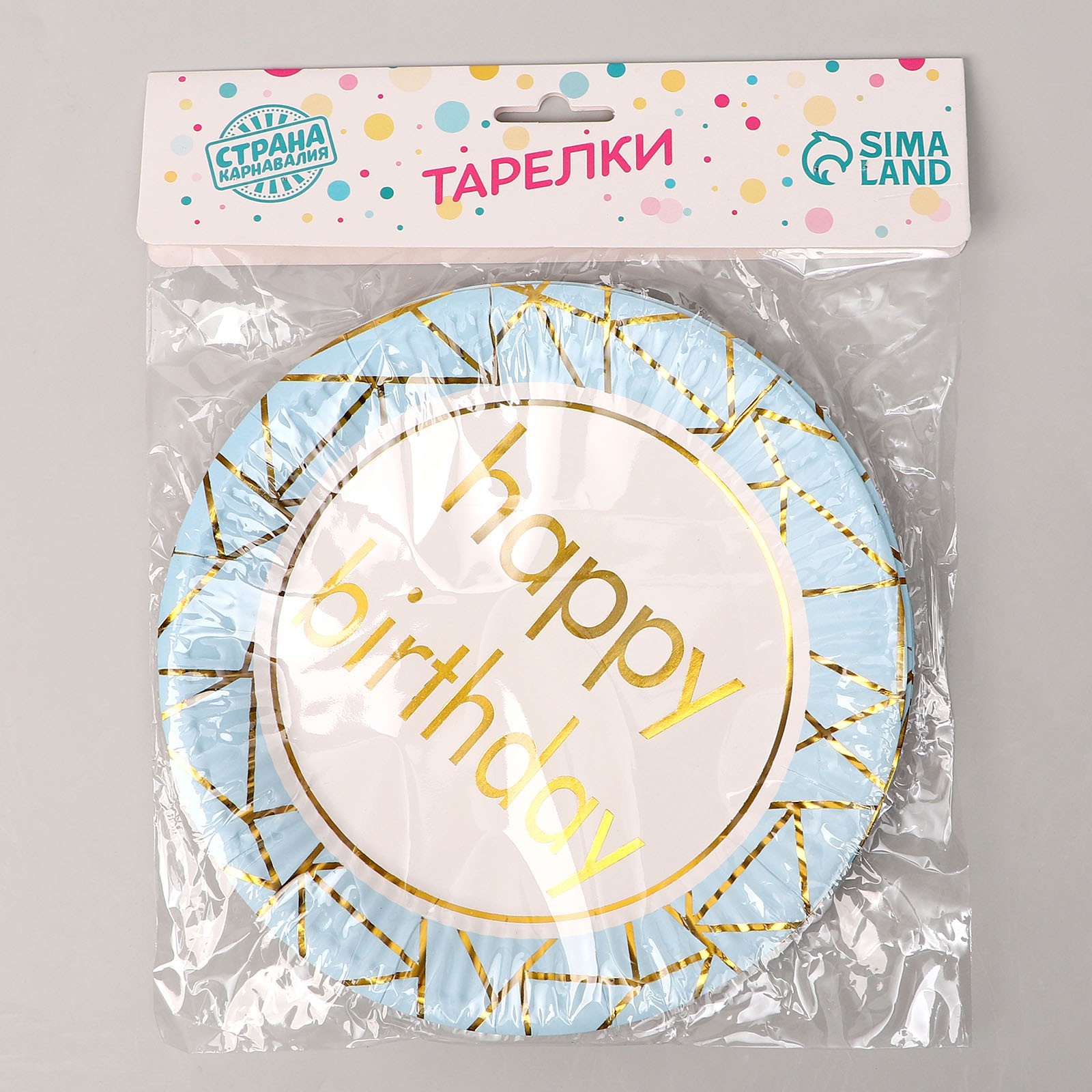 Тарелка бумажная «с днём рождения», в наборе 6 штук, цвет голубой