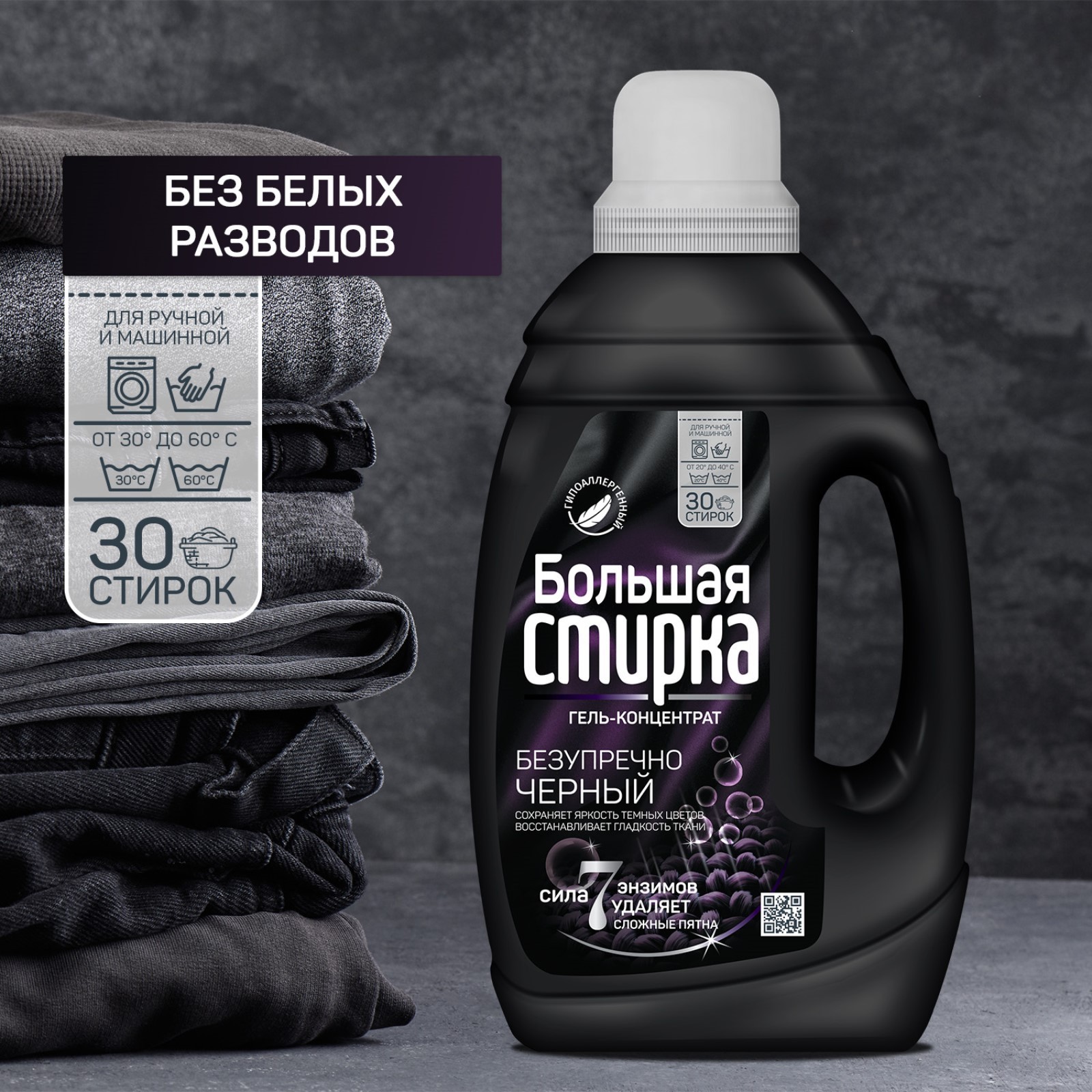 Гель для стирки большая стирка "black", 1200 г. Гель для стирки темных и черных тканей бережно и эффективно удаляет загрязнения с одежды, не оставляя светлых разводов. Сохраняет насыщенность черного цвета, препятствует образованию катышков, разглаживает шероховатость волокон ткани. Полностью выполаскивается. Состав: 5 %, но 15 %: АПАВ, НПАВ; 5 % КПАВ; 5 %: фосфаты, оптический отбеливатель, консервант, ароматизирующая добавка, краситель. parts count: 0 Объём, л: 1.2 Вес, г/Объём, мл: 1200 Форма выпуска: Жидкость Назначение: Для чёрных тканей Вид стирки: Для всех видов стирки : 0 Температурное ограничение: Нет Особенности средства: Концентрат  развернуть описание ▼