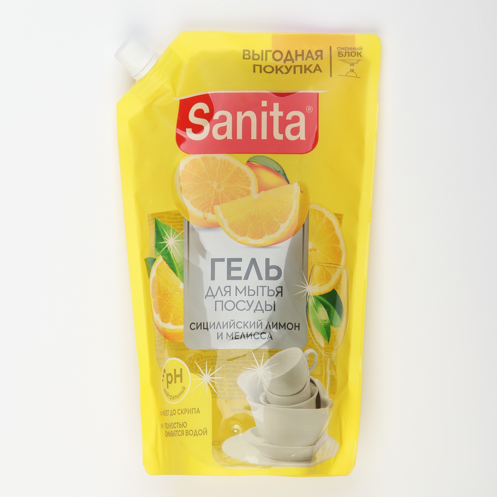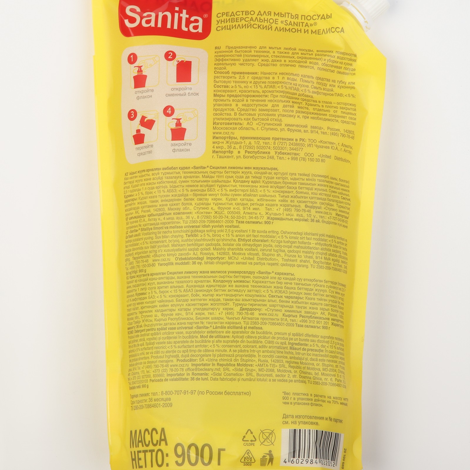 Гель для мытья посуды Sanita "сицилийский лимон и мелисса", дой-пак, 900 г