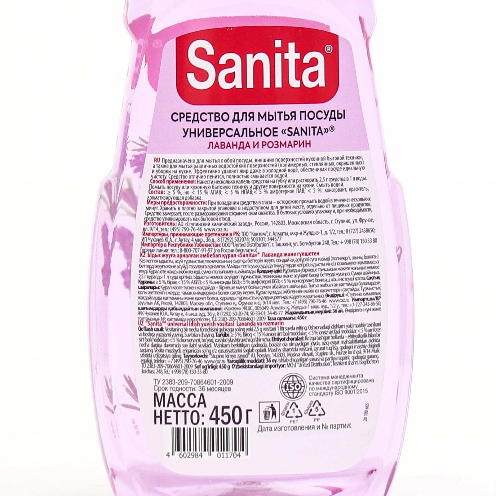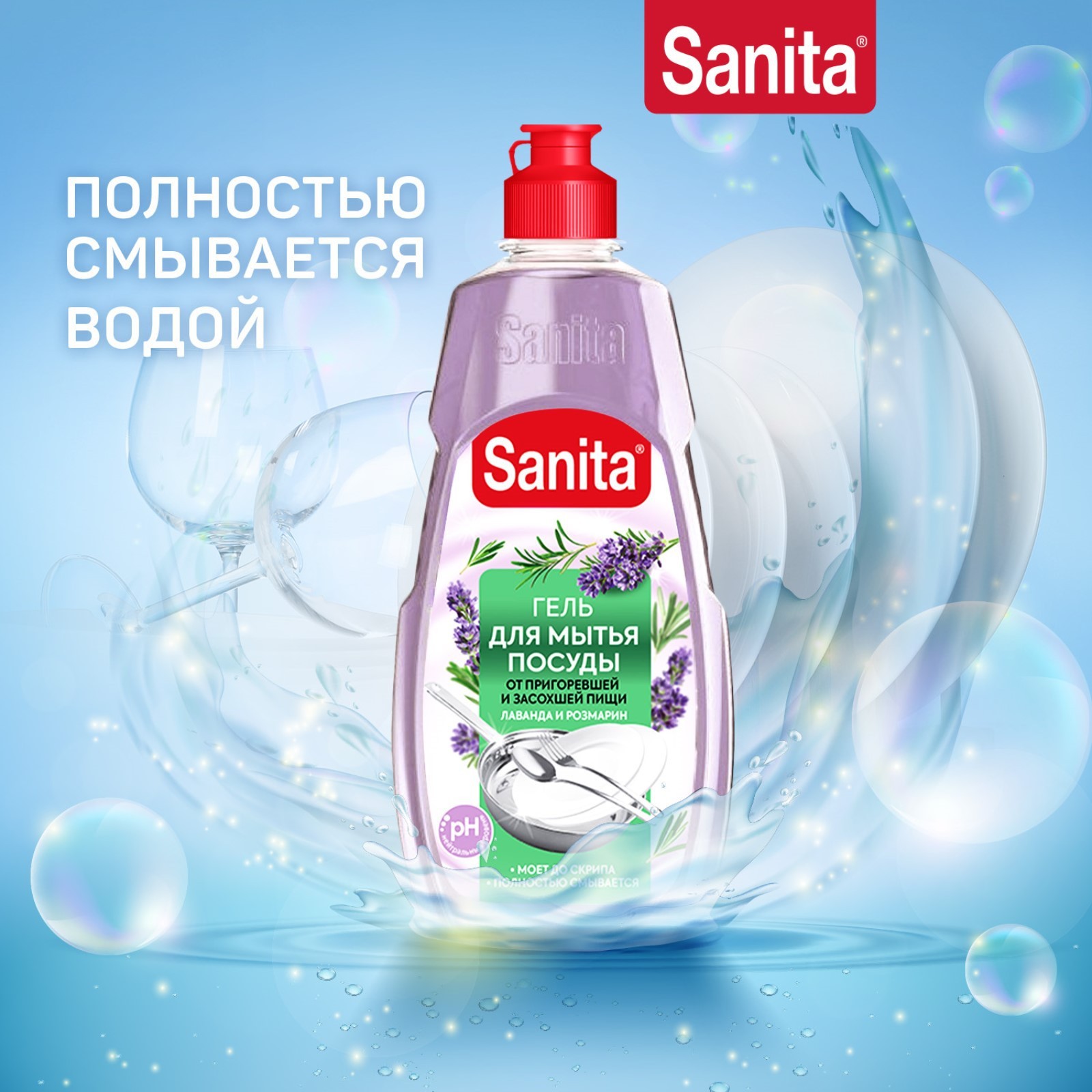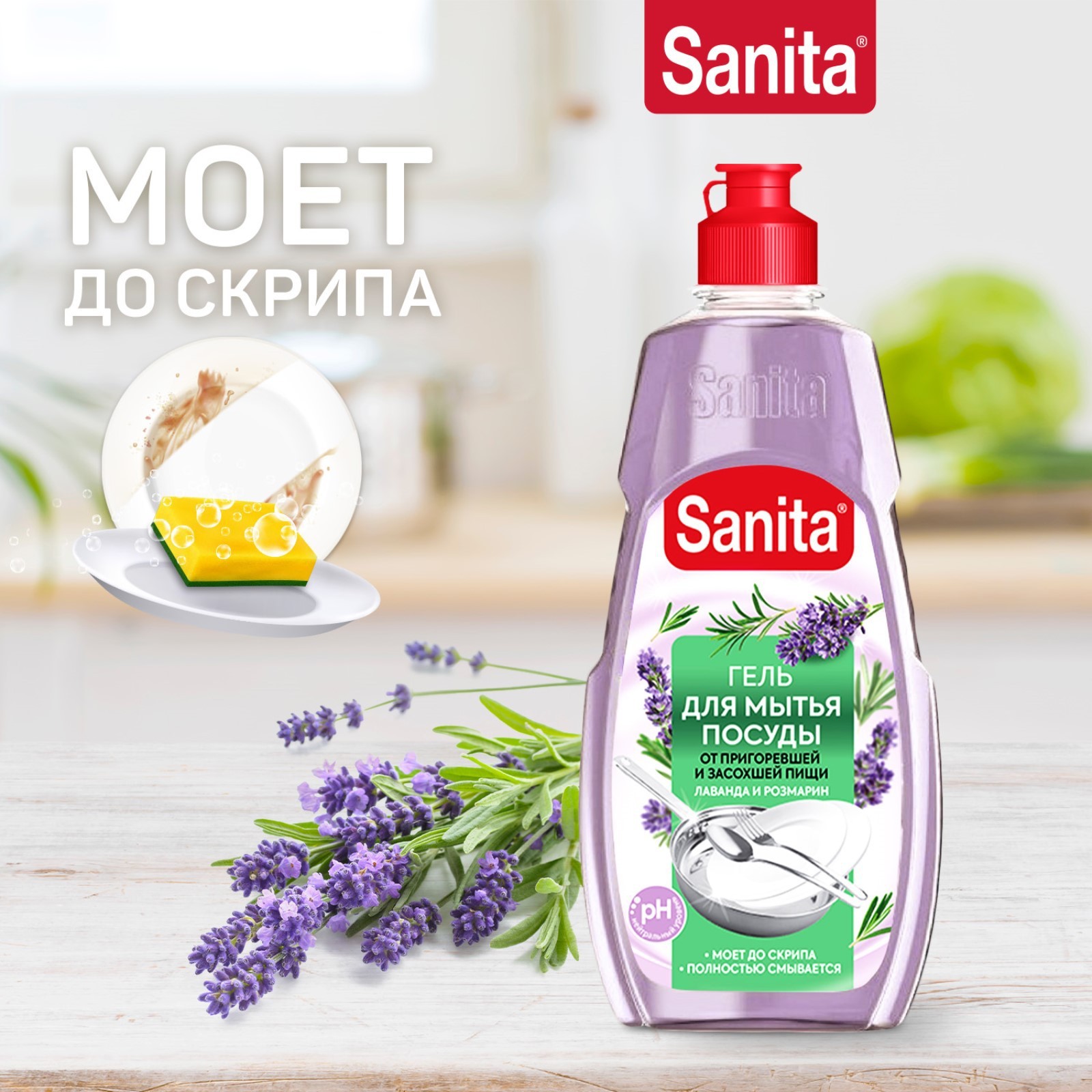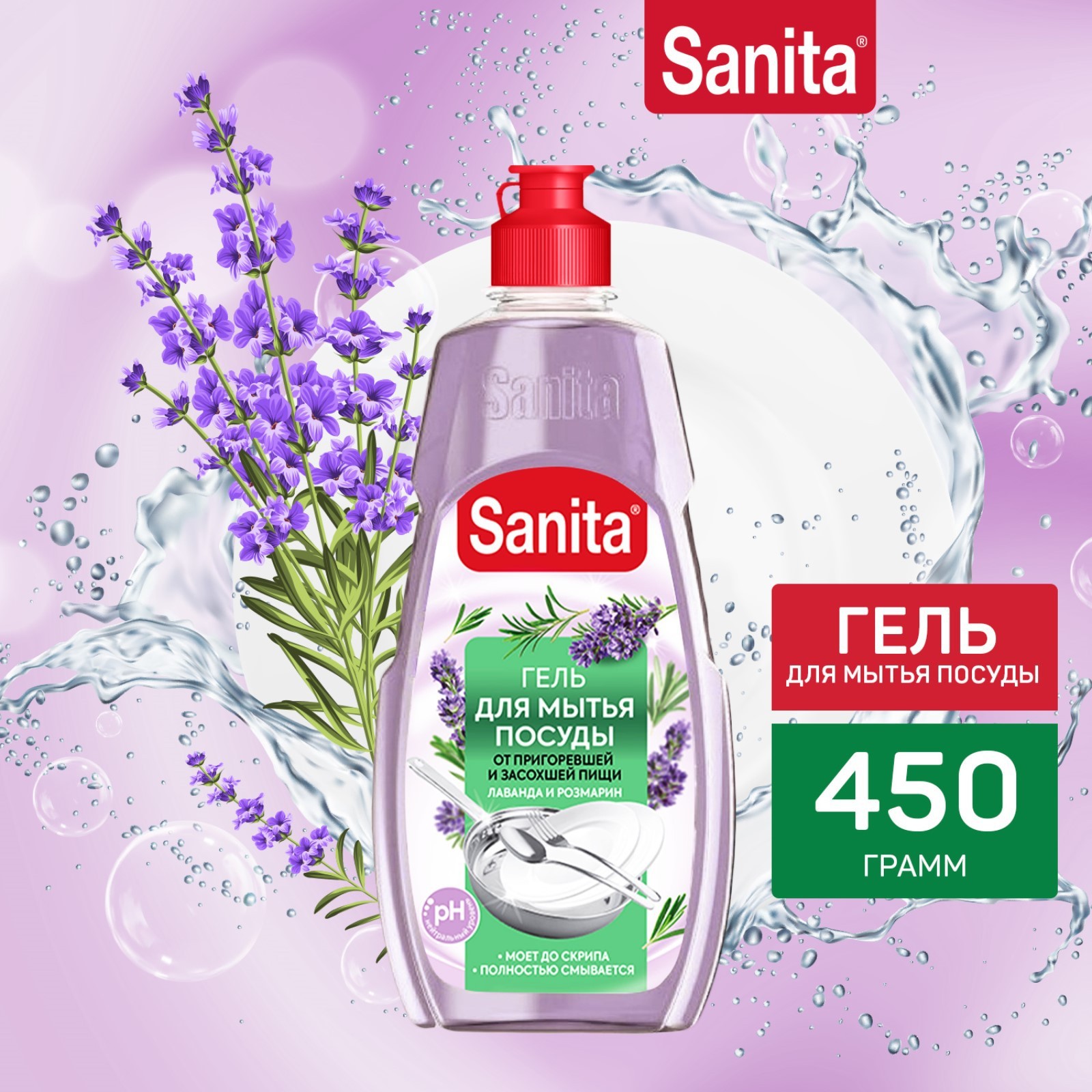 Гель для мытья посуды Sanita "лаванда и розмарин", 450 г
