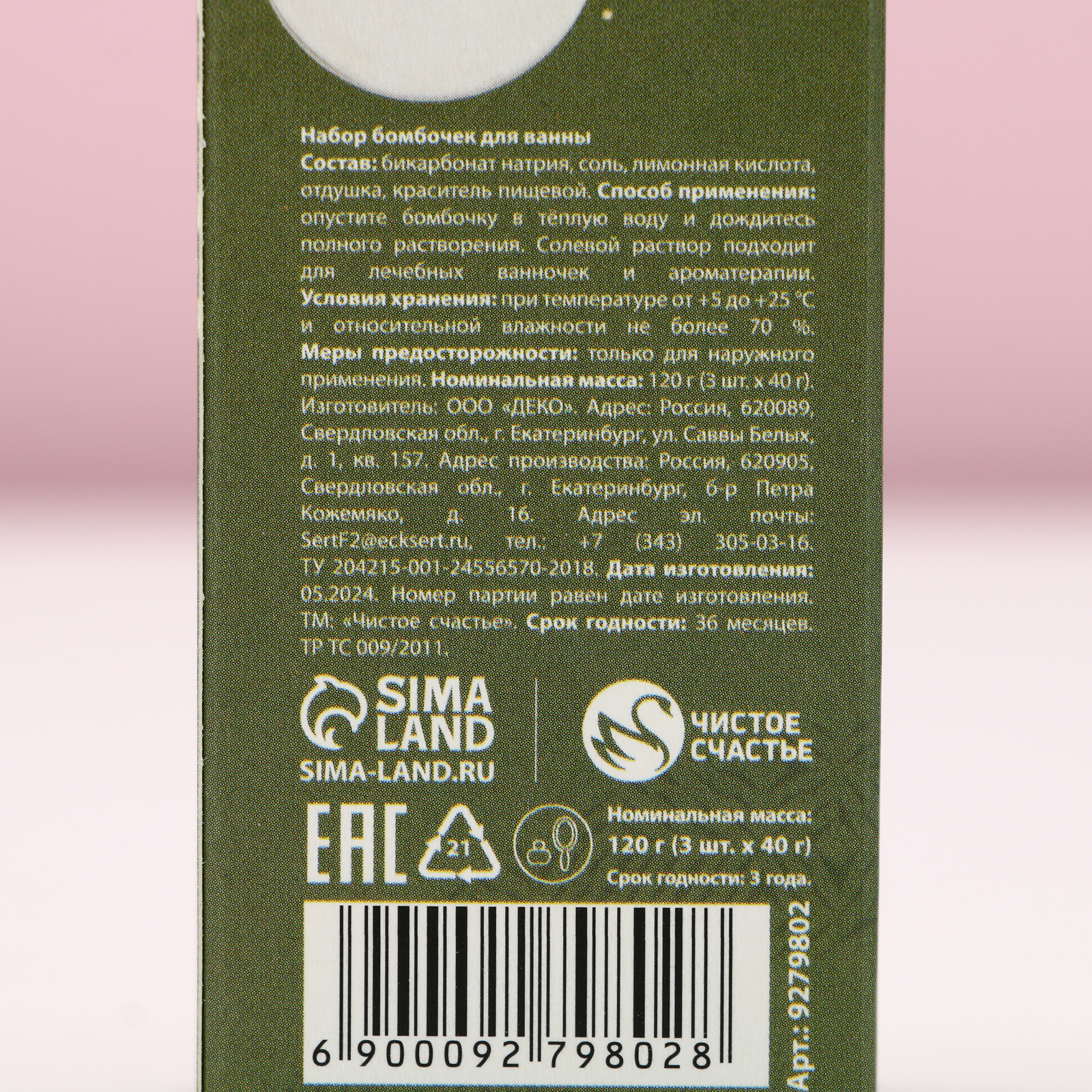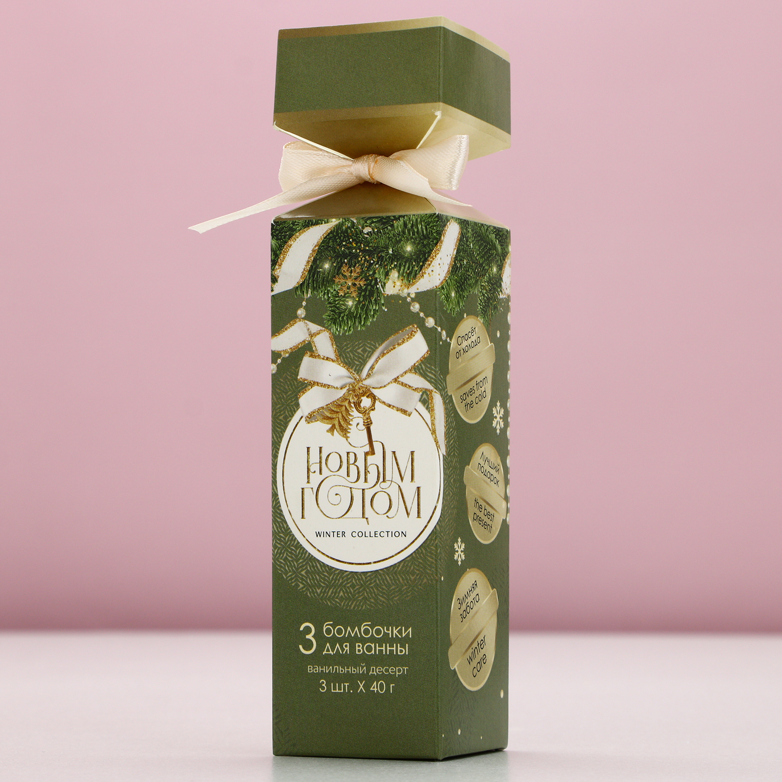 Бомбочки для ванны «с новым годом!», 3 40 г, аромат ванильный десерт, чистое счастье. Набор:Да|Цвет:Зелёный|Для кого:Для женщины|Форма:Шар|В наборе, шт.:3|Вес, г/Объём, мл:40|Вес, г:40|Тематика:Новогодняя|Вид упаковки:Подарочная коробка|Символ года:Нет|Тематика праздника:Новый год|Адресат:Без адресата|Возраст:Взрослый|Область применения:Для тела|Аромат:Ваниль|Составляющие набора:Бомбочка для ванн|Темпер. ограничение НЕ НИЖЕ :+5|Темпер. ограничение НЕ ВЫШЕ :+25|Возраст:Для взрослых|Возраст:Для всех возрастов|Назначение:Тонизирование|Особенности:Без особенностей|Страна:Россия  развернуть описание ▼