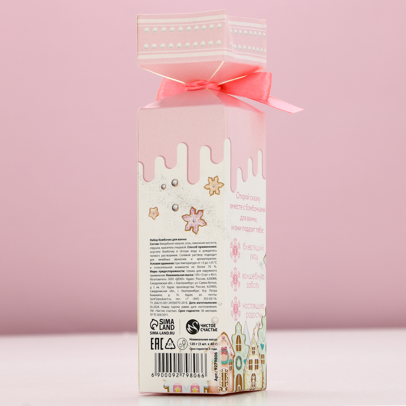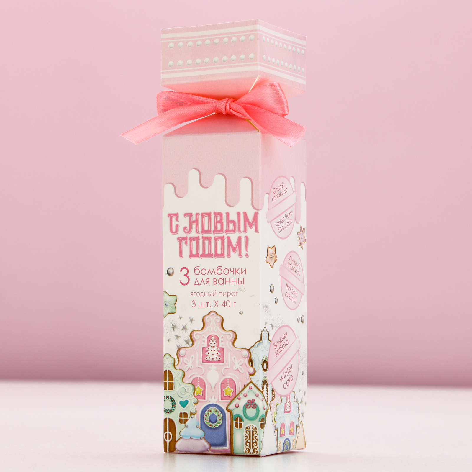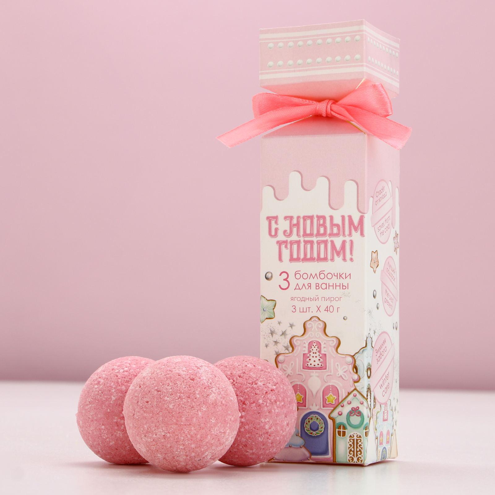 Бомбочки для ванны «с новым годом!», аромат ягодный пирог, 3 40 г, чистое счастье. Набор:Да|Цвет:Розовый|Для кого:Для женщины|Форма:Шар|В наборе, шт.:3|Вес, г/Объём, мл:40|Вес, г:40|Тематика:Новогодняя|Вид упаковки:Подарочная коробка|Символ года:Нет|Тематика праздника:Новый год|Адресат:Без адресата|Возраст:Взрослый|Область применения:Для тела|Аромат:Ягодный пирог|Составляющие набора:Бомбочка для ванн|Темпер. ограничение НЕ НИЖЕ :+5|Темпер. ограничение НЕ ВЫШЕ :+25|Возраст:Для взрослых|Возраст:Для всех возрастов|Назначение:Тонизирование|Особенности:Без особенностей|Страна:Россия  развернуть описание ▼