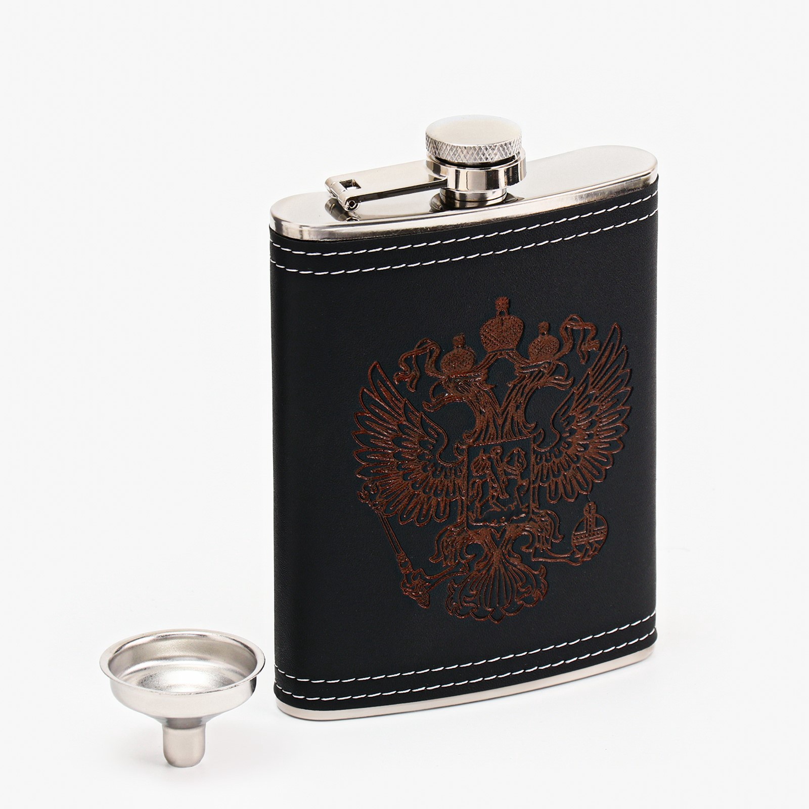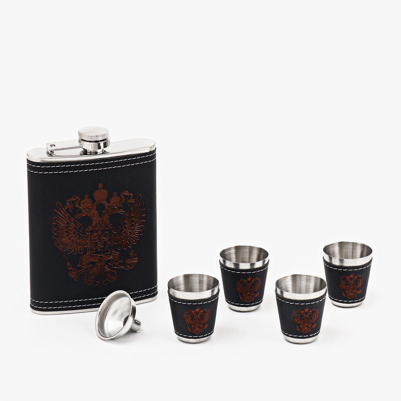 Подарочный набор «герб рф»: фляжка 240 мл, 4 стопки, воронка. Когда речь идёт о том, что подарить сильному, брутальному и мужественному мужчине на какой либо повод, то голова идёт кругом! Один из самых интересных, памятных а так же практичных вариантов подарка-это набор с фляжкой! В наборе есть фляжка 240 мл, из нержавеющей стали, 4 стопки по 30 мл, воронка, что очень удобно и практично! Мужчины точно оценят! Упаковано в подарочную коробку. Цвет:Коричневый|Цвет:Чёрный|Для кого:Для мужчины|В наборе, шт.:6|Объём, мл:30|Объём, мл:240|Вид упаковки:Коробка картонная|Рисунок:Да|Тематика праздника:23 Февраля|Адресат:Без адресата|Материал:Нержавеющая сталь|Составляющие набора:Фляга|Составляющие набора:Рюмки (стопки)|Возраст:Для взрослых|Страна:Китай  развернуть описание ▼