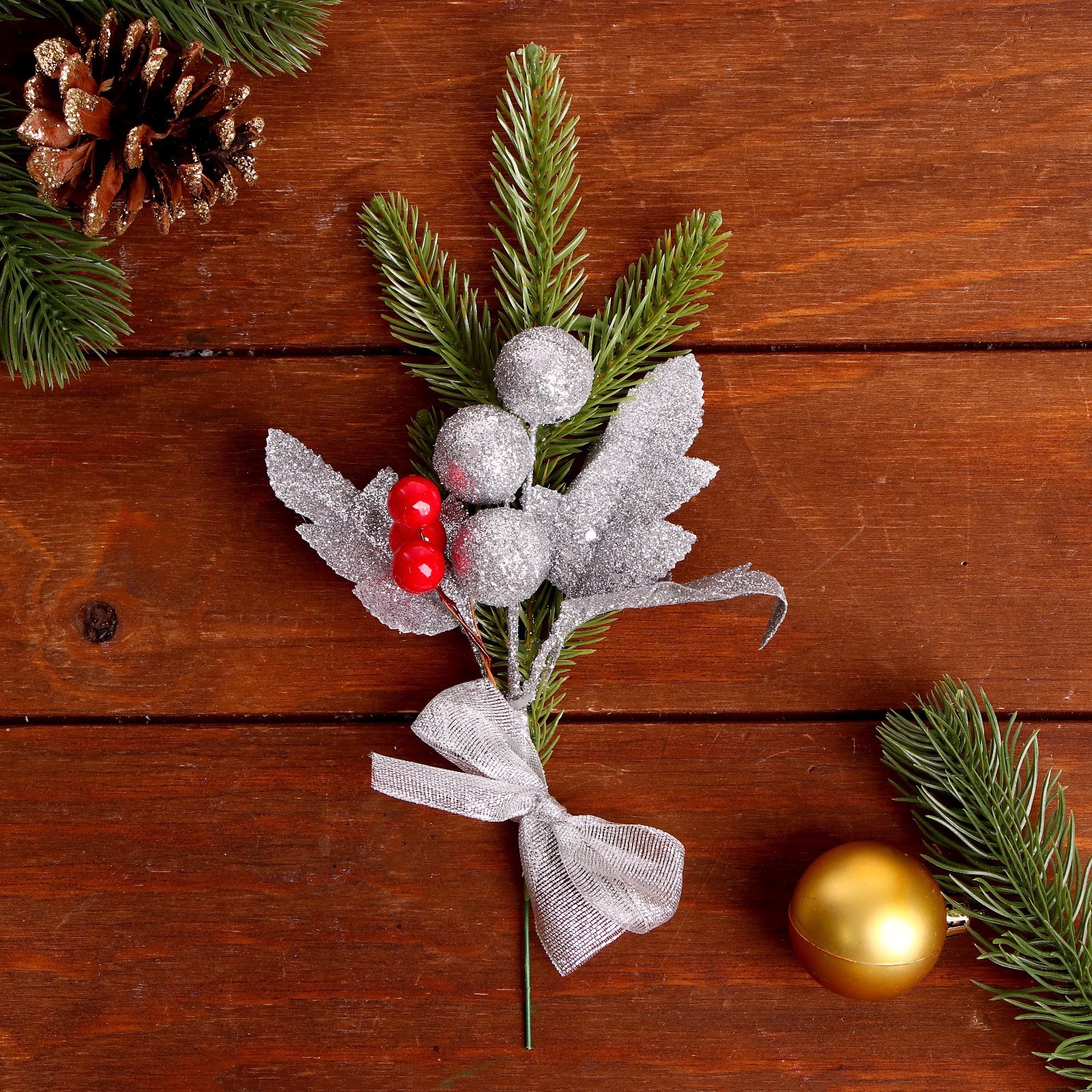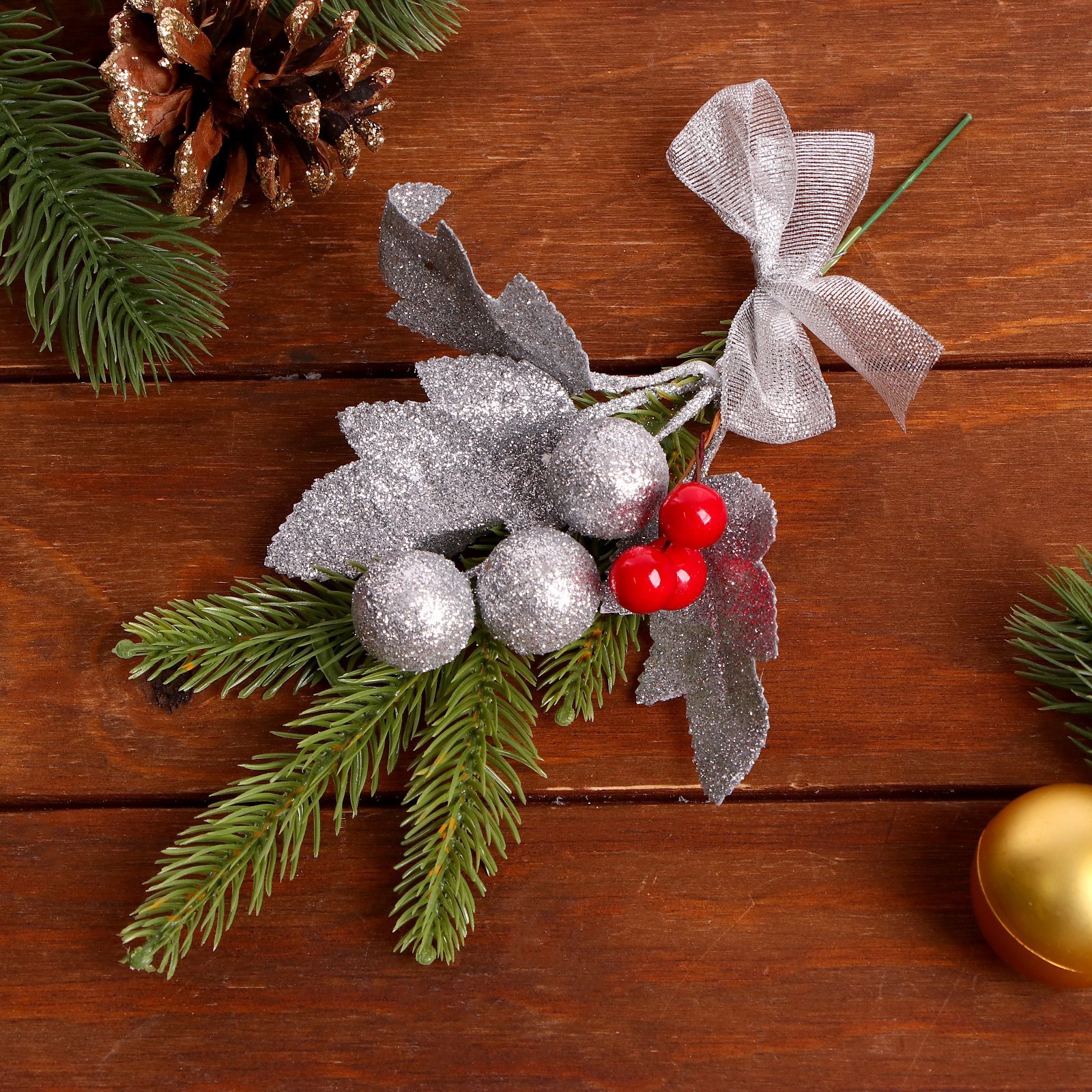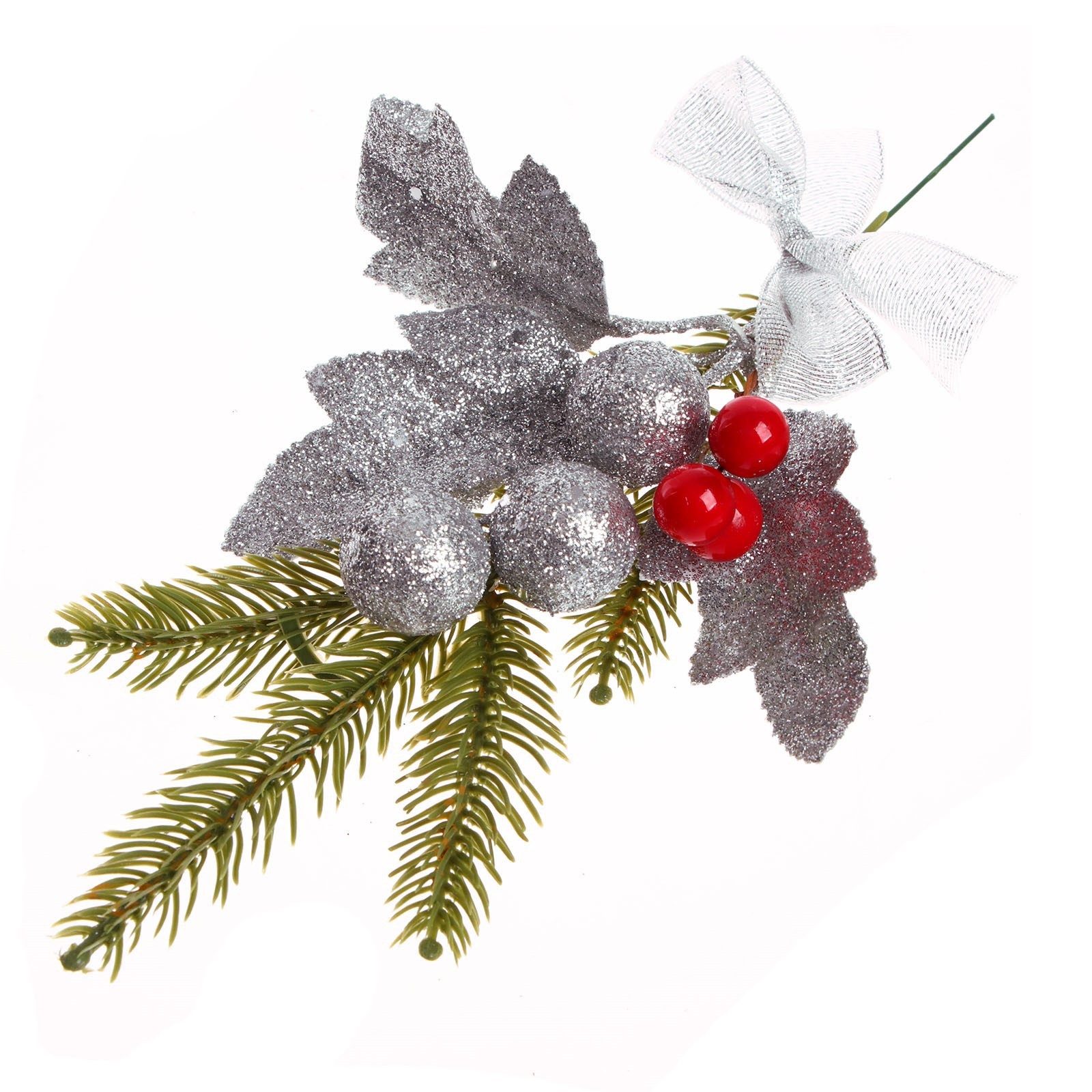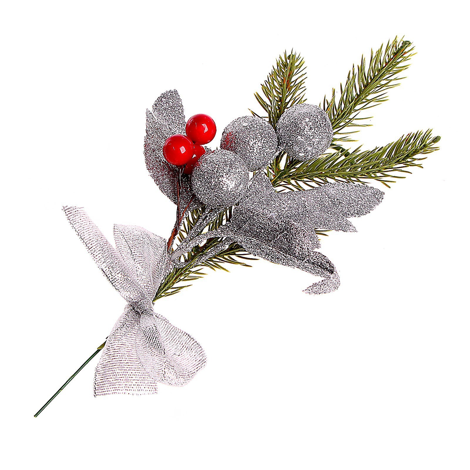 Декоративная ветка «праздник» серебро