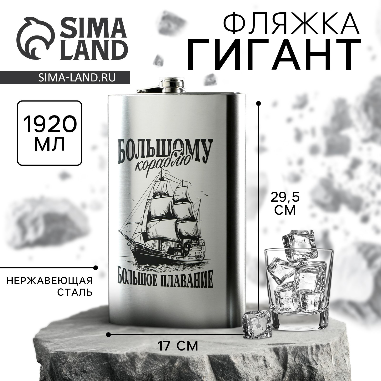 Фляжка гигант «большому кораблю», 1920 мл, серебристая. ГИГАНТСКАЯ Фляжка из нержавеющей стали объёмом 1920 мл — идеальный аксессуар для хранения и переноски напитков. Преимущества: Изготовлена из высококачественной нержавеющей стали, устойчивой к коррозии и механическим повреждениям. Имеет удобную форму и большой размер, куда поместится огромное количество напитка. Объём фляжки составляет 1920 мл, выглядит необычно и объёмно. Надёжная крышка обеспечивает герметичность и предотвращает протекание жидкости. Подходит для использования как в повседневной жизни, так и во время активного отдыха, туризма и спорта. Цвет: Серебристый Для кого: Для мужчины parts count: 0 Объём, мл: 1920 Материал: Нержавеющая сталь Особенности: С гравировкой  развернуть описание ▼