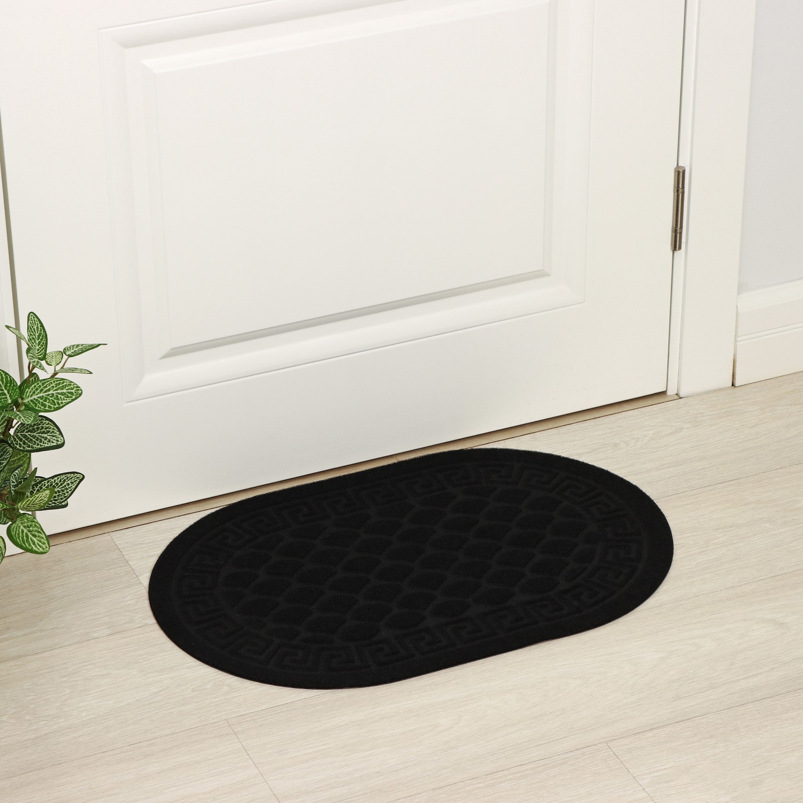 Коврик придверный влаговпитывающий «чешуйки», 40x60 см, цвет чёрный. Коврик влаговпитывающий — лучшее решение для защиты помещения от грязи, мелких частиц песка и земли, приносимых на подошвах обуви. Он изготовлен из полипропилена. Его главные особенности: долговечность, повышенная износостойкость, устойчивость к УФ-лучам и удержание на 1 м2 изделия до 4 кг влаги и грязи. Ворс ковриков не осыпается, и сам коврик не распускается даже при разрезании. Его применяют на входных зонах с умеренным и интенсивным движением посетителей: в магазинах, офисах, больницах, жилых помещениях и т. д. Основа покрытия исключает нежелательное скольжение и сохраняет свою форму без загиба края по периметру. Цвет: Чёрный Форма: Овальная Длина, см: 40 Ширина, см: 60 parts count: 0 Тематика: Однотонная Материал: ПВХ Материал: Полиэстер Вид покрытия коврика: Ворсовый Температурное ограничение: Нет Форма: Овал  развернуть описание ▼