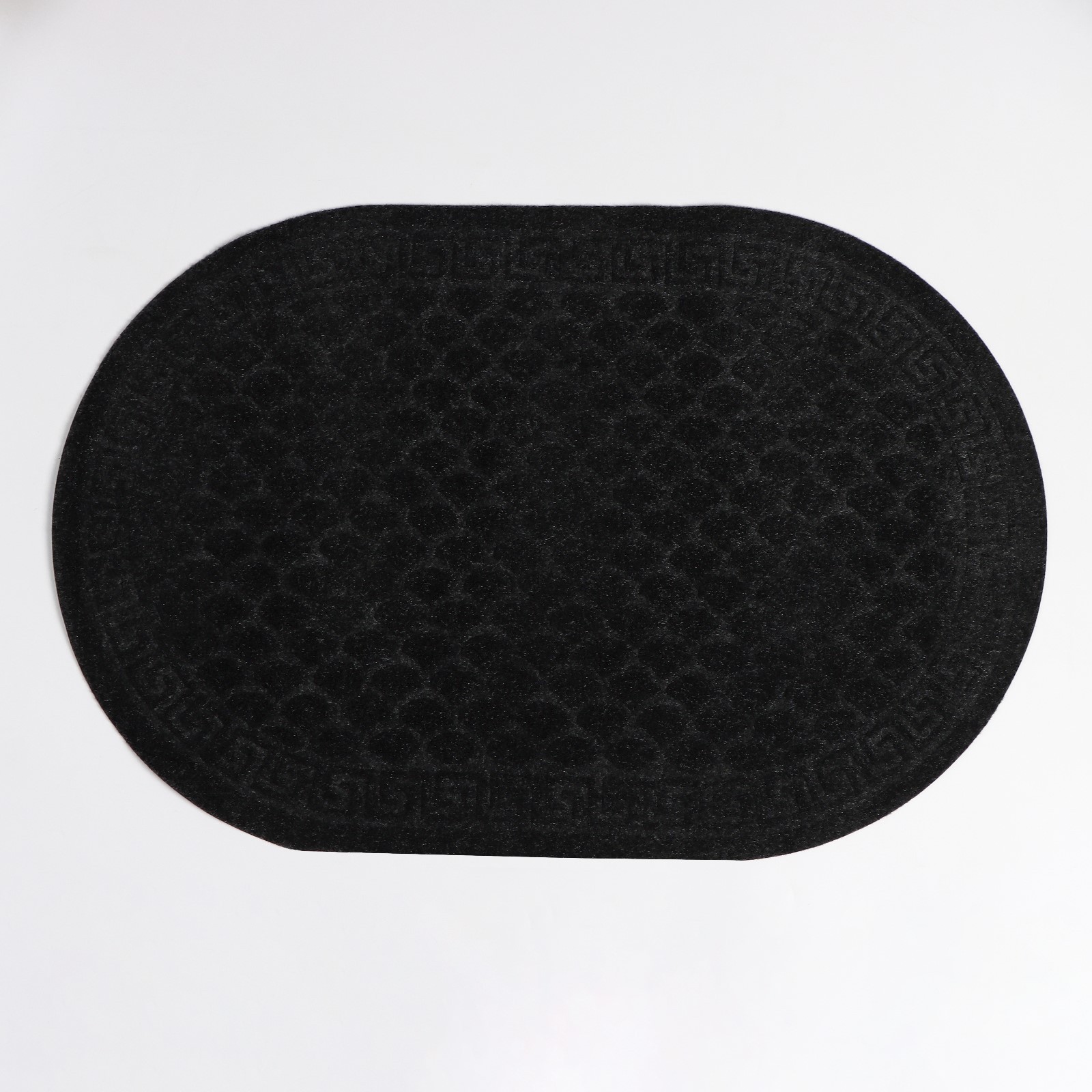 Коврик придверный влаговпитывающий «чешуйки», 60x90 см, цвет чёрный. Коврик влаговпитывающий — лучшее решение для защиты помещения от грязи, мелких частиц песка и земли, приносимых на подошвах обуви. Он изготовлен из полипропилена. Его главные особенности: долговечность, повышенная износостойкость, устойчивость к УФ-лучам и удержание на 1 м2 изделия до 4 кг влаги и грязи. Ворс ковриков не осыпается, и сам коврик не распускается даже при разрезании. Его применяют на входных зонах с умеренным и интенсивным движением посетителей: в магазинах, офисах, больницах, жилых помещениях и т. д. Основа покрытия исключает нежелательное скольжение и сохраняет свою форму без загиба края по периметру. Цвет: Чёрный Форма: Овальная Длина, см: 60 Ширина, см: 90 Тематика: Однотонная Материал: ПВХ Материал: Полиэстер Вид покрытия коврика: Ворсовый Температурное ограничение: Нет Форма: Овал  развернуть описание ▼